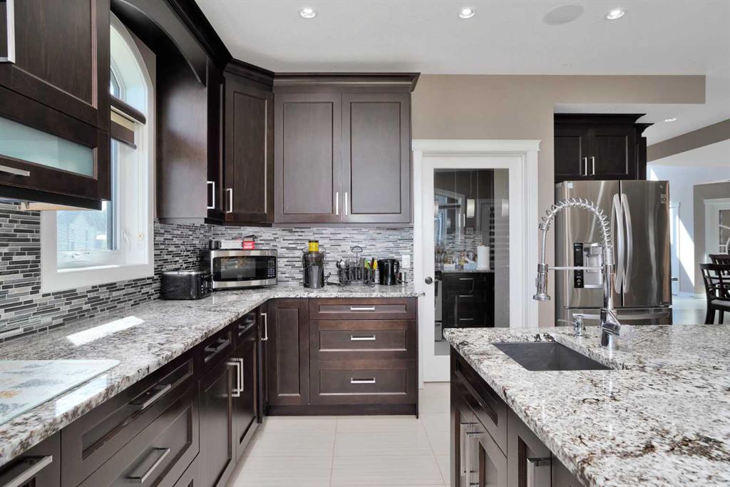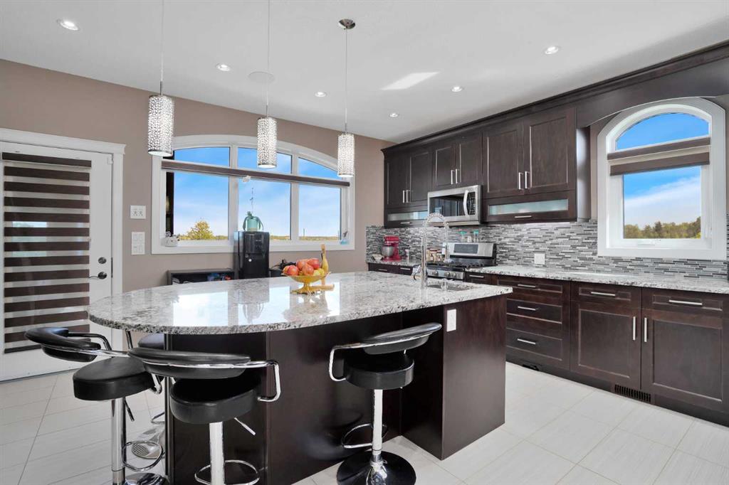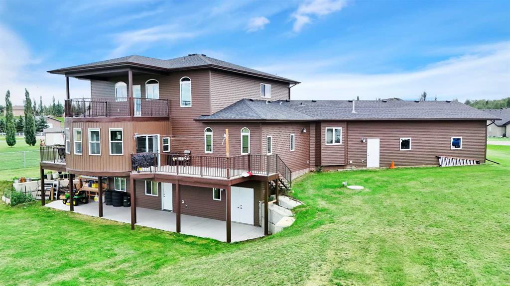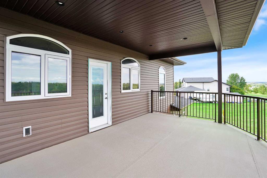 Located in the peaceful Valleyridge Estates, this custom-built 2-story home sits on a beautiful 2-acre lot by the Blindman River. The house is bright and airy, thanks to many windows that let in lots of natural light. It has five large bedrooms, including four main suites with walk-in closets and custom tiled showers. The main suite upstairs has a private deck with lovely views of nature. The home has two gourmet kitchens with granite countertops; the main kitchen also has a secondary spice/butler’s kitchen, great for entertaining. The living areas include a formal office, a cozy living room, a big family room, and a charming sunroom. There’s also a large loft on the second floor and a practical laundry room with granite counters and lots of storage. The main floor is 2,294 square feet, and the second floor is 1,343 square feet. The 2,260 square feet walkout basement has a bathroom and is ready for customization. The triple attached garage is heated and has 11-foot ceilings. The main suite’s second-story deck is covered for outdoor enjoyment, and the entryway has a grand 19-foot ceiling. The home also features two furnaces, dual central vacuum systems, and advanced insulation for energy efficiency and comfort. With its custom features and beautiful location, this home is a true example of luxury living.