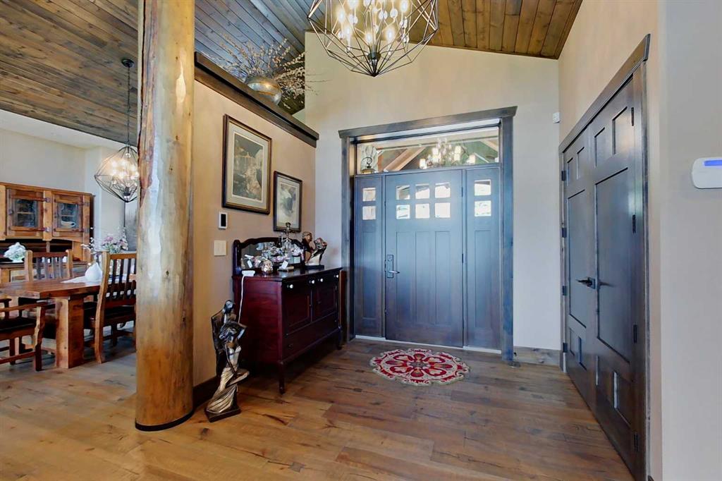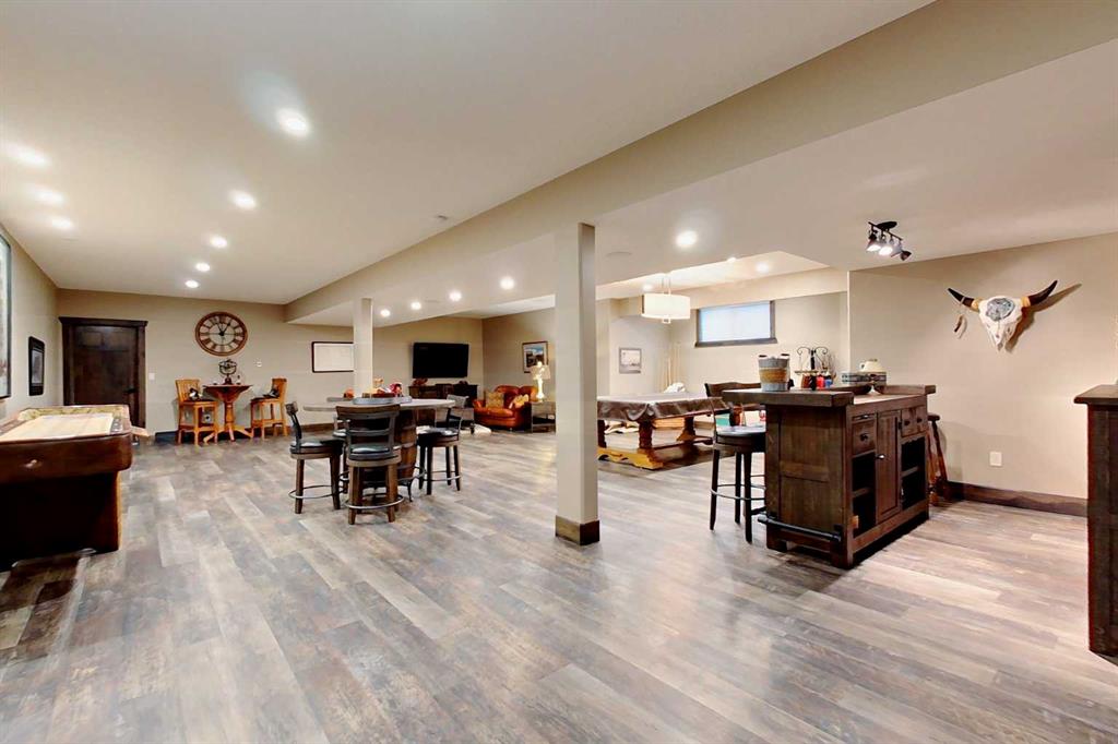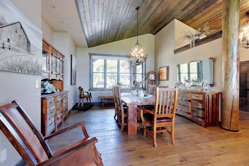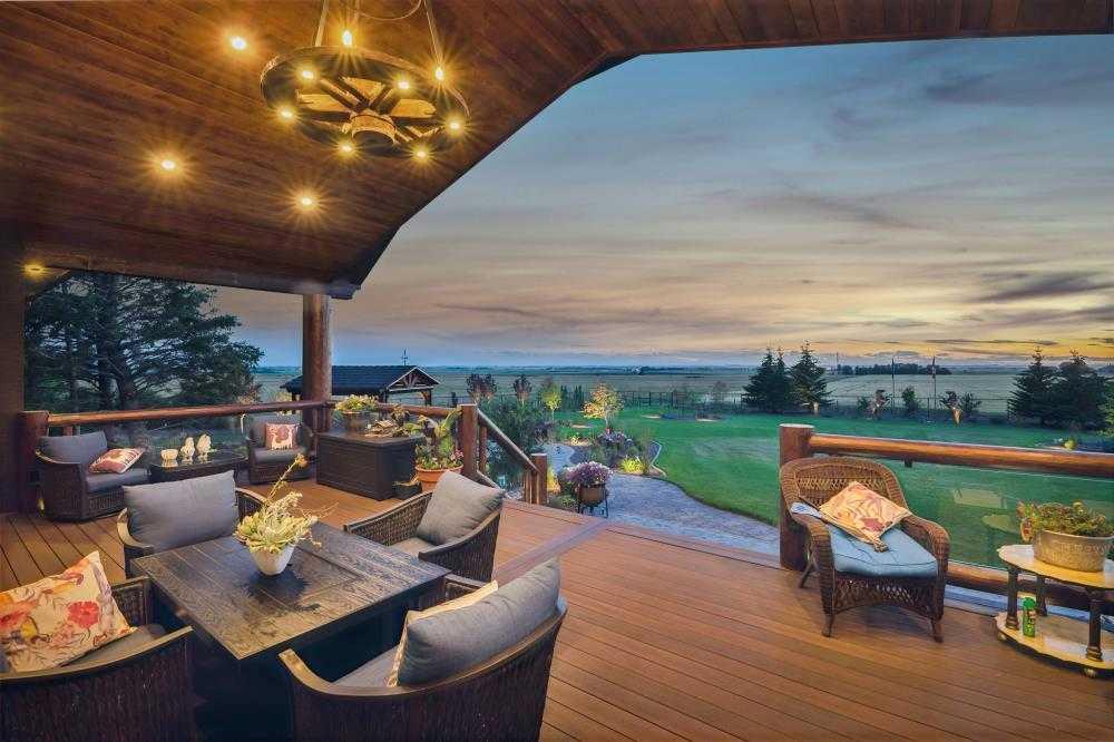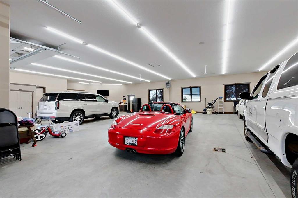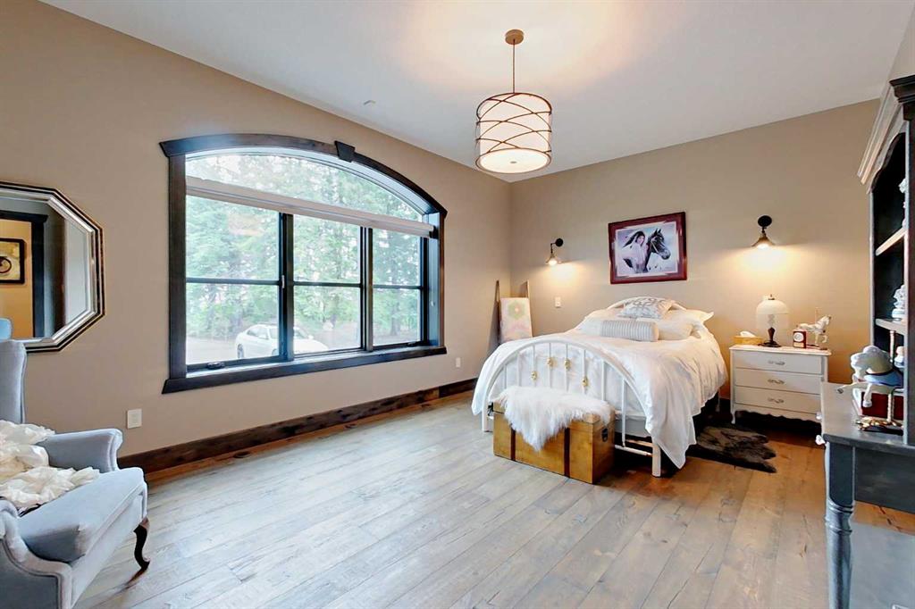 EXECUTIVE ACREAGE WITH STUNNING MOUNTAIN VIEWS AND A PARKLIKE SETTING! First time offered for sale and extremely rare opportunity to purchase this pristine 5.21 +/- Acres Located Just mins South of Olds on pavement. This is the perfect central Alberta location with Less than a 1hr drive to the Calgary airport and just 40 mins to Red Deer. The entire property sends a majestic mountain lodge feel where nature, towering trees, mature landscaping, gardens, family fire pit area, wide open spaces with waterfalls & streams soothe the soul. Executive touches greet you at the impressive main entrance with beautiful timbers, stonework, wrought iron fencing and over 46000 sqft (over 1 acre) of concrete driveway and stamped concrete edging inlays. The sprawling 3690sqft bungalow is loaded with features and class. Built with ICF Block foundation and a top of line list of mechanical features and sound system throughout. Rough edge quartz counter tops highlight a huge island kitchen with two dishwashers, a gas stove imported from overseas , under counter lighting, custom detailed wood artwork and more! The wide open concept and massive west facing windows allow for natural sunlight to stream throughout the entire main floor. Two Large fireplaces on the main floor & main floor laundry. The Primary bedroom is fit for a queen offering the most luxury built-in closet organizers and a massive ensuite with heated floors, two sinks and huge quartz shower. Two more large bedrooms, a 4pc and 2pc bath on the main floor. The basement features a large rec room, bar rough in and future room for even more development. The custom details don't stop in the 62' x 48' attached and heated garage with epoxy floors, 2pc bath, in-floor heart and a hot-water make up heater for quick recovery of heat. The concrete apron just outside the garage doors is also heated. Outbuildings include a fully finished 28' x 28 'detached garage and a massive fully finished 50' x 100' shop with bright LED lighting, in-floor heat, an RV sani-dump station and separate 1542 sqft legal suite. The legal suite includes two full 4pc baths, two bedrooms, large bonus room with custom fireplace mantel, custom kitchen and more! A true 10/10 showing is guranteed! Your best move starts here!