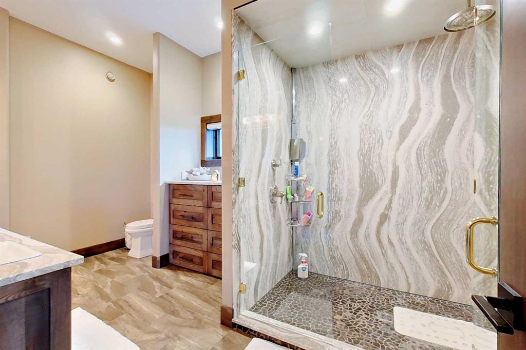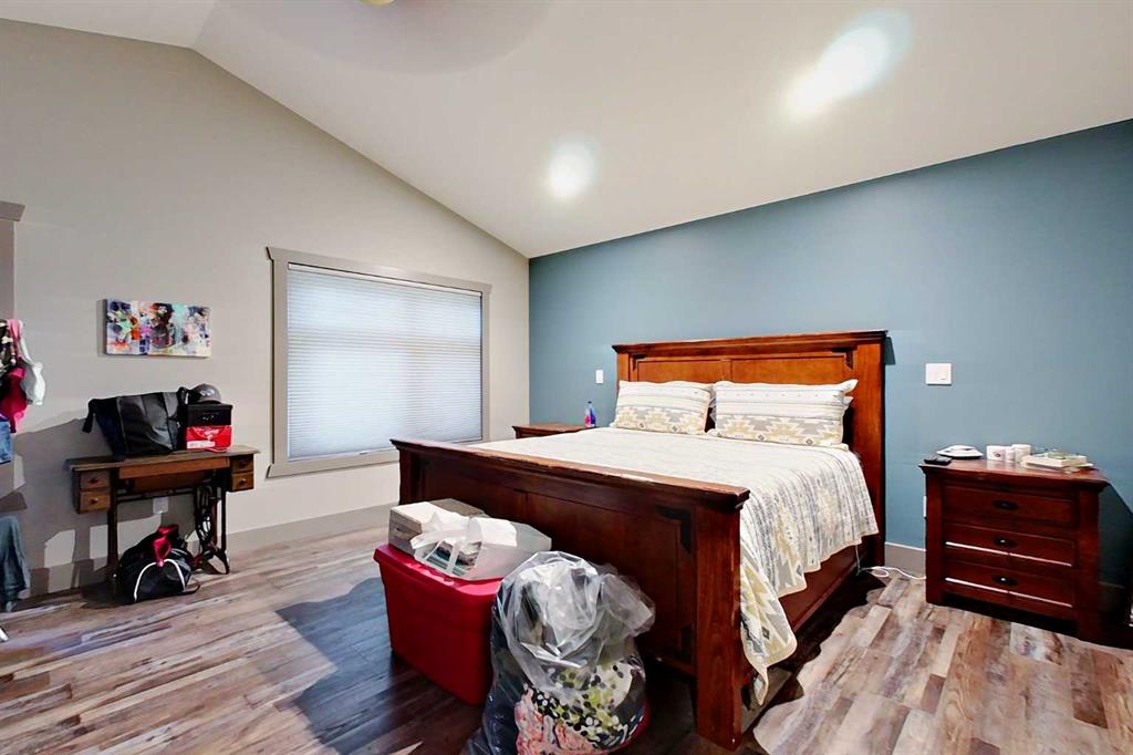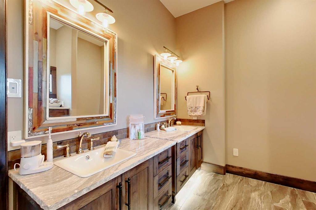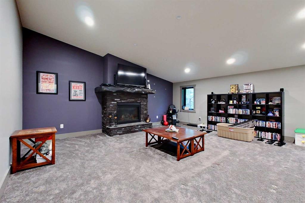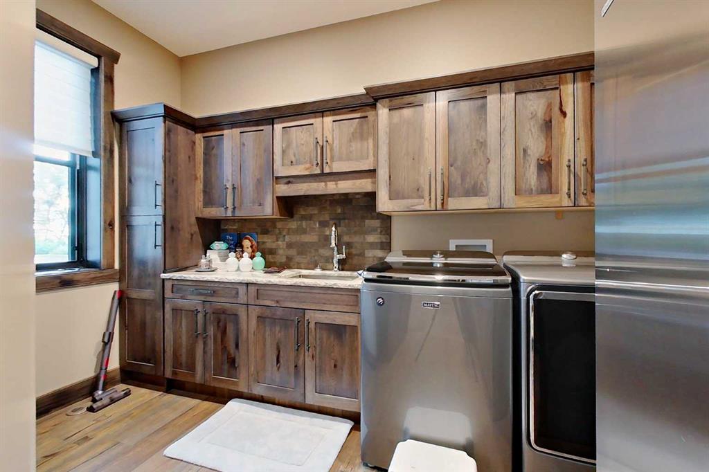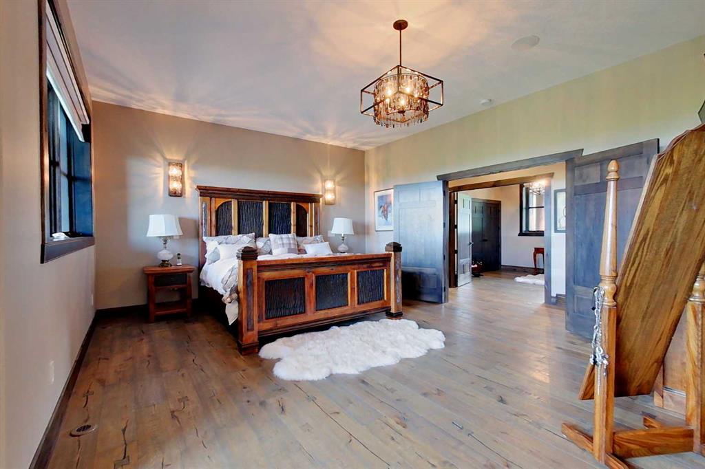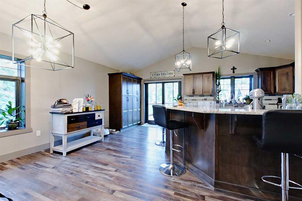 EXECUTIVE ACREAGE WITH STUNNING MOUNTAIN VIEWS AND A PARKLIKE SETTING! First time offered for sale and extremely rare opportunity to purchase this pristine 5.21 +/- Acres Located Just mins South of Olds on pavement. This is the perfect central Alberta location with Less than a 1hr drive to the Calgary airport and just 40 mins to Red Deer. The entire property sends a majestic mountain lodge feel where nature, towering trees, mature landscaping, gardens, family fire pit area, wide open spaces with waterfalls & streams soothe the soul. Executive touches greet you at the impressive main entrance with beautiful timbers, stonework, wrought iron fencing and over 46000 sqft (over 1 acre) of concrete driveway and stamped concrete edging inlays. The sprawling 3690sqft bungalow is loaded with features and class. Built with ICF Block foundation and a top of line list of mechanical features and sound system throughout. Rough edge quartz counter tops highlight a huge island kitchen with two dishwashers, a gas stove imported from overseas , under counter lighting, custom detailed wood artwork and more! The wide open concept and massive west facing windows allow for natural sunlight to stream throughout the entire main floor. Two Large fireplaces on the main floor & main floor laundry. The Primary bedroom is fit for a queen offering the most luxury built-in closet organizers and a massive ensuite with heated floors, two sinks and huge quartz shower. Two more large bedrooms, a 4pc and 2pc bath on the main floor. The basement features a large rec room, bar rough in and future room for even more development. The custom details don't stop in the 62' x 48' attached and heated garage with epoxy floors, 2pc bath, in-floor heart and a hot-water make up heater for quick recovery of heat. The concrete apron just outside the garage doors is also heated. Outbuildings include a fully finished 28' x 28 'detached garage and a massive fully finished 50' x 100' shop with bright LED lighting, in-floor heat, an RV sani-dump station and separate 1542 sqft legal suite. The legal suite includes two full 4pc baths, two bedrooms, large bonus room with custom fireplace mantel, custom kitchen and more! A true 10/10 showing is guranteed! Your best move starts here!