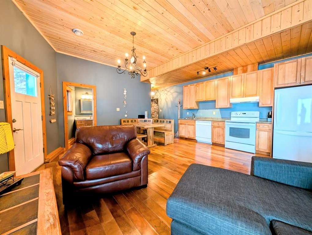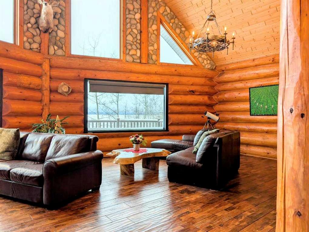 Paradise found on the shores of Marten Beach. This extraordinary .44 acre true waterfront retreat offers what very few properties ever can. Direct sandy beach access, breathtaking lake views, privacy, and a stunning custom log home that feels like a luxury lodge wrapped in nature. Perfectly positioned right on the beach, this 3544 sq ft Douglas Fir log home captures the lake from every level, with walls of windows and a wraparound deck designed to soak in sunrise coffees and unforgettable sunsets. The craftsmanship is exceptional, from exposed stone walls and soaring ceilings to hardwood floors and slate tile throughout. The home offers 4 bedrooms and 3 bathrooms, including a fully self-contained guest or in law suite with its own entrance, kitchen, living space, and lake view bedroom, ideal for extended family or guests. The upper-level primary retreat is a showstopper, featuring a sitting area, expansive walk-through closet, and spa inspired ensuite with soaker tub and walk in shower. Also on the upper level is a versatile flex space currently used as a sitting area and office, offering endless possibilities as a home gym, art or music studio, wellness or yoga space, library, or private retreat. The kitchen is built for both beauty and function, with granite countertops, premium cabinetry, upgraded appliances, a large island, and commercial style column fridge and freezer. The main living and dining area is flooded with natural light and framed by uninterrupted lake views. An oversized finished garage with Polyaspartic floor coating completed in 2024 with 15-year warranty, insulated doors, and customer steel Haley cabinetry provides incredible storage and workspace. The home has been thoughtfully engineered with features such as a high efficiency furnace, tankless hot water, hurricane roof straps, elevator prep, solar readiness, and smart water system monitoring. Outdoors, enjoy a rare sandy beach at your feet, exceptional privacy, and space for future development such as a guest house or studio, subject to approvals. The property has never flooded and has had no insurance issues during ownership. Whether you are looking for a luxury full time residence or the ultimate lakefront escape, this is a once in a generation Marten Beach offering that is private, peaceful, and absolutely unforgettable.