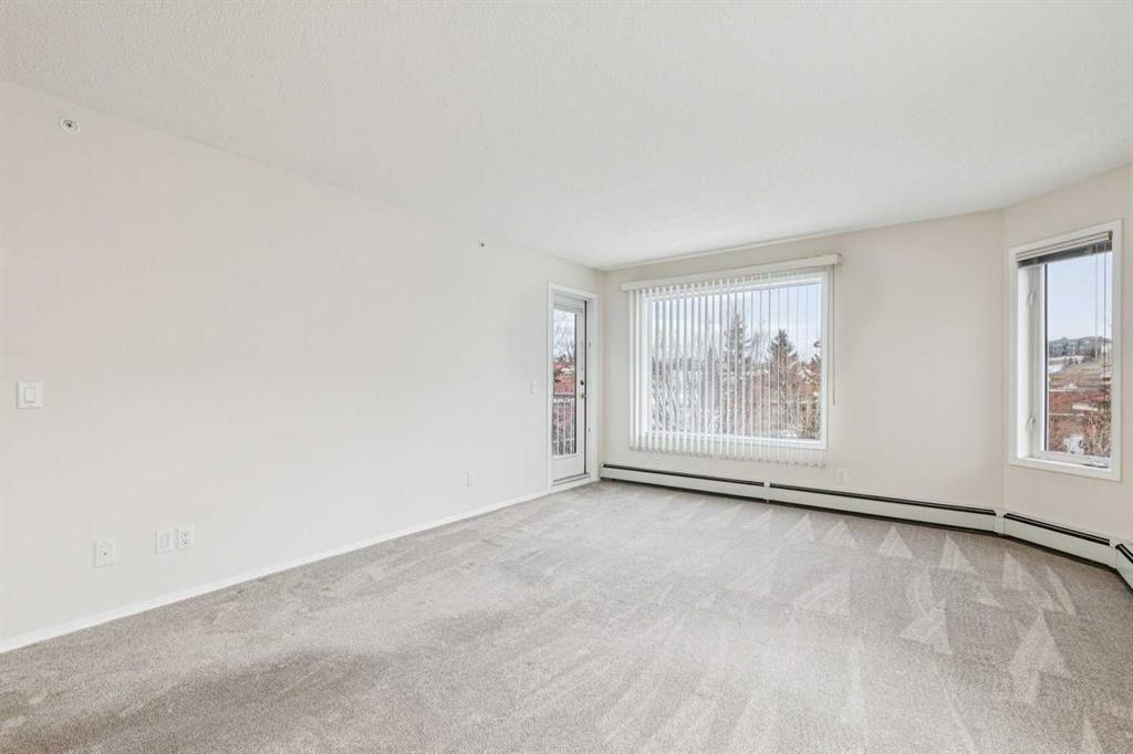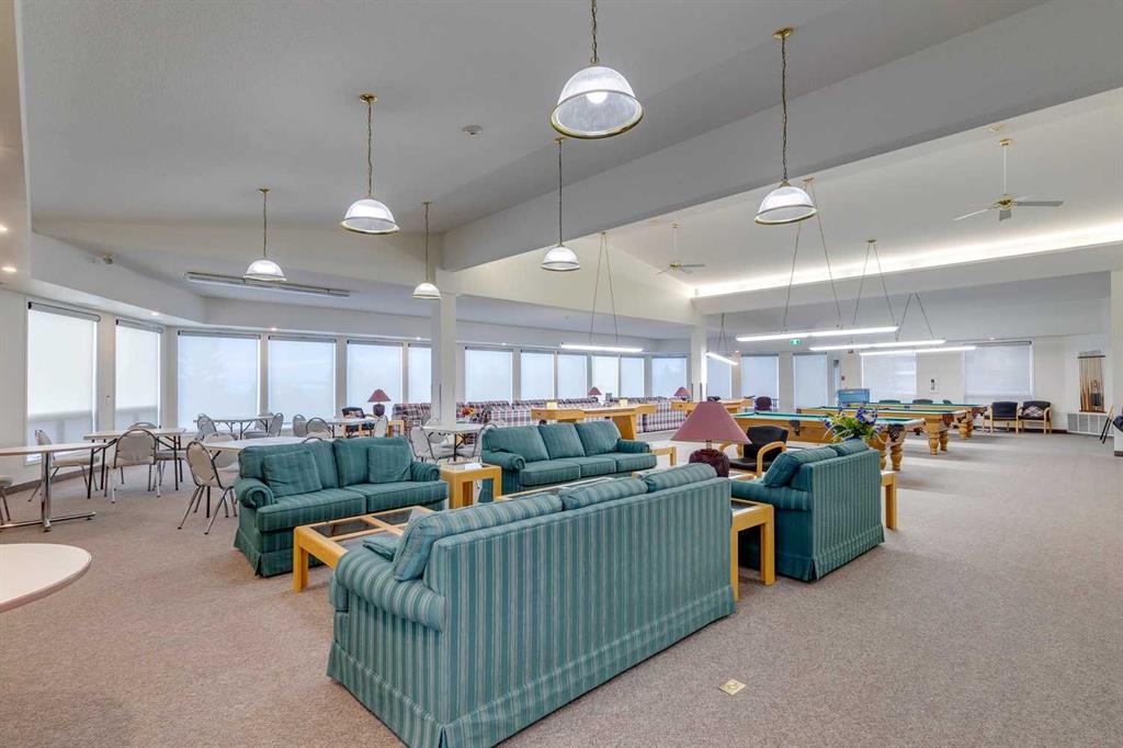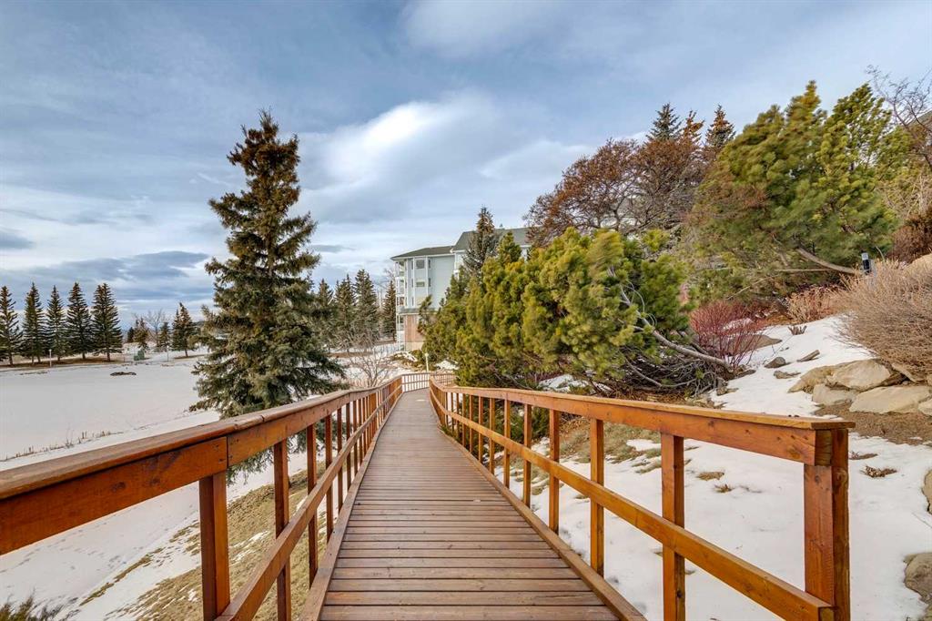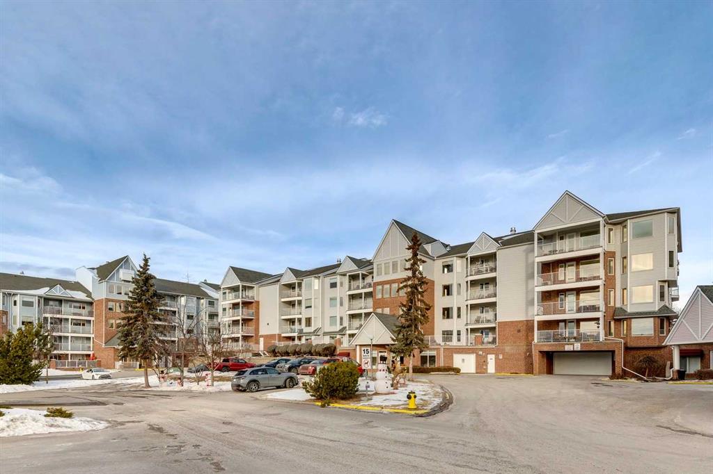 Welcome to 2309 Hawksbrow Point NW, located in Dreamview Village, a highly sought-after 55+ community in the desirable NW Calgary neighbourhood of Hawkwood. This well-managed complex is known for its beautifully landscaped grounds featuring a private park, pond, fountain, and well-lit walking paths, creating a peaceful and welcoming environment. This bright corner unit offers an abundance of natural light and a comfortable, functional layout. The open living and dining area is warm and inviting, ideal for everyday living or entertaining. The kitchen features oak cabinetry, generous counter space, and room for a small dining table. The spacious primary bedroom is a standout, offering exceptional storage with a large walk-in closet plus his-and-hers closets. A second well-sized bedroom with a large window provides flexibility for guests, hobbies, or a home office. In-suite laundry and additional storage add everyday convenience. Residents enjoy access to an impressive clubhouse with mountain views, library, party room with full kitchen, pool table, shuffleboard, craft rooms, and frequent social activities. The building also offers titled underground parking, a storage locker, guest suites, car wash, workshop, elevators, and ample visitor parking. A fantastic opportunity for comfortable, low-maintenance living in one of NW Calgary’s most desirable adult communities.