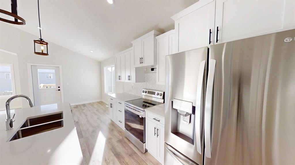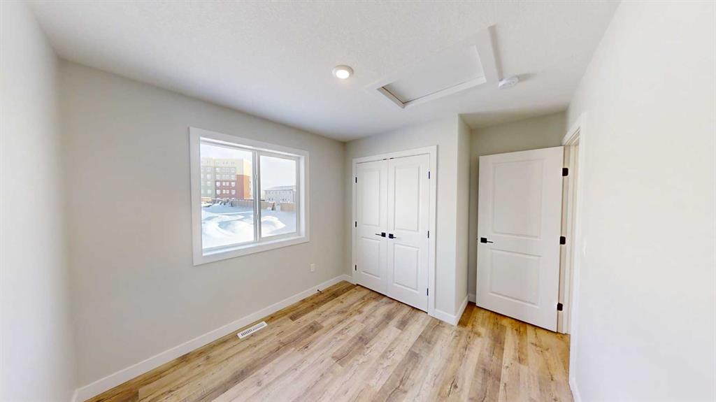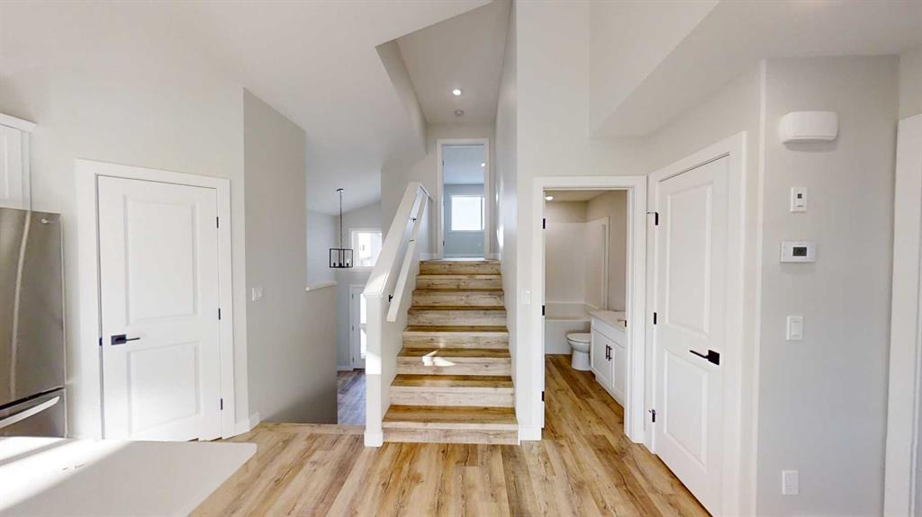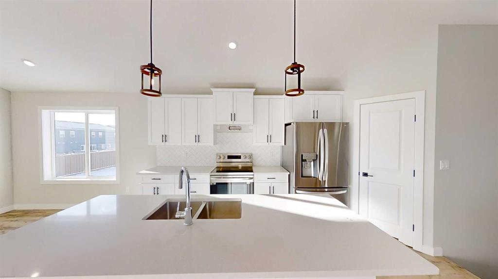 3 bed 2 bath upper unit with garage in Clairmont. Clairmont's newest community, Bridgewater. Bright, open main floor living space with vaulted ceiling. Upgraded kitchen features quartz counters with an undermount sink and eat up counter, tiled backsplash, pantry and stainless appliances. Separate dining area with access to rear deck. Living room has large windows for lots of natural light, 2 good sized bedrooms with full 4 piece bathroom also on the main level. Primary bedroom is over the garage and has a walk-in closet and 4 piece ensuite bathroom. Vinyl plank floors throughout - NO carpet. Single attached HEATED garage. Access to rear yard. Water Included. Small Dog considered with $50/mo pet fee. Application required prior to viewing. Pictures of a similar unit.