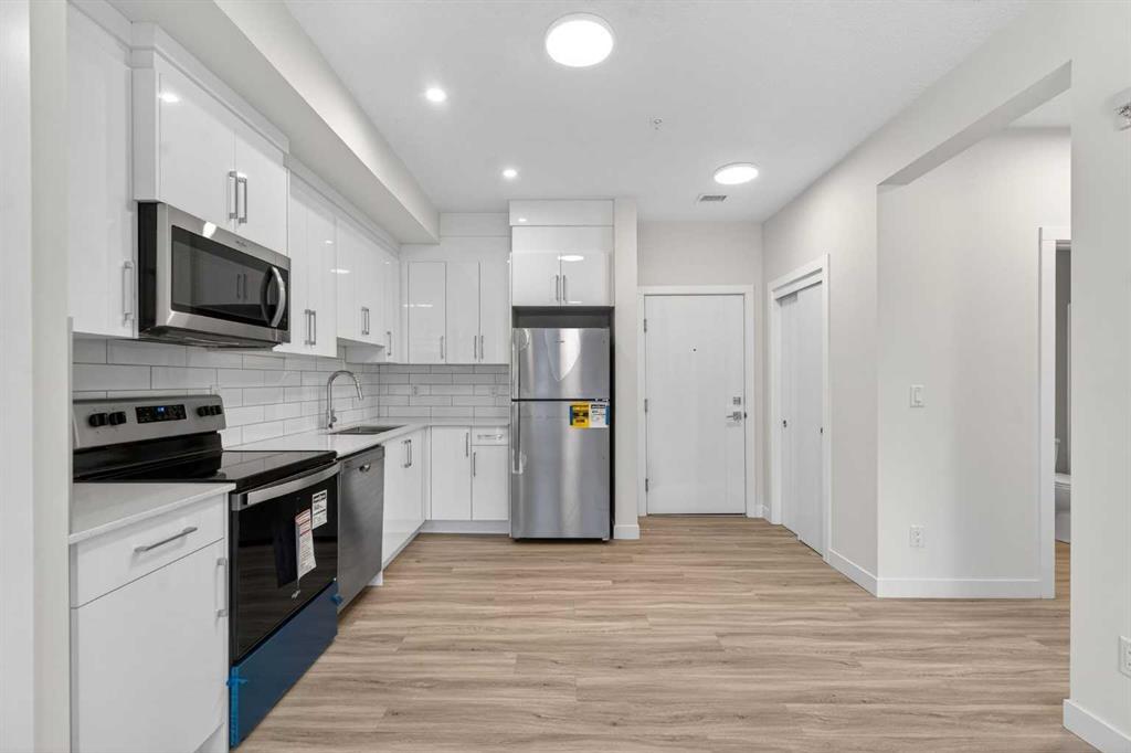 Welcome To This Brand-New, Move-In-Ready 2-Bedroom, 1-Bathroom Condo In The Desirable Skyview Community Of NE Calgary. Thoughtfully Designed For Modern Living, This Bright And Airy Unit Features 9-Foot Ceilings And Expansive Windows That Flood The Open-Concept Living Space With Natural Light. Wide-Plank Luxury Vinyl Flooring And Quartz Countertops Throughout Add A Sleek, Contemporary Finish. The Fully Upgraded Kitchen Is Both Stylish And Highly Functional, Showcasing Stainless Steel Appliances, An Over-The-Range Microwave, Soft-Close Cabinetry, Quartz Countertops, A Pantry, And Ample Storage—Perfect For Everyday Living And Entertaining. The Open Layout Seamlessly Connects The Kitchen To The Living And Dining Areas, Creating A Warm And Inviting Space To Relax Or Host Guests. Both Bedrooms Are Generously Sized And Thoughtfully Laid Out, While The Modern 4-Piece Bathroom Features A Quartz Countertop And Refined Finishes. Additional Highlights Include In-Suite Laundry, Upgraded Designer Window Treatments, And A Large Private Balcony With A BBQ Gas Line—Perfect For Outdoor Entertaining, Summer BBQs, Or Simply Enjoying Fresh Air And Open Views. This Unit Comes Complete With Titled Underground Parking And A Dedicated Storage Locker, Offering Exceptional Value And Convenience. Located In A Newly Constructed Building, Residents Enjoy Low-Maintenance Living With Quick Access To Shopping, Schools, Public Transit, Major Amenities, Calgary International Airport, And Easy Access To Stoney Trail For Effortless Commuting Throughout The City. Perfect For First-Time Buyers, Professionals, Or Investors, This Turnkey Home Is Located In One Of Calgary’s Fastest-Growing Communities. Just Move In And Enjoy—This Is A Must-See! Discover This Exceptional Opportunity Before It’s Gone—Your Perfect Home Awaits! ***Please Note: Property Taxes Are Not Yet Assessed***Additional Units Are Available—Contact Listing Agent For Details***