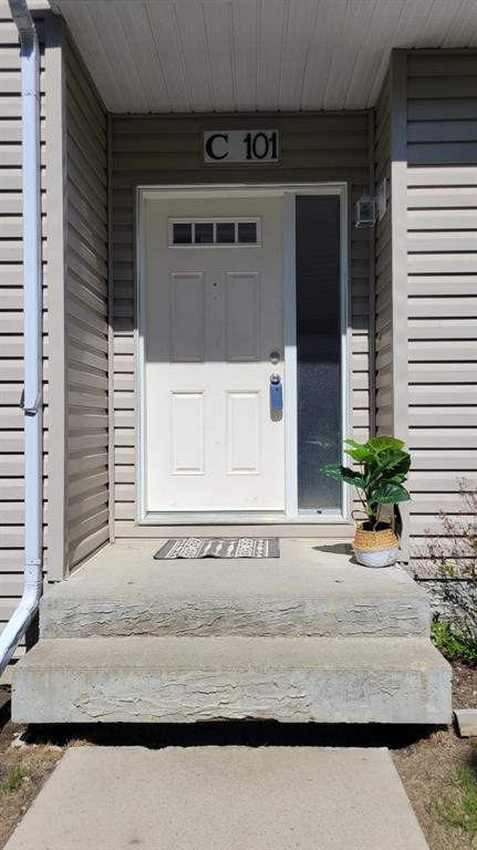 890 sqft main floor condo with detached garage is located in the Village of Crystal Landing. Modern open concept main living area with 9ft ceilings. The kitchen is the perfect size for light entertaining with maple cabinets and a raised eating bar. The laundry and storage room is conveniently located directly off the kitchen. Two great sized bedrooms and one full bathroom. This property also has outside storage, patio with natural gas bbq hook up and a single Wide detached garage . The Village of Crystal Landing is a pet friendly condominium complex.