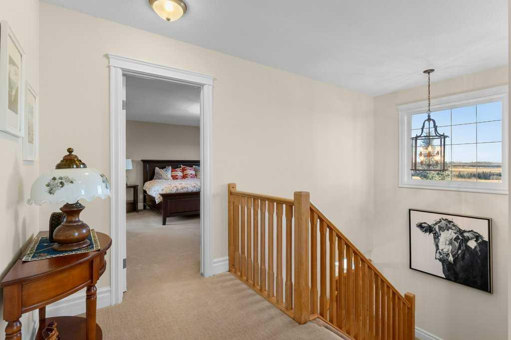 Open house Feb 7th 1-3 pm! Come visit beautiful Water Valley and see this home! Stunning 3+1 Bedroom, 4 bath, 2-storey home offering just over 2,000 sq ft plus a bright fully finished basement, perfectly set on a beautifully treed and landscaped 2-acre corner parcel in the friendly community of Water Valley. From the moment you arrive—paved driveway, gated entry, mature trees, and a triple attached garage—you’ll feel the pride of ownership. The main floor features soaring ceilings, updated paint and flooring, custom granite countertops, main floor laundry, and central A/C. Upstairs, you’ll find a spacious primary bedroom with a walk-in closet and a 4-piece ensuite featuring a corner jetted tub and beautiful views. Two additional great-sized bedrooms offer tons of natural light and gorgeous valley views, while a spacious 4-piece main bath completes the upper level. Downstairs, the finished basement is exceptionally inviting with oversized bright windows that truly don’t feel like a basement, plus a fourth bedroom, full bathroom, and a large recreation room—perfect for guests, teens, or movie nights. Enjoy outdoor living at its best with a veranda, front porch, wraparound deck, and a large covered and open west-facing deck—ideal for sunsets and entertaining. The entire property is fully fenced and gated, includes a large dog run, and an 11’ x 28’ implement shed on skids. In-floor heat in the basement and garage adds comfort year-round. Great water well, recently tested for pressure and potability. Enjoy small-town charm and year-round community events—just 35 minutes north of Cochrane and under an hour to Calgary International Airport.