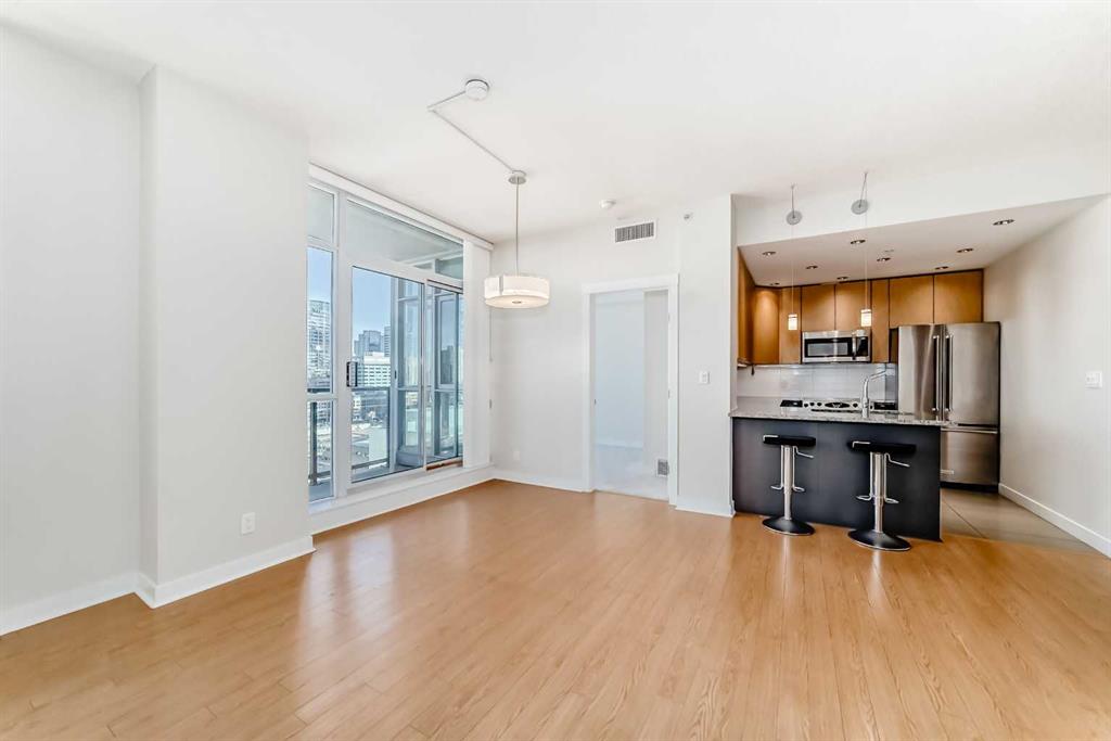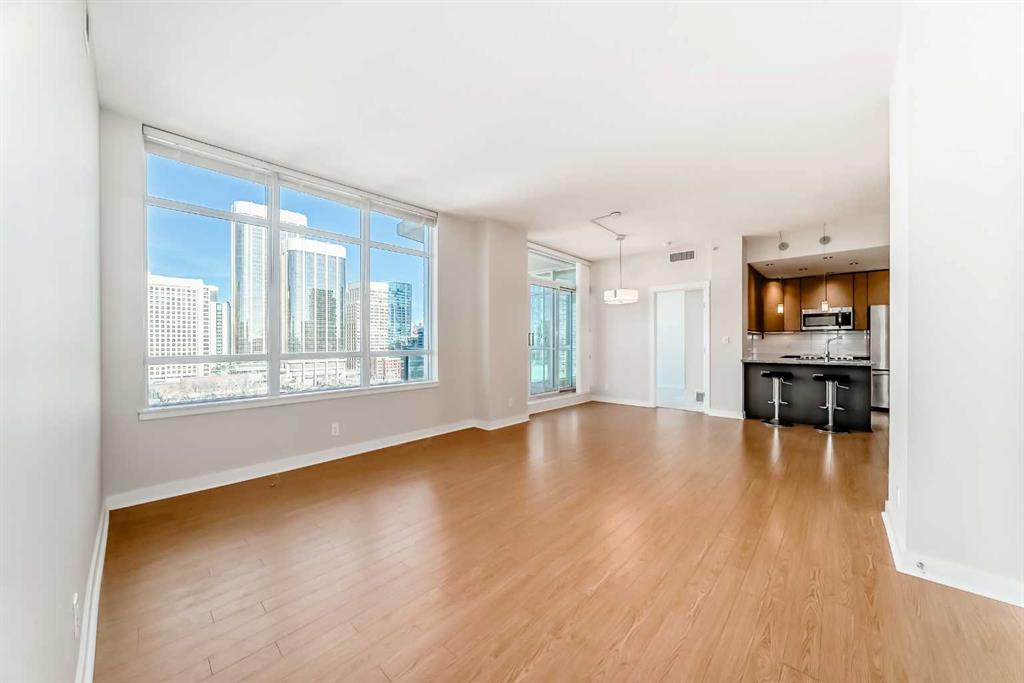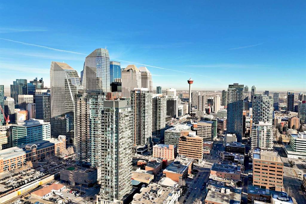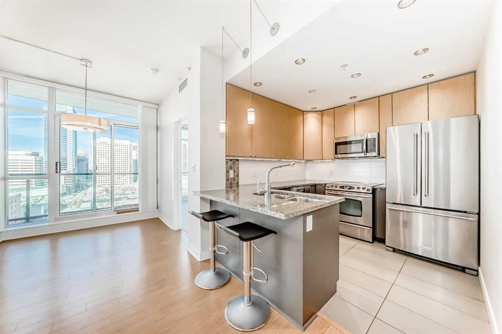 Welcome to inner-city living in Calgary’s Beltline community. This well-designed 2-bedroom + den, 2-bathroom corner unit offers a bright, open-concept layout with floor-to-ceiling windows that showcase spectacular city views and flood the home with natural light. The functional floor plan flows seamlessly from the living and dining areas into a modern kitchen featuring stainless steel appliances, granite countertops, and ample cabinetry—ideal for both everyday living and entertaining. The living space opens to a private balcony, perfect for morning coffee or unwinding after a long day. The primary bedroom features a walk-in closet and private ensuite, while the second bedroom is thoughtfully positioned on the opposite side of the unit, offering excellent separation for guests or shared living. The den provides a flexible bonus space, ideal for a home office, workout area, or additional storage. Additional highlights include in-suite laundry, underground titled parking, and separate storage. The well-managed building offers a highly walkable lifestyle just steps from downtown, 17th Avenue, cafés, restaurants, parks, shopping, and transit. Ideal for professionals or downsizers seeking space, light, and location, this home offers comfortable urban living in one of Calgary’s most vibrant inner-city communities.