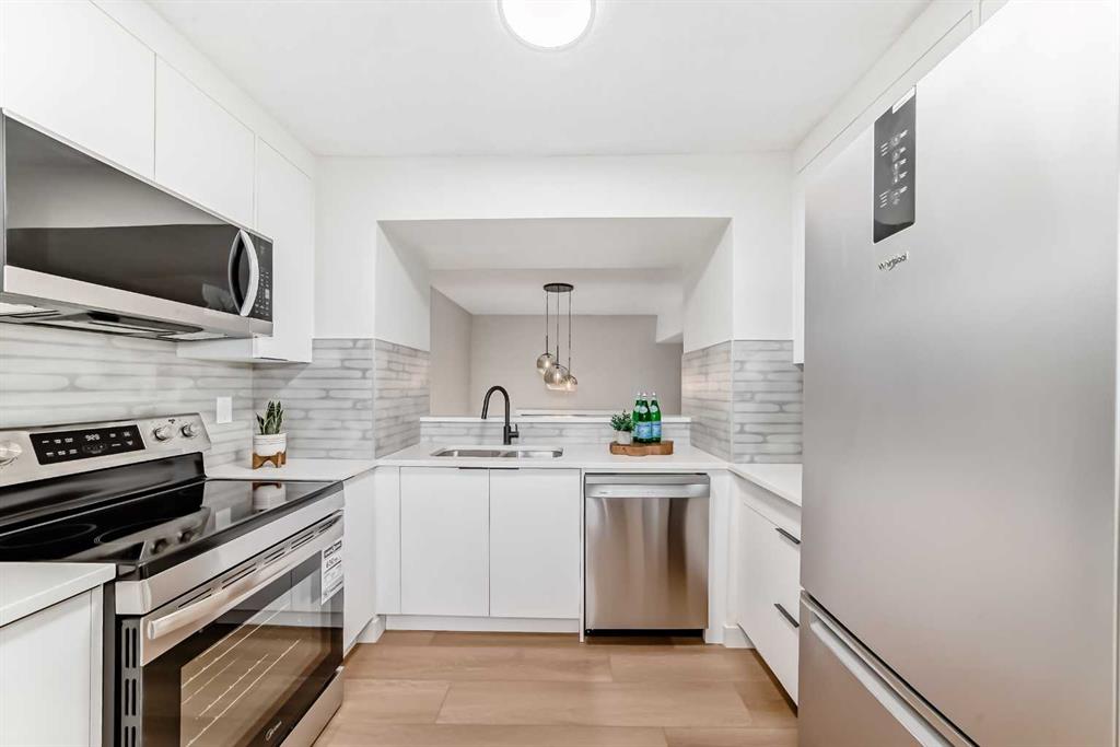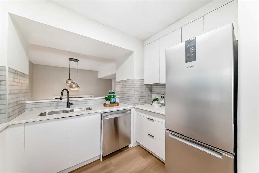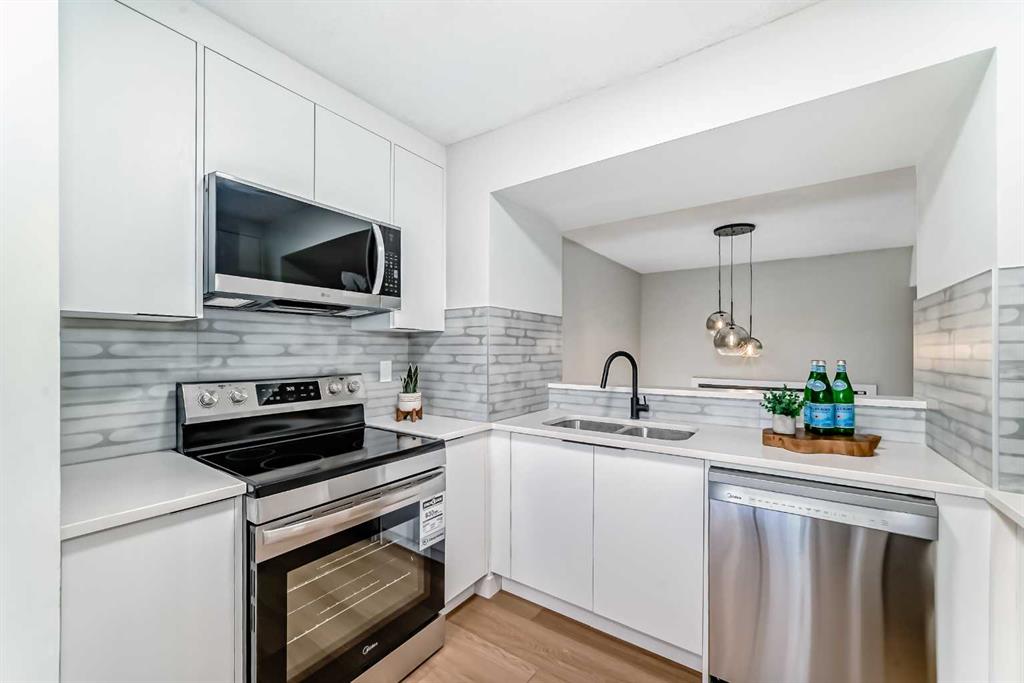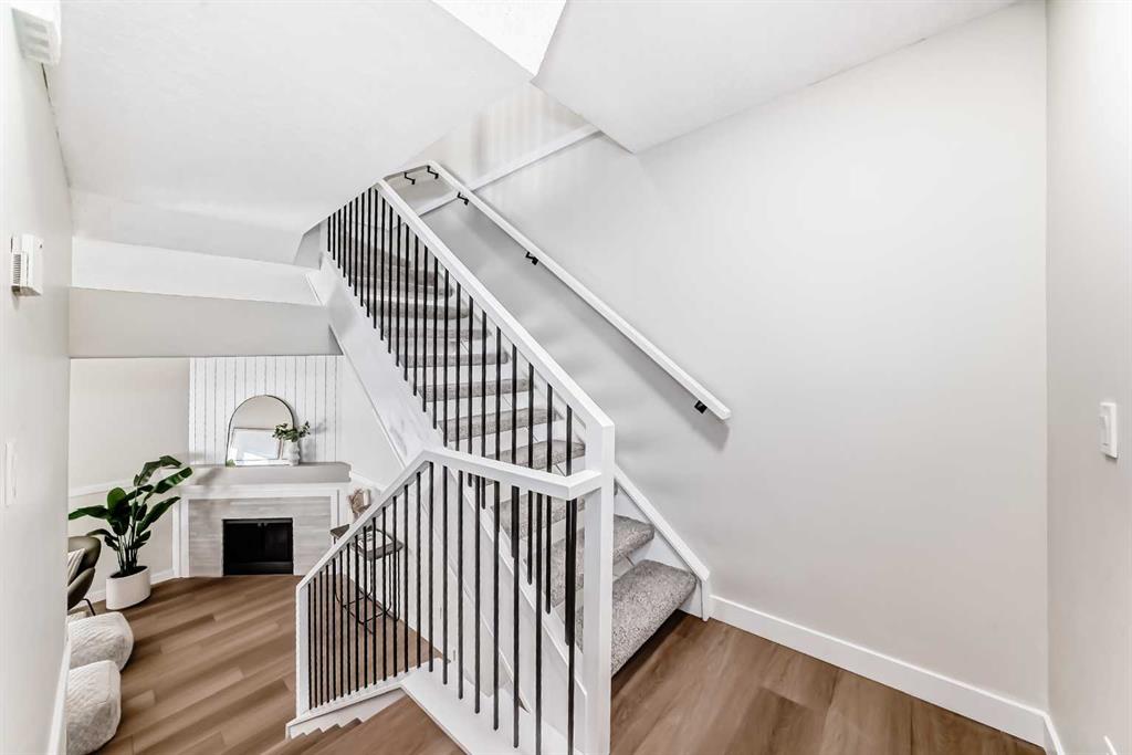 Location, location, location! This home is conveniently close to all amenities, including Marlborough Shopping Centre, Sunridge Mall, Peter Lougheed Hospital, schools, parks, and the many shops and services along 36th Street. Public transportation is easily accessible, with the C-Train just 10 minutes away. Enjoy quick access to Memorial Drive, Deerfoot Trail, Stoney Trail, and the Number One Highway. This newly renovated four-level split condo is a must-see. The main level offers a spacious living room with soaring ceilings, shiplap above the fireplace, and custom wainscoting on two wall. A cozy corner gas fireplace anchors the space, while patio doors lead to a massive east-facing deck (15’ x 19’). The railings on the staircase have all been modernized. Just a few steps up, the beautifully updated kitchen features white cabinetry, upgraded stainless steel appliances, and quartz countertops, and opens to a very spacious dining area. The lower two levels feature new upgraded vinyl plank flooring throughout. Upstairs, you’ll find two generous bedrooms with ample closet space, including a walk-in closet with a modern barn door off the master bedroom. The new flooring upstairs features carpet in the bedrooms and tile in the bathroom. The fully renovated four-piece bathroom showcases a large soaker tub and custom tile work. The home also features all-new lighting throughout, along with newer plumbing fixtures. The unfinished basement offers excellent potential for future development and currently houses the laundry area. All appliances are new, including the washer and dryer. This turnkey property is truly move-in ready and perfect for your family. Don’t miss this fantastic opportunity.