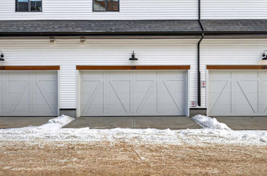 StreetSide is proud to present this exceptionally popular interior-unit townhome, where expansive living areas meet modern comforts and sophisticated finishes. The thoughtfully designed floorplan features three spacious upper-level bedrooms and two and a half well appointed bathrooms, complemented by a versatile lower-level den perfect for a home office or quiet retreat. The heart of the home is an inviting open-concept main floor, anchored by a large gourmet kitchen featuring a functional breakfast bar for casual dining. This bright living space transitions seamlessly to a private balcony, offering a perfect setting for outdoor relaxation. The interior showcases high end craftsmanship, including modern dark slab-style cabinetry with a full bank of drawers for maximum storage. The kitchen is further elevated by polished white quartz countertops and a full suite of premium stainless steel appliances. Durable luxury vinyl flooring runs throughout the primary living areas, while the stairs and upper level are finished with plush carpet over an 8lb underlay for superior comfort. This specific model is a water meter unit, allowing for efficient utility management. Additional conveniences include an attached double car garage and a lifestyle defined by maintenance free living and professionally maintained landscaping. Located in the vibrant community of Rangeview, Calgary’s premier garden-to-table neighborhood, this home offers a unique balance of village-like serenity and urban convenience. The development centers around a lush courtyard garden, providing residents with unparalleled access to community gardens, educational programming through the Home Owner’s Association, and year-round local markets. Enjoy the ease of proximity to local amenities and major routes while living in a master-planned community that celebrates connectivity and style.