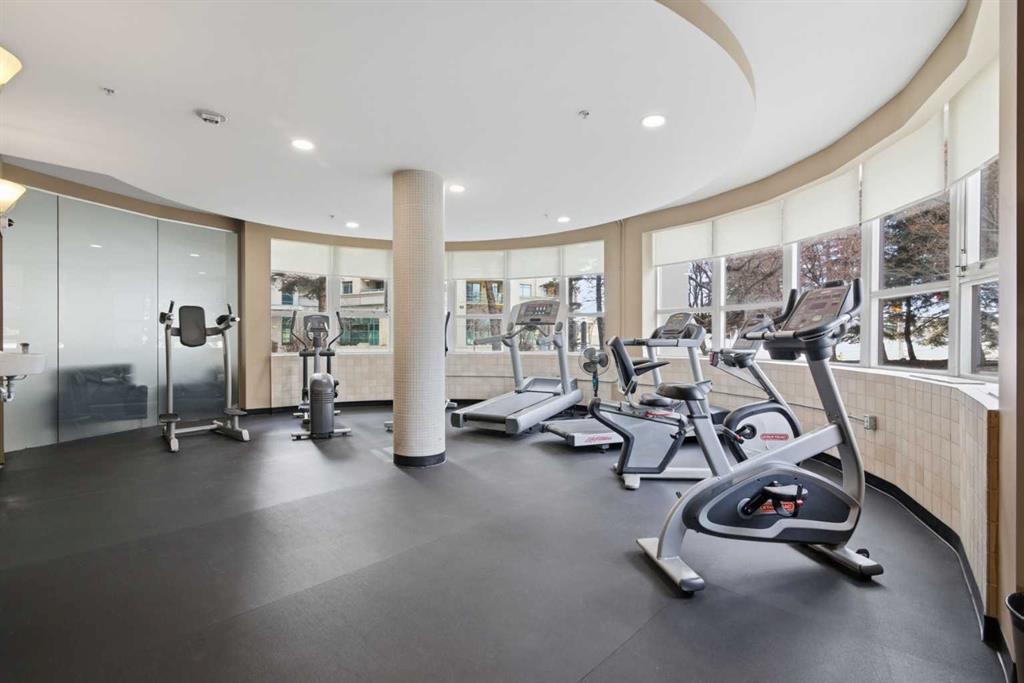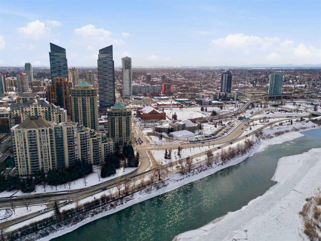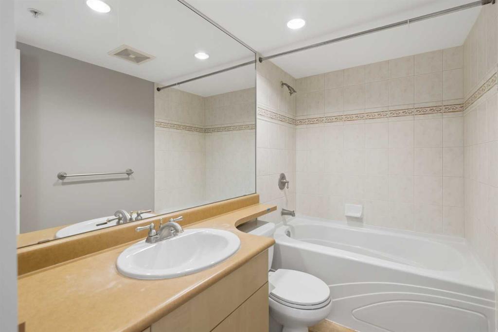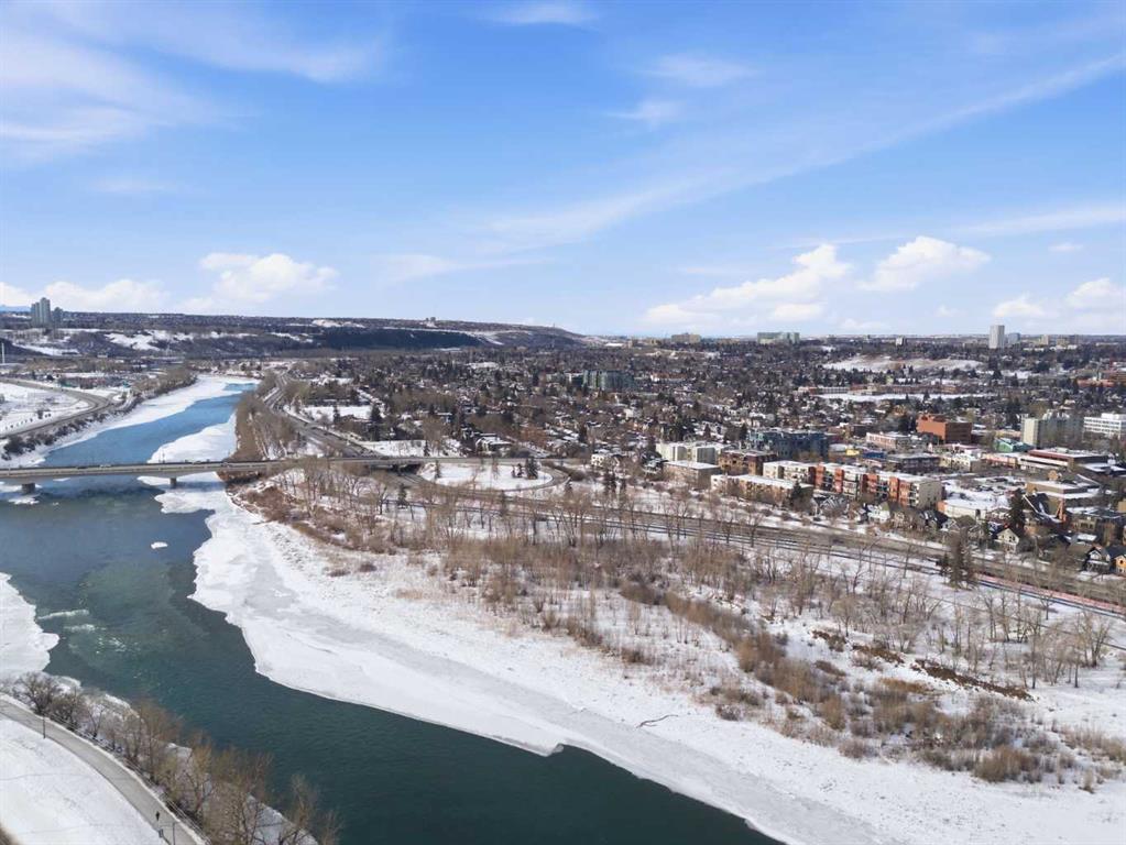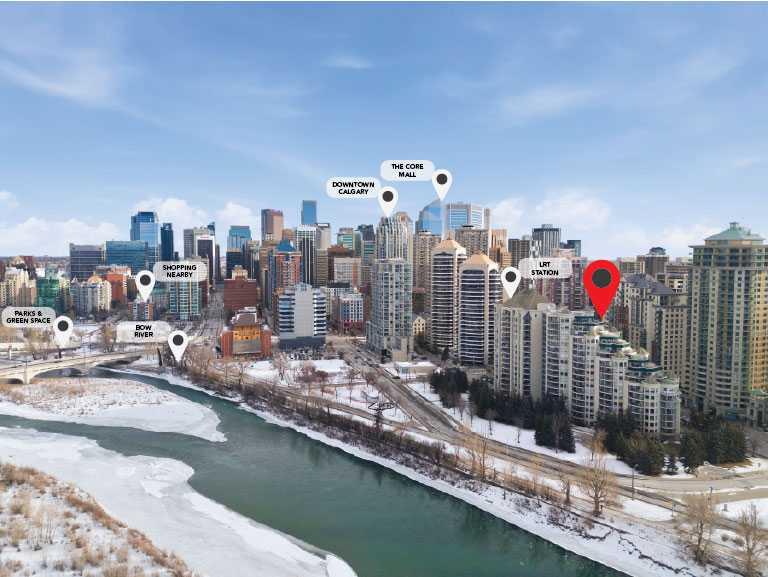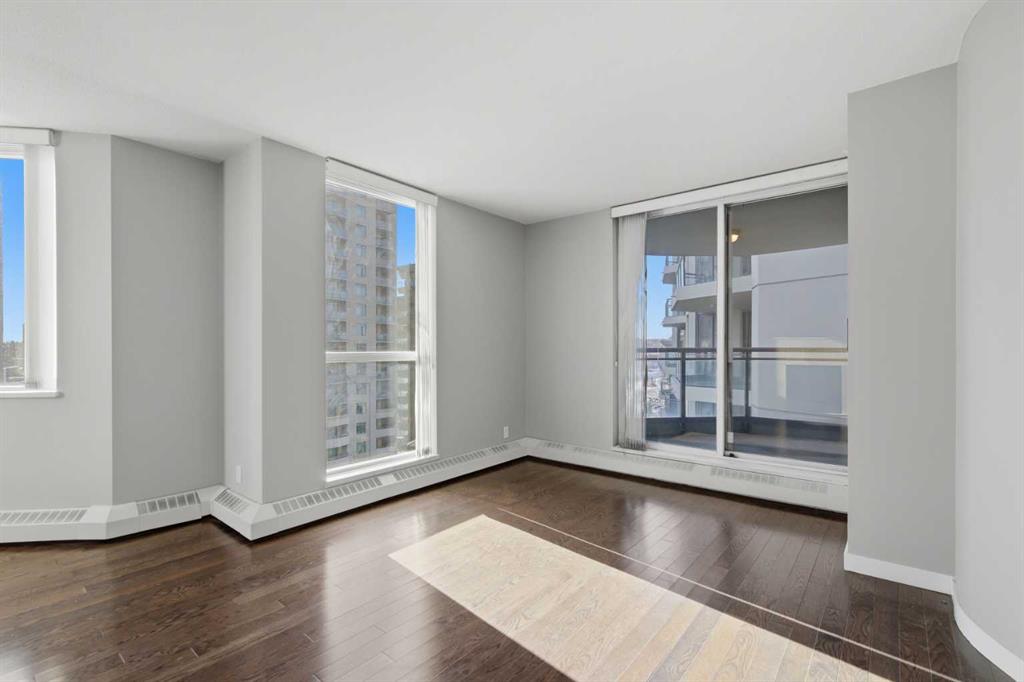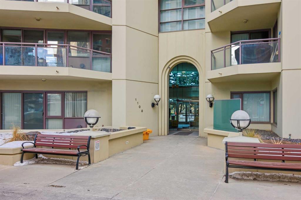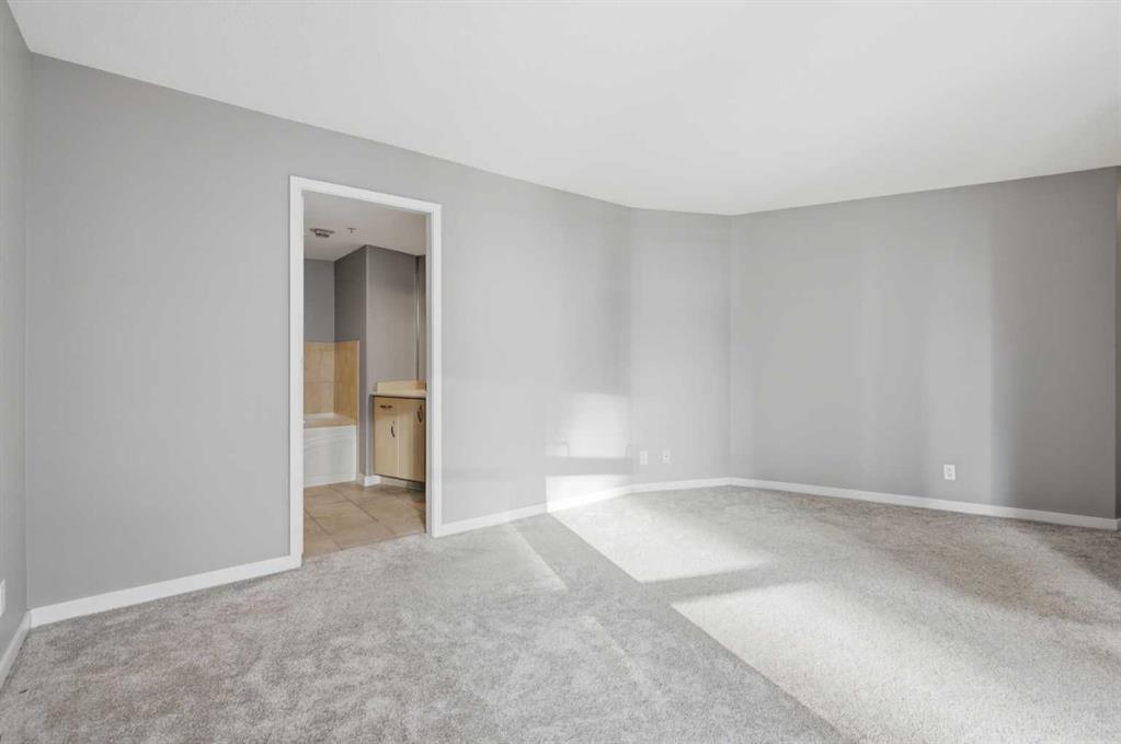 Welcome to Downtown's Westend! Enjoy abundant natural light through floor-to-ceiling, south-facing windows that brighten the entire unit. The primary bedroom features a well-appointed ensuite with a soaker tub, separate shower, and heated floors—also found in the second bathroom. You will appreciate the generous storage offered by two primary closets, including one walk-in. The open-concept living space showcases pristine Berber carpet and a versatile open den, ideal for a home office or reading area. The kitchen overlooks the dining space and is equipped with granite countertops, ample cabinetry, and sufficient room for two to work comfortably. A spare bedroom provides a welcoming option for guests, with convenient access to visitor parking. Additional features include one titled parking stall, party room, fitness centre, hot tub, and an exceptional location just one block from the C-Train, steps to Prince’s Island Park, and within walking distance to Kensington and downtown amenities. This is an excellent opportunity to live in a well-maintained building. Contact us today to book your private showing.