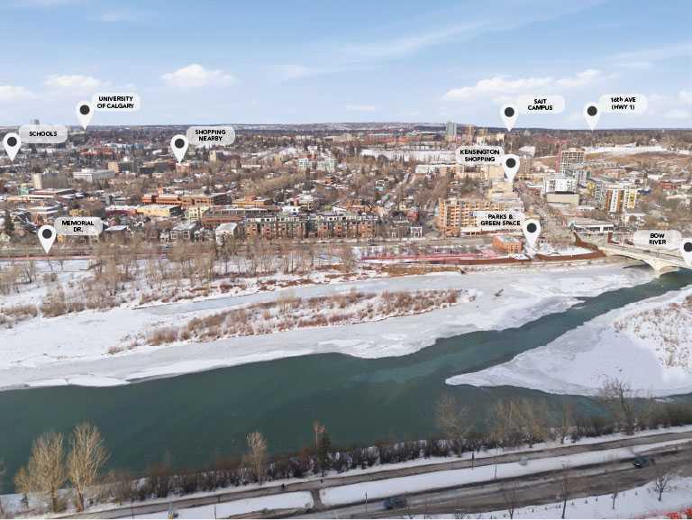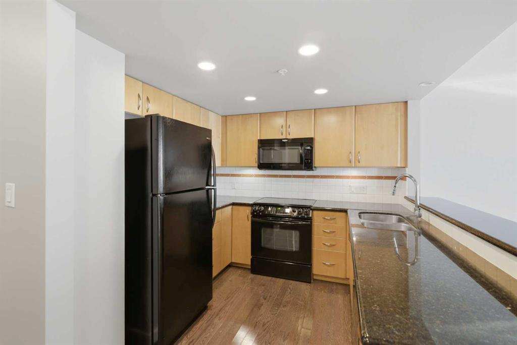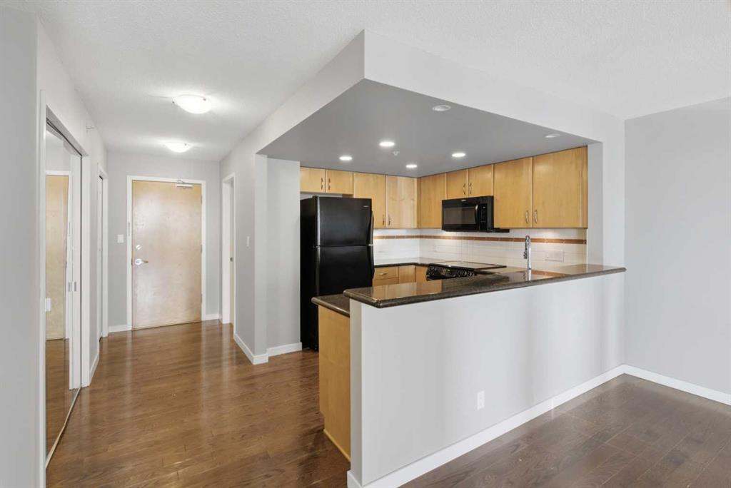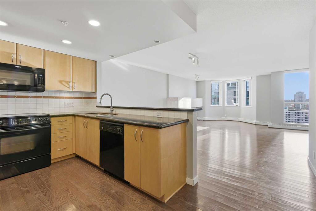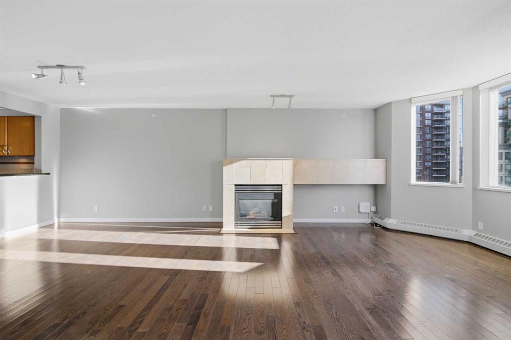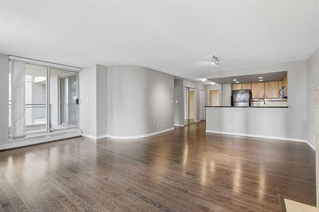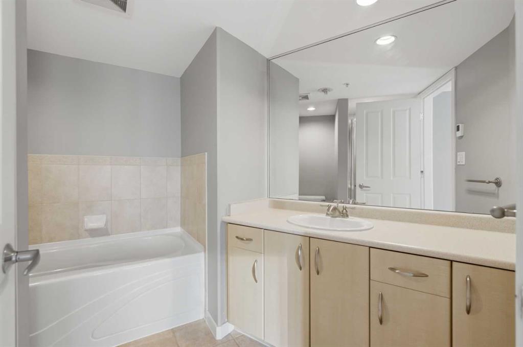 Welcome to Downtown's Westend! Enjoy abundant natural light through floor-to-ceiling, south-facing windows that brighten the entire unit. The primary bedroom features a well-appointed ensuite with a soaker tub, separate shower, and heated floors—also found in the second bathroom. You will appreciate the generous storage offered by two primary closets, including one walk-in. The open-concept living space showcases pristine Berber carpet and a versatile open den, ideal for a home office or reading area. The kitchen overlooks the dining space and is equipped with granite countertops, ample cabinetry, and sufficient room for two to work comfortably. A spare bedroom provides a welcoming option for guests, with convenient access to visitor parking. Additional features include one titled parking stall, party room, fitness centre, hot tub, and an exceptional location just one block from the C-Train, steps to Prince’s Island Park, and within walking distance to Kensington and downtown amenities. This is an excellent opportunity to live in a well-maintained building. Contact us today to book your private showing.