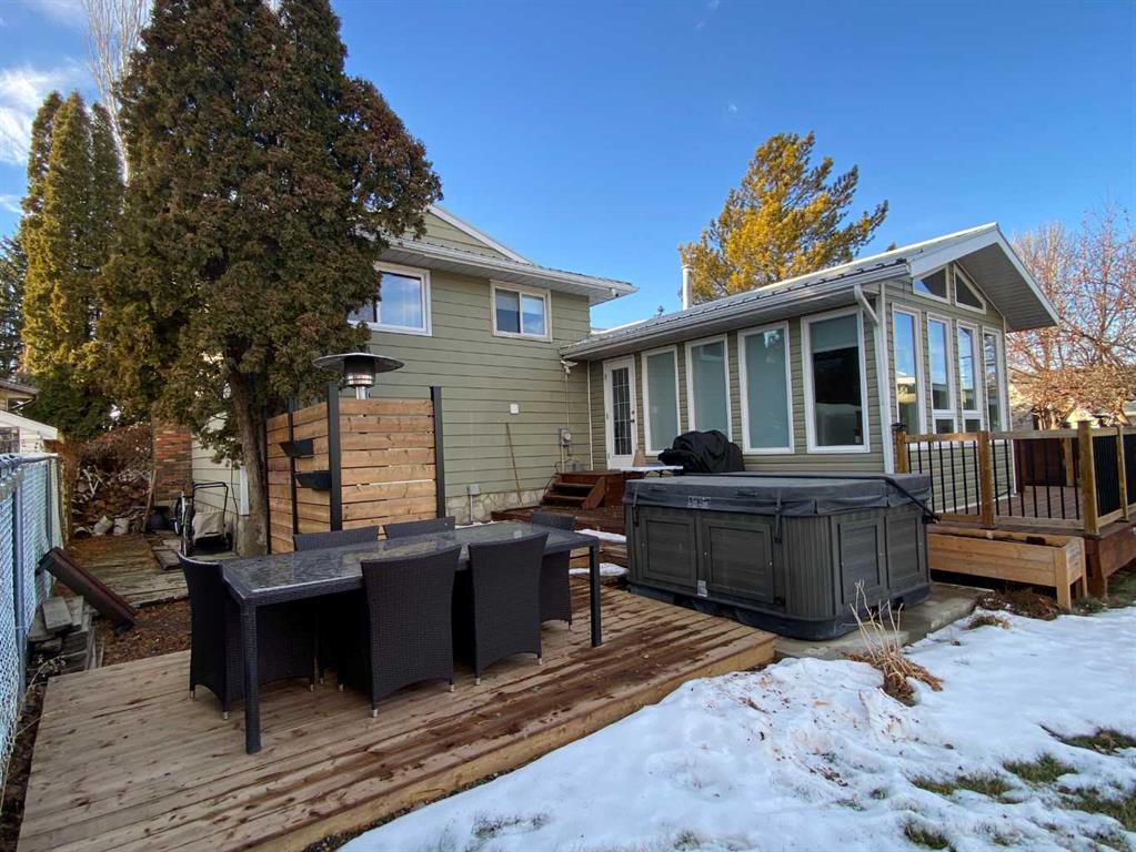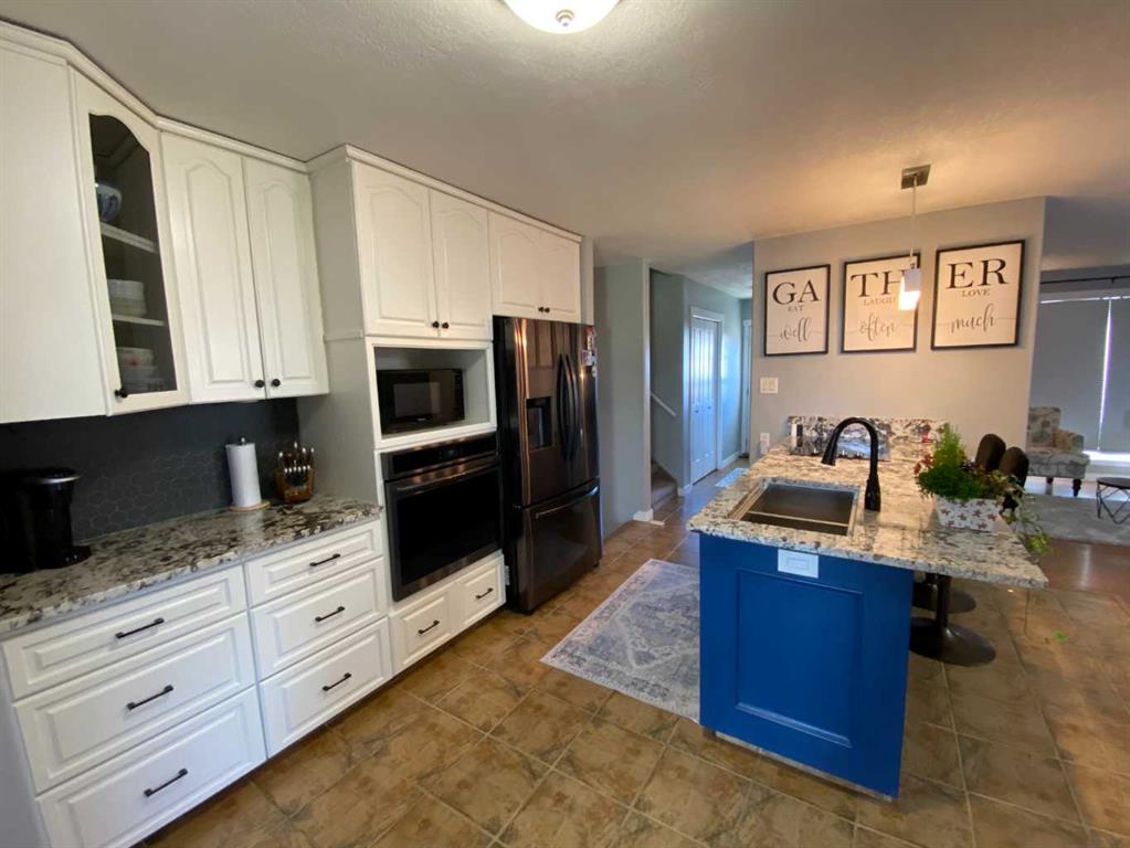 Welcome to 68 Blazier Park Street, Brooks, Alberta. This beautifully maintained home offers a distinctive four-level split design that delivers space, functionality, and character in all the right places. Featuring four bedrooms and two updated bathrooms, including one with a large, one-of-a-kind soaker tub, this home is ideal for both everyday living and relaxation. The tastefully updated kitchen is a standout, complete with matching appliances, an impressive seven-foot island-style worktop, and a seamless view into the dining area—perfect for entertaining or family gatherings. Just off the kitchen, the bright and spacious sunroom provides an inviting spot to enjoy your morning coffee or unwind at the end of the day. Throughout the home, you will appreciate the abundance of extra storage, making it easy to stay organized without sacrificing living space. Step outside to discover a very large wraparound deck, creating an exceptional outdoor entertainment area that feels like a private owner’s retreat. Whether hosting guests or enjoying quiet evenings, this space is designed to impress. The 26 x 28 double garage offers ample room for vehicles and hobbies, with additional side parking ideal for an RV or extra toys. Recent updates include a nearly new garage roof, and front windows scheduled for replacement before month’s end, adding peace of mind and value. This home shows exceptionally well and must be seen to be fully appreciated. Schedule your private viewing soon—opportunities like this do not last long.