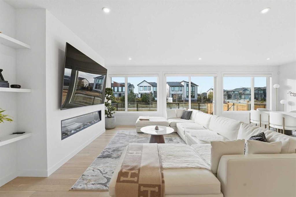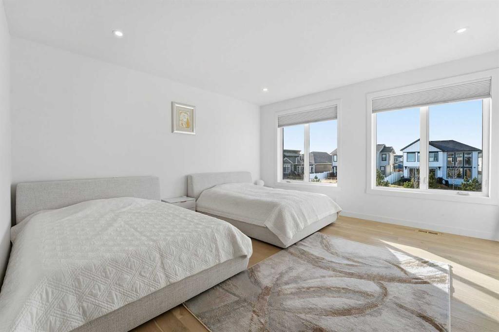 Welcome to this breathtaking luxury estate home in the prestigious community of Rockland Park, where sophisticated design meets modern elegance. The Lucca Model built by Brookfield offers over 3,100 sq. ft. above grade and more than 4,500 sq. ft. of total developed living space, this residence offers a rare combination of grand scale, refined finishes, and serene natural surroundings. Step inside to a massive main living area that exudes a sleek Miami-inspired aesthetic, featuring full marble countertops and backsplash, a state-of-the-art chef’s kitchen, and expansive windows that flood the home with natural light. The open-concept layout flows effortlessly into a spacious dining area that opens onto a full-width deck, perfect for entertaining or relaxing while taking in the lush greenery beyond. Light up your nights with the Gemstone lighting. Upstairs, you’ll find three large bedrooms, including a luxurious primary retreat, along with an open-to-below bonus room that adds architectural drama and brightness to the upper level. The fully developed basement continues to impress with an additional bedroom and bathroom, a versatile flex room or home gym, and a recreation / movie room—the ideal setup for family fun or hosting guests. Backing onto a beautiful greenspace with direct access to the Bow River pathways, this home offers peace, privacy, and proximity to nature while being just minutes from all the amenities that make Rockland Park one of Calgary’s most sought-after communities. Residents of Rockland Park enjoy exclusive access to an incredible community center featuring an outdoor pool, hot tub, sport courts, playground, and gathering spaces—all designed to enhance the vibrant lifestyle this community is known for. Experience elevated living in a home that truly has it all—style, space, and sophistication.