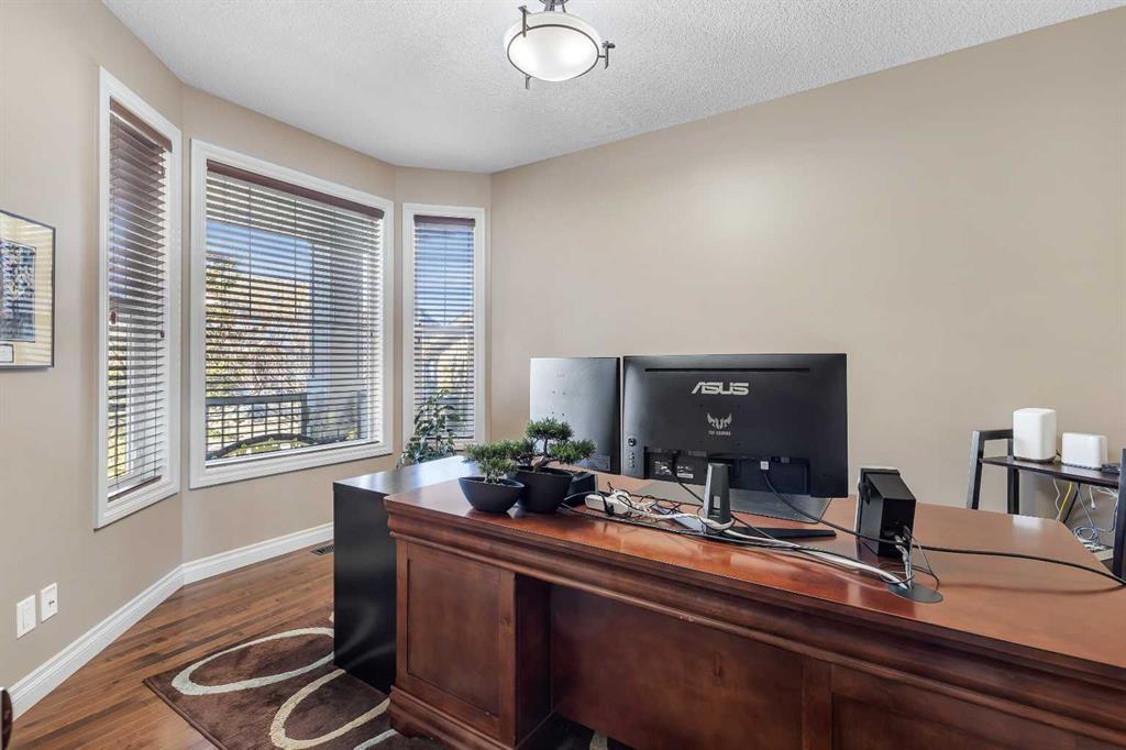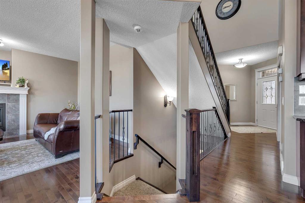 Location, Location, backing into the Canal & pathway. This original owner home offers numerous upgrades & features which include: 9' ceilings, over 3600 sq ft of developed living space, total of 5 bedrooms & 3.5 bathrooms, walkout lower level, upgraded stainless steel appliances, newer composite deck, hardwood, granite in kitchen, wrought iron railings, 2 furnaces, upper furnace has air conditioning, R.I .for speakers on main & upper ensuite,, also 2 speakers on deck, all upper bedrooms have walk in closets, gas line on deck, lower patio area from walkout, hot water tap outside, manual underground sprinklers in front yard & so much more. The main floor features a 2pc bath, den, laundry area with sink, spacious great room with gas fireplace & a large kitchen that offers a pantry, island with eating bar & a nook that has access to the over sized deck that over looks the canal. The upper floor features a 4pc bath, bonus room & 3 good size bedrooms. The primary bedroom offers a walk in closet & full ensuite. The lower walk out features 2 bedrooms, 3pc bath & a family room that has access to the patio/yard. This home shows pride of ownership & is located on a quiet street close to schools, shopping, green spaces & all other amenities. Click on link to view 3D walk through.