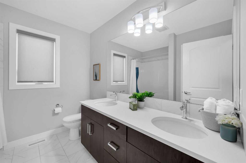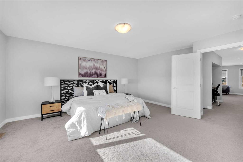 Welcome to this exceptional executive residence located in the prestigious, award-winning community of Coopers Crossing in Airdrie. Perfectly positioned on a massive 7,000+ sq ft pie-shaped lot, this fully developed walk-out home offers over 3,700 sq ft of refined living space, combining luxury finishes, thoughtful upgrades, and outstanding everyday convenience. One of the standout advantages of this property is its exceptional connectivity—providing quick and easy access to Calgary, making it ideal for commuters and professionals. Families will appreciate the three nearby schools and the convenience of a shopping center just minutes away, offering a grocery store, daycare, Shoppers Drug Mart, medical and dental clinics, and more—everything you need within close reach. The main floor is designed for both elegance and functionality, featuring a rare main-level bedroom and full bathroom, ideal for guests, extended family, or multigenerational living. At the heart of the home is the chef-inspired gourmet kitchen, showcasing high-end appliances, upgraded cabinetry, quartz countertops, and a striking waterfall island—perfect for entertaining or daily family life. A built-in workstation on first floor provides a dedicated space for working or studying from home, while custom roller shades add style and privacy throughout. Upstairs, you’ll find a generous bonus room, perfect for family movie nights or a kids’ retreat, along with well-appointed bedrooms and a spacious primary suite designed as a true sanctuary. The primary suite is a luxurious escape, offering expansive space, serene views, and a well-appointed walk-in closet. The ensuite bath feels like a private spa, complete with upscale finishes and a thoughtfully designed layout for ultimate relaxation. The fully finished walk-out basement offers impressive 9-foot ceilings and flexible living, making it ideal for extended family or additional income opportunities (a secondary suite would be subject to approval/ permitting by the city). This home is loaded with over $100,000 in premium upgrades, including central air conditioning, water softener, reverse osmosis water system, and 15 solar panels, delivering enhanced comfort, efficiency, and long-term savings Offering luxury, space, sustainability, and unbeatable convenience, this remarkable home delivers a lifestyle that truly stands out in today’s market. A rare opportunity in Coopers Crossing—book your private showing today.