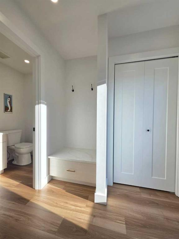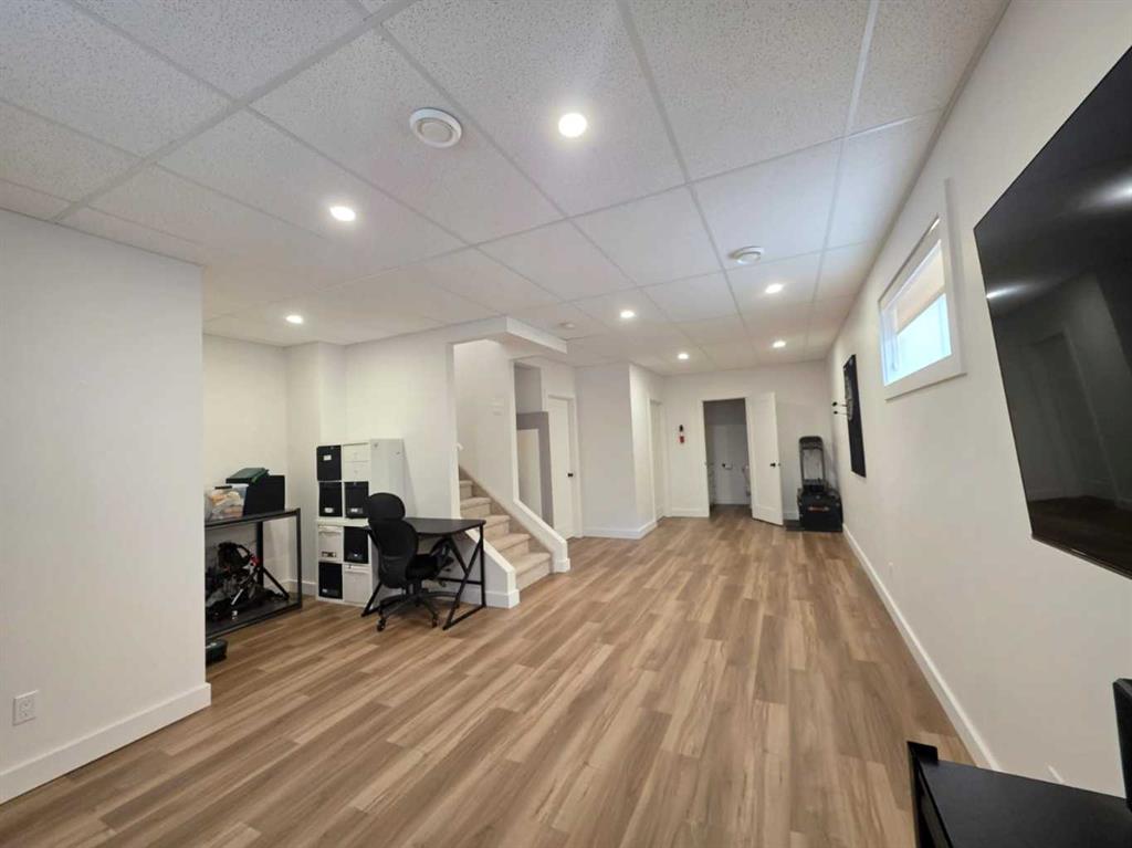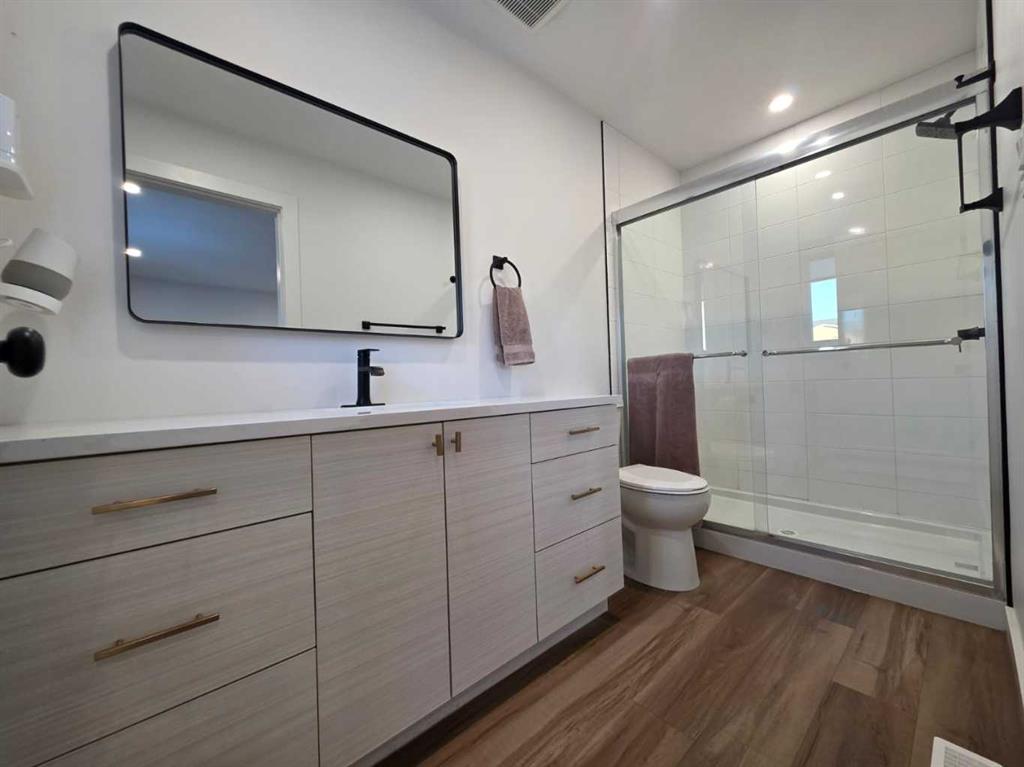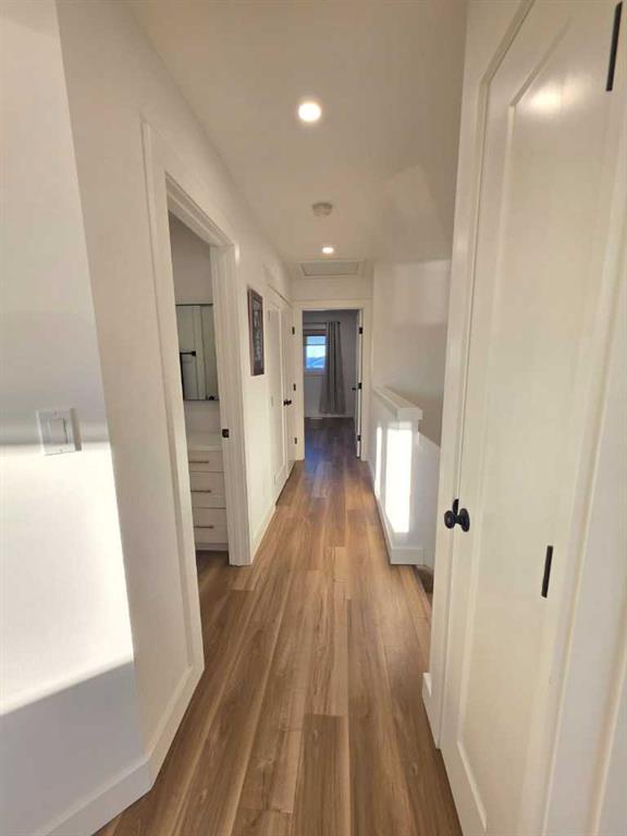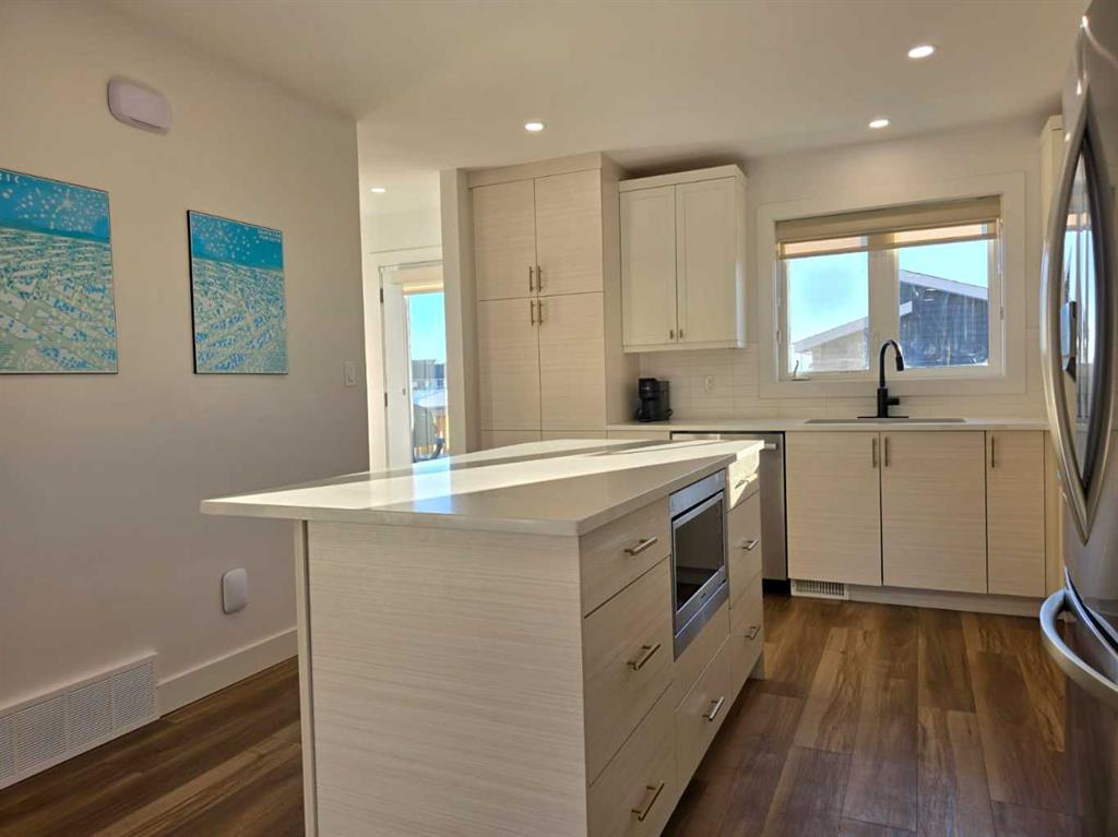 Discover the perfect blend of modern style and comfort in this one-owner, 2-storey gem crafted by one of Wainwright's top builders, Smith Builders. Set against the serene backdrop of a beautiful green space, (Dr. Brilz Park) with extensive walking trails, this home is a true retreat you'll love coming home to. From its striking modern, architectural design to the thoughtful attention in every detail, no corner has been overlooked. The main floor greets you with an open-concept layout that seamlessly connects the kitchen, dining area, and living room, providing an ideal space for both entertaining and everyday living. The kitchen is a standout, featuring sleek soft-close cabinets, a large pull-out pantry, a breakfast bar island, and pristine quartz countertops, modern stainless-steel appliances all highlighted by a white subway tile backsplash. A convenient 2pc powder room is located just off the back entrance, adding an extra level of functionality. Throughout the home, vinyl plank flooring, plush carpet stairs and LED pot lights create a cohesive and stylish vibe. Upstairs, the spacious primary bedroom offers a peaceful sanctuary, complete with a walk-in closet and a luxurious 3pc ensuite with a beautifully tiled walk-in shower and glass doors. Two additional bedrooms, a well-appointed 4pc bathroom, and the second-floor laundry room complete the upper level, offering both convenience and comfort. The fully finished basement provides even more living space, perfect for a family room or extra bedroom, with a 3 pc bathroom, large storage area and mechanical room. The family room is also well-equipped with CAT5 wiring designed for seamless and reliable network connectivity as you work from home or enjoy dedicated gaming! Waiting right outside your back door step onto the south-facing back deck, and savor your morning coffee and then relax in the evening or take a stroll on the Brilz Park walking trails. Families will appreciate the large playground right across the street to keep the kids entertained for hours. Additional features include a 16x22 detached, heated and insulated single car garage with plenty of room for your vehicle, toys and even a workbench! There's a gravel parking pad at the rear, a poured concrete walkway leading to your back deck as well as a poured concrete sidewalk leading to the front entrance. With this property’s close proximity to shopping and restaurants, who needs a vehicle to get to work? Plus, you'll have peace of mind with 6 years remaining of the 10-year National New Home Warranty. This is the home you’ve been waiting for—don’t miss the opportunity to make it yours!