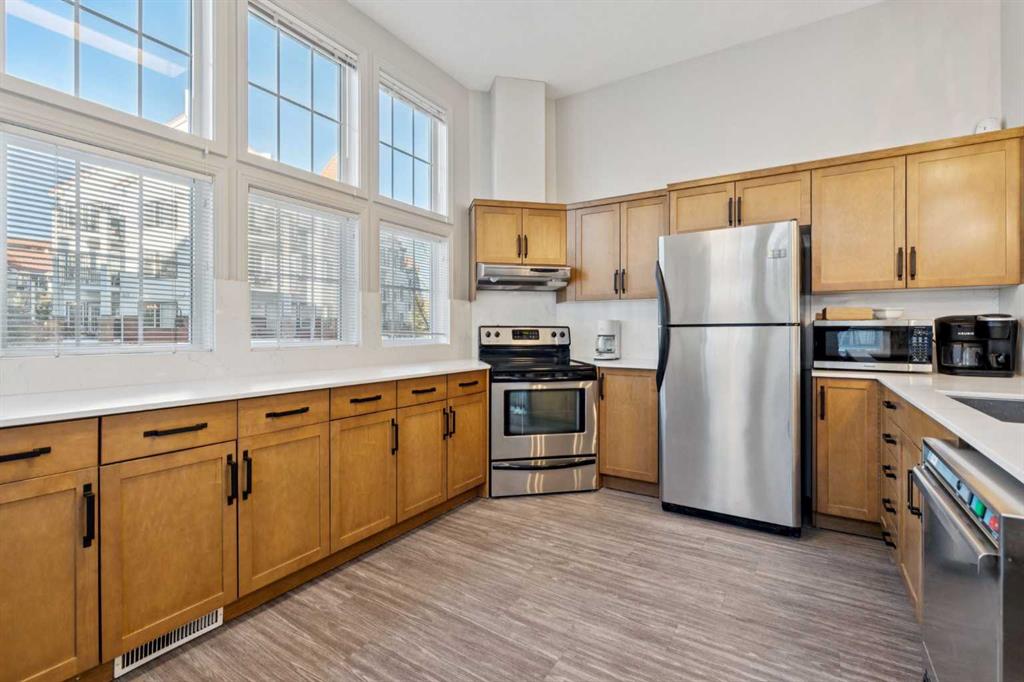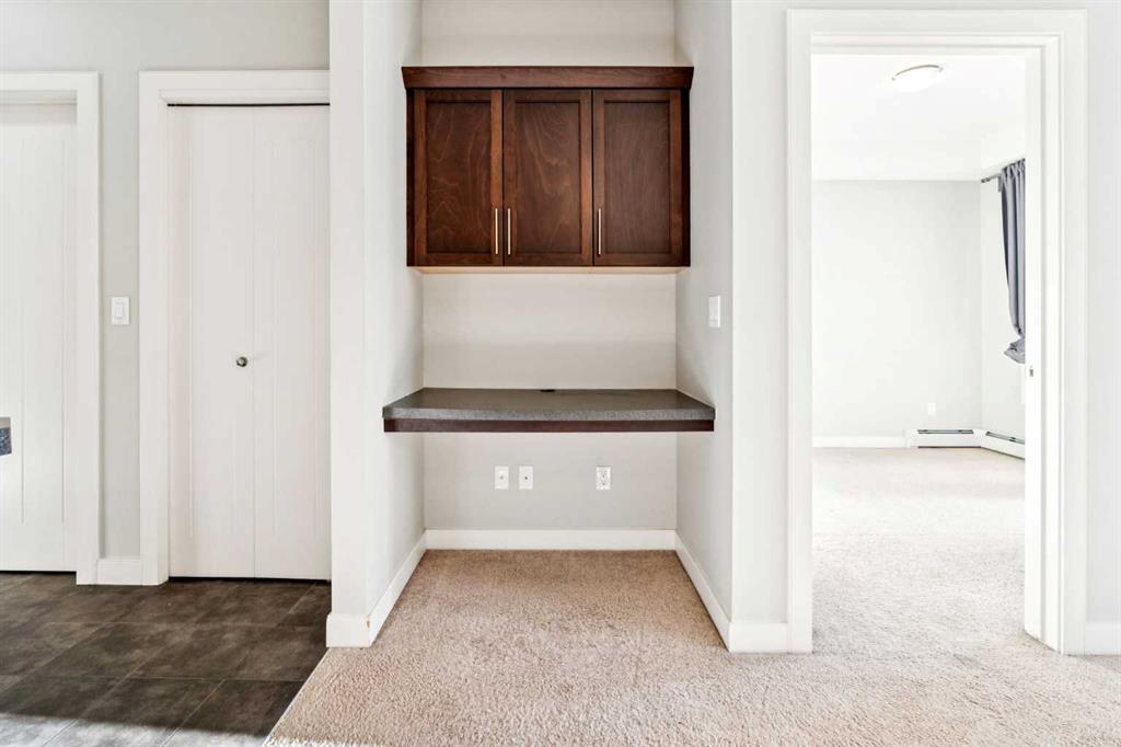 OPEN HOUSE Sunday JAN. 25-2:00-4:00... Welcome to Red Haus , located in the very desirable NW community of Royal Oak, situated close to amenities including shopping, restaurants, Rocky Ridge YMCA, C-Train Station, Schools & all within quick access to main thorough fares including Stoney Trail. This one bedroom, third floor, open concept unit looks out to the nicely landscaped courtyard which can be enjoyed from your convenient balcony with BBQ gas line. The kitchen features stainless steel appliances, plenty of cabinet & counter space as well as a functional eating bar & is open to the living room -perfect for entertaining. There is also a practical built-in desk, great for at home work station. The spacious bedroom has a good sized walk through closet which is adjacent to the 4 piece bathroom. The washer/dryer unit is off the bathroom. Amenities in this complex are located in the central Club House building & features a fitness centre, meeting room with kitchen & patio area. Included with this condo is a titled underground parking space & storage locker( Room 20-1 in parkade). There is also bike storage & visitor parking. What a great place to call your own in this well-managed complex!