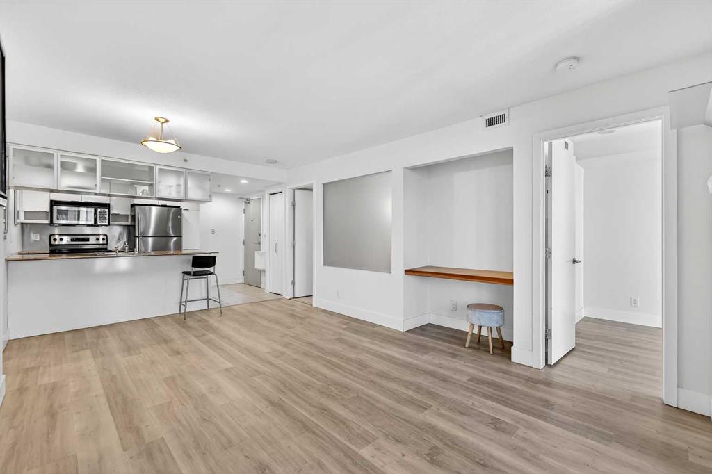 Welcome to elevated urban sophistication on the 16th floor of the prestigious Stella complex, located at 1110 11 St SW. This stunning 1-bedroom, 1-bathroom residence offers the pinnacle of downtown living, blending high-altitude tranquility with the vibrant energy of Calgary’s Beltline. Perched high above the city, Unit 1609 immediately impresses with an abundance of natural light cascading through expansive floor-to-ceiling windows that frame breathtaking panoramic views of the skyline. The open-concept layout is masterfully designed to create a seamless flow between the living and dining areas. The efficient galley-style kitchen features warm wood cabinetry, sleek granite countertops, a premium stainless steel appliance package, and a functional island/breakfast bar that serves as a perfect transition for casual dining or entertaining. The living and dining space allows for versatile furniture arrangements, while the private balcony provides a quiet outdoor sanctuary to enjoy the city vistas. The primary bedroom is a true retreat, generously proportioned and featuring a covered walk-in closet that provides exceptional organization and storage. For maximum convenience, the unit includes a discreetly placed in-suite stacked laundry center. Living at Stella means enjoying a lifestyle defined by executive-class amenities and security. Residents benefit from a 24-hour concierge and on-site security service, ensuring a safe and welcoming environment at all times. The building’s fitness facilities are second to none, featuring a state-of-the-art gym and steam rooms, while the designer’s entertainment room and lushly landscaped private courtyard provide ideal spaces for socializing. This unit comes complete with a secure underground heated parking stall and a private assigned storage locker. The location is truly unbeatable, offering a world-class walk score just steps from the Kirby CTrain Station, boutique shopping, and the trendy restaurants and cafes of 17th Avenue. Whether you are a professional seeking a sophisticated home close to the office or an investor looking for a premium property in a high-demand concrete tower, this 16th-floor gem represents an extraordinary opportunity. From the floor-to-ceiling glass to the high-end finishes and the comprehensive building amenities, every detail of this home has been curated for comfort and style. Experience the best of the Beltline and make this sky-high sanctuary in your new urban home. Schedule your private viewing today to fully appreciate the views, the quality, and the lifestyle that only a high-floor unit at Stella can provide.