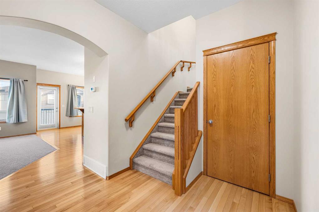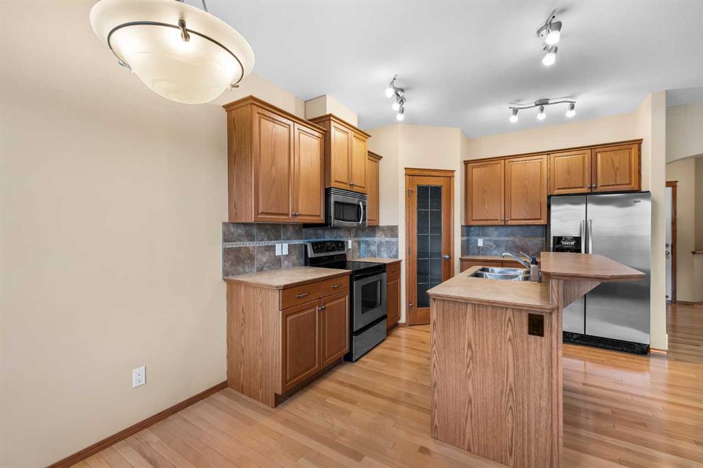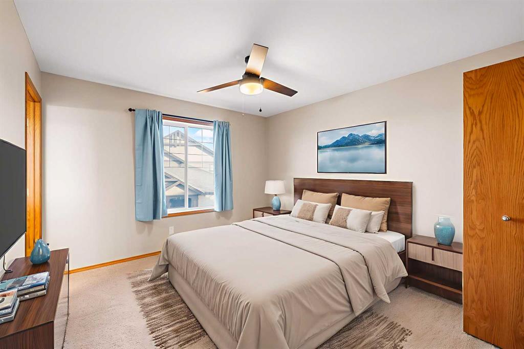 Welcome to Cooper’s Gardens- this beautifully maintained, spacious end-unit townhome offers 2 bedrooms, 2.5 bathrooms, and over 1,450 sq ft of living space, complete with a double attached garage and additional driveway parking. Perfectly positioned on a large corner pie lot in the award-winning community of Coopers Crossing, this home offers a low-maintenance lifestyle with no yard work or snow removal to worry about. Step inside to an inviting open-concept layout featuring 9’ ceilings and an abundance of natural light pouring in through expansive windows. The corner location allows sunshine to fill the home throughout the day, creating a bright and welcoming atmosphere. The chef-inspired kitchen is both stylish and functional, showcasing stainless steel appliances, a breakfast bar island, and a spacious corner pantry, all seamlessly connected to the dining and living areas-ideal for entertaining family and friends. The living room is warm and inviting, centered around a cozy fireplace, with a tasteful blend of hardwood and carpet flooring throughout. Upstairs, you’ll find two generous primary suites, each complete with its own spacious 4-piece ensuite and large walk-in closet-perfect for guests, family, or a shared living arrangement. The unfinished basement features high ceilings, rough-in plumbing, and two large windows, offering excellent potential for future development and your own design ideas. Additional highlights include central air conditioning, a central vacuum system, and a well-managed, pet-friendly complex (with board approval). Enjoy the convenience of being within walking distance to schools, parks, ponds, pathways, and local amenities. With low condo fees, pride of ownership throughout, and an unbeatable location, this home offers exceptional value in one of Airdrie’s most desirable award winning communities .Check it out!
