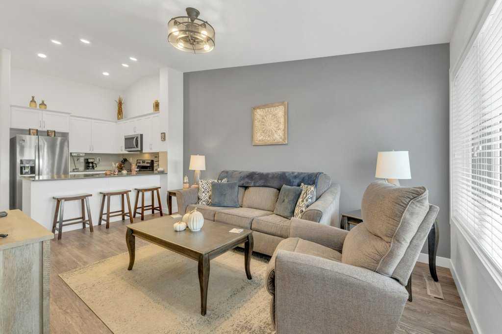 Don’t miss the chance to own this exceptional turnkey property located conveniently near shops, cafés, and scenic walking trails. This bright and contemporary unit features all the latest amenities, including stunning white cabinetry, stainless steel appliances, and elegant Quartz countertops. The spacious living area, adorned with a large expanse of windows, invites an abundance of natural light. The main floor boasts impressive vaulted ceilings, creating an open and airy atmosphere. You'll find two bedrooms on this level, highlighted by a generous master suite complete with a walk-in closet and a luxurious four-piece en suite bathroom. The lower level is partially finished, offering a sizable bedroom and an additional three-piece bathroom, along with potential space for a future recreation or game room. An attached single garage ensures your vehicle stays cozy during the winter months. This community is ideal for those seeking to escape the burdens of lawn maintenance and snow removal, as these services are included. Whether you’re looking to downsize or need a low-maintenance home for seasonal getaways, this property is the perfect solution.