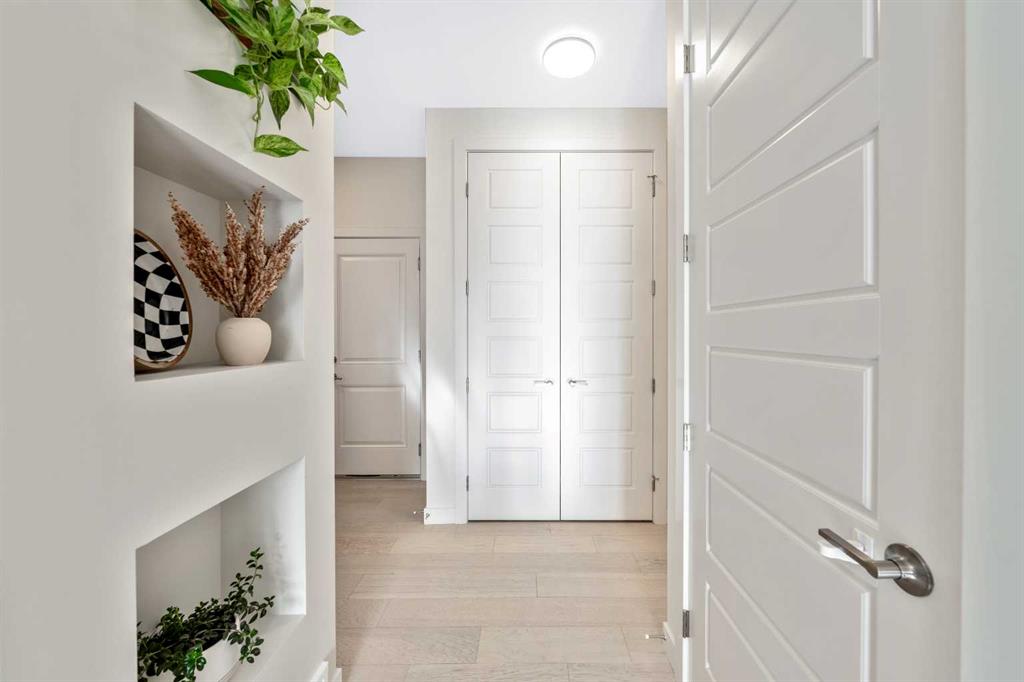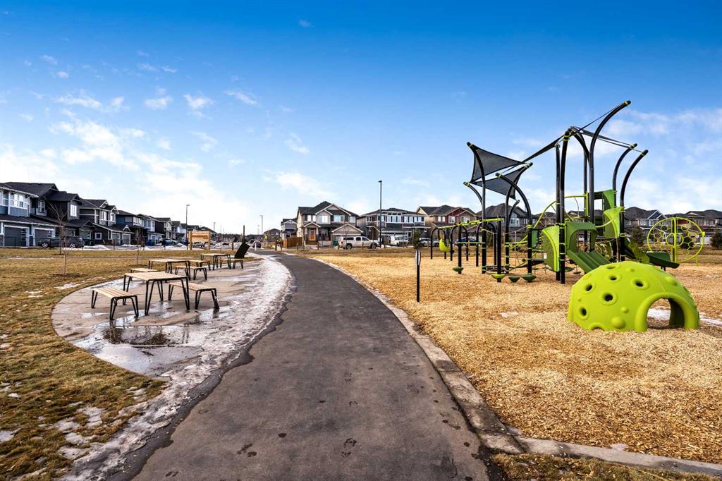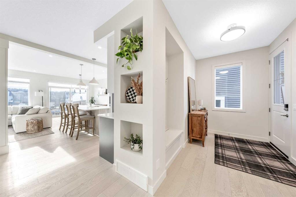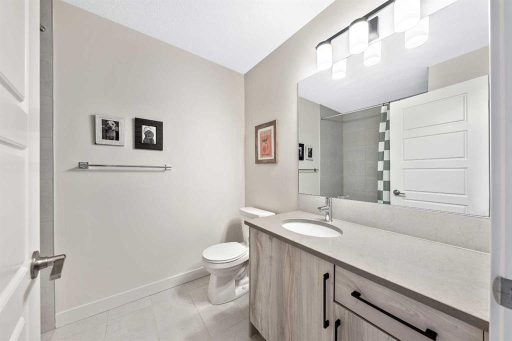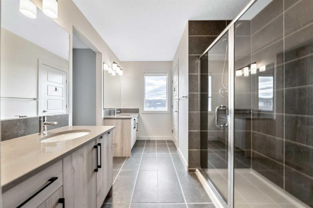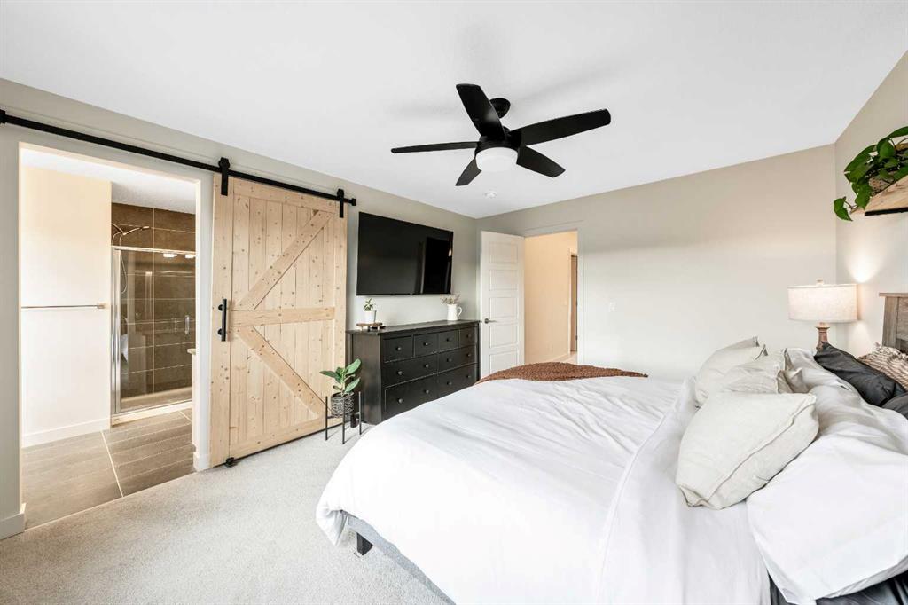 Situated on a quiet street in the centrally located community of Greystone—just steps from a park & playground—this beautifully upgraded home features a sun-filled, fully fenced south-facing backyard, ideal for both entertaining and everyday living. Thoughtfully designed with an open, modern layout, this 3-bedroom, 2.5-bath home offers over 1,762 sq. ft. of stylish living space and showcases numerous premium upgrades throughout. The main floor makes an immediate impression with an elegant 8’ glazed front door, 9’ ceilings, oversized windows, and refined 8’ interior doors. Engineered hardwood flooring flows seamlessly through the foyer, hallway, great room, kitchen, and dining nook, creating a warm and cohesive atmosphere. The kitchen is a true showpiece, featuring a large single-level 7’ entertainment island with breakfast bar, quartz countertops, and a spacious walk-in pantry with 8’ French doors. Additional highlights include 42” upper cabinetry with dropped bulkhead, soft-close doors and drawers, dedicated pots-and-pans storage, and a full stainless steel appliance package, including a refrigerator, smooth-top electric range, microwave/hood fan, and built-in dishwasher. The bright and inviting great room and dining area are flooded with natural light from oversized windows and an 8’ wide sliding patio door, while the striking Napoleon Entice fireplace adds both style and warmth—perfect for relaxing evenings or hosting guests. Upstairs, the primary suite offers a private retreat complete with a well-appointed 4-piece ensuite featuring dual quartz vanities with undermount sinks, an oversized shower, ceramic tile flooring, and a private water closet with a window. A generous walk-in closet is conveniently accessed through the ensuite. The upper level is completed by a spacious front bonus room, two additional well-sized bedrooms with ample closet space, a full main bathroom with quartz countertops and tile flooring, and a convenient second-floor laundry room finished with tile. The unfinished basement features 9’ ceilings, providing an excellent opportunity for future development and allowing the new owners to create a space perfectly tailored to their needs—a true blank canvas. Bright, modern, and ideally located in a family-friendly community, this home offers exceptional value and versatility and truly checks all the boxes.
