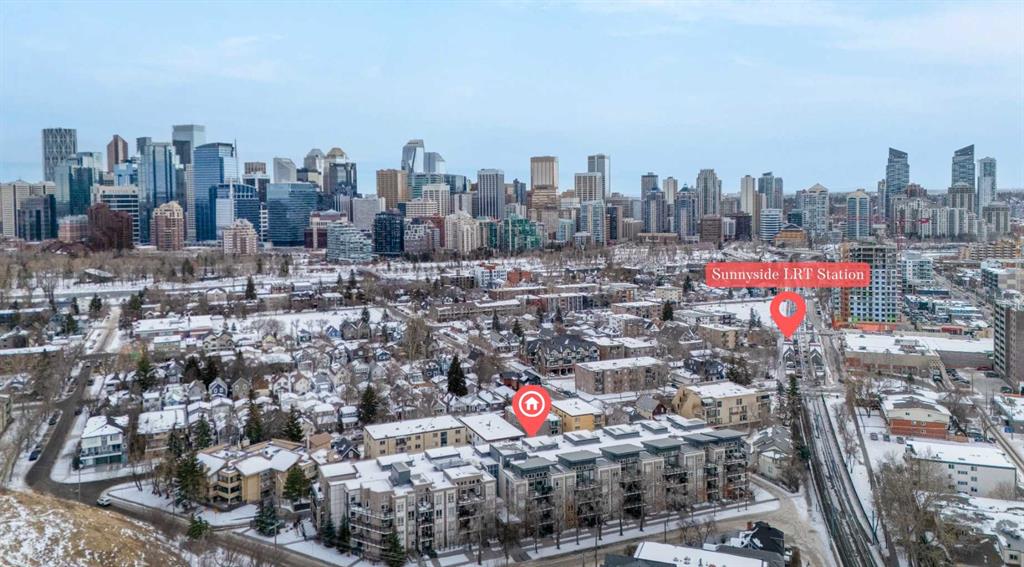 Welcome to urban sophistication in the heart of Sunnyside. This beautifully appointed single bedroom penthouse unit offers the perfect blend of modern design, functionality, and inner-city convenience. Step inside to discover soaring ceilings and expansive windows that flood the space with natural light, creating an open and airy atmosphere rarely found at this price point. The thoughtfully designed living area easily accommodates full-sized furnishings, making it ideal for both everyday living and entertaining. Clean contemporary finishes, warm flooring, and a neutral palette provide a timeless backdrop to suit any style. The open-concept layout flows seamlessly, maximizing space and comfort while maintaining a sense of separation where it matters. Be amazed by the near new condition, assigned storage locker, titled parking, wash bay in the parkade and workshop for your bike tune ups. Situated just steps from Kensington, Sunnyside LRT, boutique shops, cafés, and river pathways, this location offers effortless access to downtown Calgary while preserving a vibrant neighbourhood feel. Whether you’re a professional, downsizer, or investor, this home delivers exceptional value in one of Calgary’s most walkable and desirable communities.