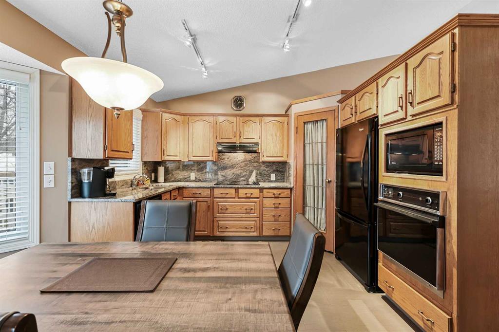 Welcome to the highly sought-after lake community of Sundance, a cherished neighbourhood known for its traditional large lots, pride of ownership, and a true sense of community. With its wide streets, abundant green space, and winding pathways, Sundance offers a lifestyle that stands apart. Adjacent to Fish Creek Provincial Park, Sikome Lake, and just moments from the Bow River, this is a haven for outdoor enthusiasts and nature-minded residents who value the perfect balance of serenity and convenience. Discover over 1,600 square feet of comfortable, well-planned living in this immaculately maintained and nicely updated four-level split home—a timeless design that offers room to grow, gather, and create lifelong memories. The classic layout features four bedrooms, two full baths, and an unfinished basement, ready for your future vision. As you step inside, you’re welcomed by a stunning vaulted ceiling that enhances the grandeur of the formal living room and spacious dining room. Traditional bay windows throughout the home invite natural light to pour in, giving each room a warm and inviting ambience. The kitchen flows seamlessly from the main living area and has been tastefully updated with granite countertops that extend into the backsplash, stylish tile flooring, and charming oak cabinetry with ample storage, including a corner pantry. Well-appointed with an electric cooktop, built-in oven, and flush-mounted microwave, this kitchen blends classic charm with functional upgrades. A cozy breakfast nook overlooks your expansive backyard—perfect for enjoying your morning coffee with tranquil views. From here, step outside to the large two-tiered deck and generous backyard with alley access—a dream space for entertaining, gardening, or watching the kids play in the sunshine. The lower level showcases a welcoming family room, anchored by a beautiful brick-facing fireplace with hearth and mantle, flanked by custom built-in cabinetry. This level also hosts a spacious fourth bedroom, an updated full bathroom, and a well-designed laundry room with extra storage. Upstairs, you’ll find three additional bedrooms and another updated full bath, complete with an oversized tub—ideal for unwinding after a long day. Newer carpet and tile flooring add modern comfort to this timeless layout. In a community where families move in and stay for years, this home offers both the warmth of tradition and the updates that bring ease to everyday living. Sundance is more than a place to live—it’s a place to belong, to explore, and to thrive. Welcome home to a lifestyle that celebrates nature, community, and enduring charm.