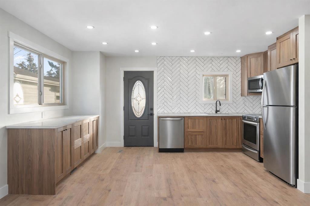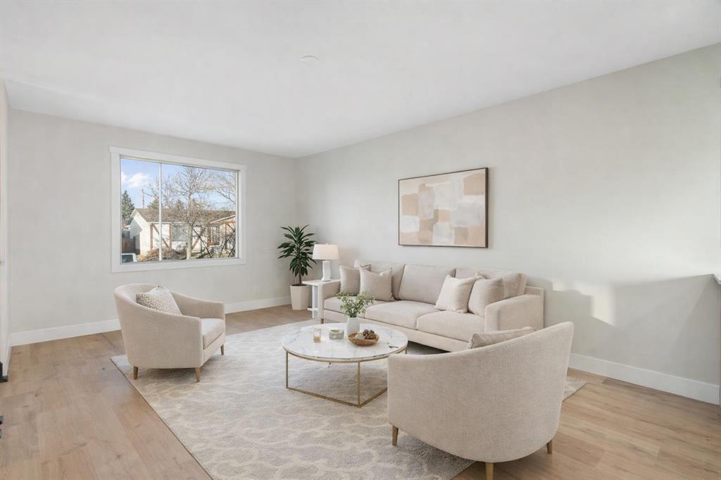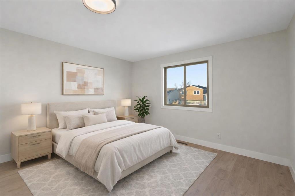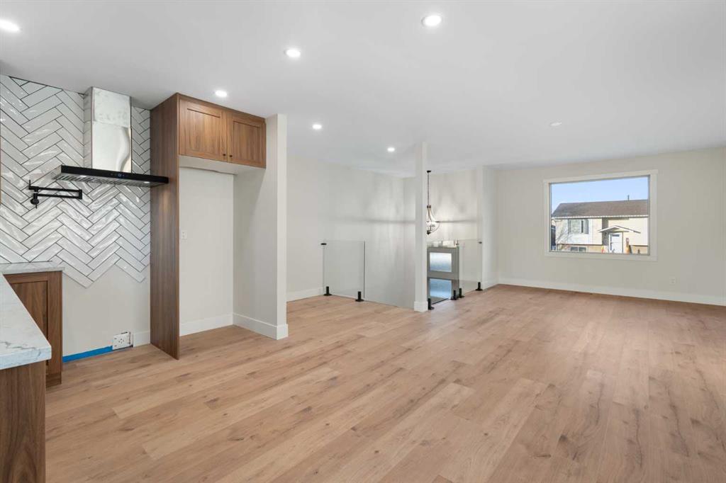45 Alpine Crescent is a fully renovated bi-level in the established Airdrie Meadows community, close to schools, shopping, parks, and urgent care. The main level offers an open-concept living room, dining area, and new kitchen with quartz countertops, full-height tiled backsplash, upgraded range hood, and stainless steel appliance package. Two bedrooms and an updated 4-piece bathroom complete the upper level. The fully developed basement includes a large family room with a gas fireplace, a third bedroom, a 3-piece bathroom, finished laundry, additional storage, and a sump pump for added peace of mind. Upgrades include a new electrical panel, updated windows, newer roof, new siding, updated furnace and hot water tank, high quality laminate flooring throughout (no carpet), upgraded lighting with pot lights, modern interior glass railing, open stair design, and new interior doors and trim. Quartz countertops extend into both bathrooms, and a new washer and dryer are included. The property also features a large, private backyard with new landscaping and mature trees, plus a 21.5’ x 29.2’ detached insulated garage with 220V wiring. Reach out today to book your private showing!