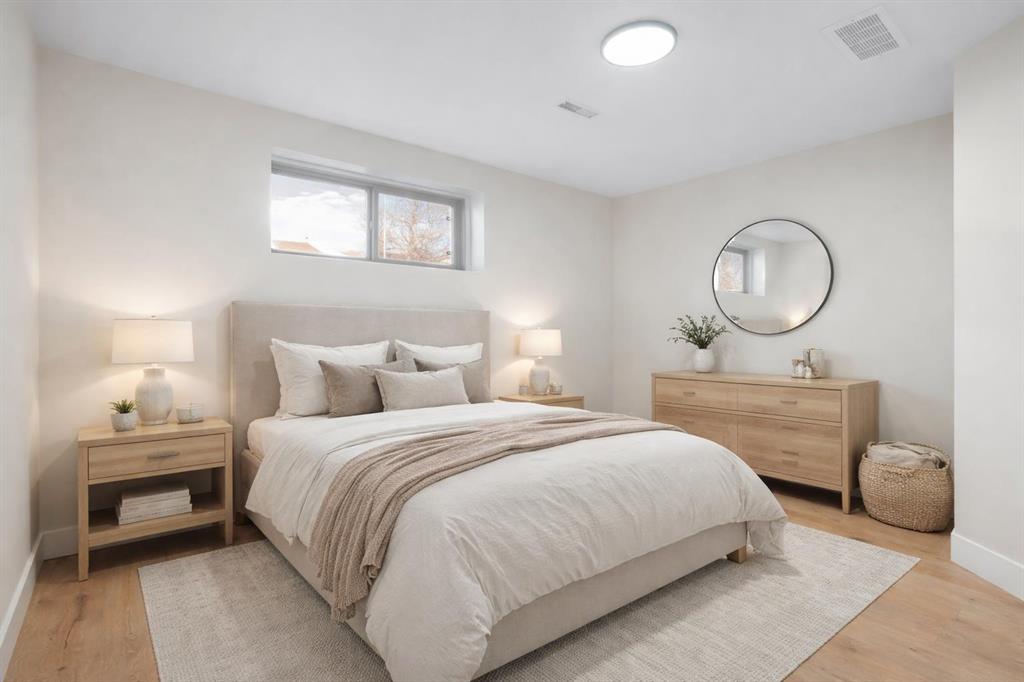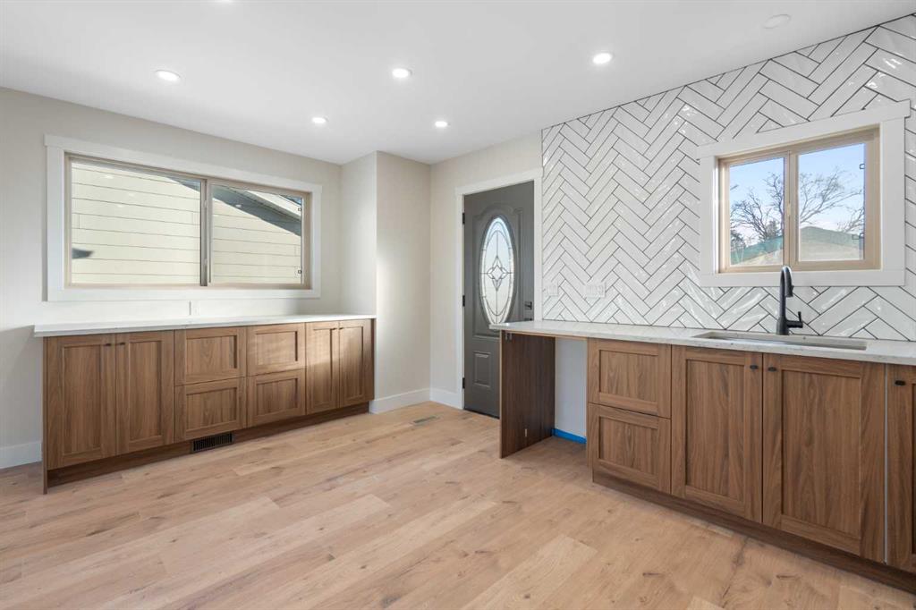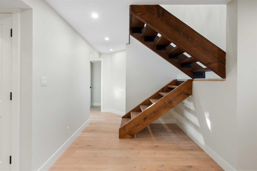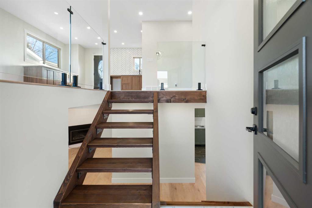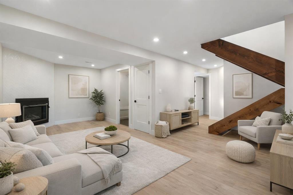 45 Alpine Crescent is a fully renovated bi-level in the established Airdrie Meadows community, close to schools, shopping, parks, and urgent care. The main level offers an open-concept living room, dining area, and new kitchen with quartz countertops, full-height tiled backsplash, upgraded range hood, and stainless steel appliance package. Two bedrooms and an updated 4-piece bathroom complete the upper level. The fully developed basement includes a large family room with a gas fireplace, a third bedroom, a 3-piece bathroom, finished laundry, additional storage, and a sump pump for added peace of mind. Upgrades include a new electrical panel, updated windows, newer roof, new siding, updated furnace and hot water tank, high quality laminate flooring throughout (no carpet), upgraded lighting with pot lights, modern interior glass railing, open stair design, and new interior doors and trim. Quartz countertops extend into both bathrooms, and a new washer and dryer are included. The property also features a large, private backyard with new landscaping and mature trees, plus a 21.5’ x 29.2’ detached insulated garage with 220V wiring. Reach out today to book your private showing!