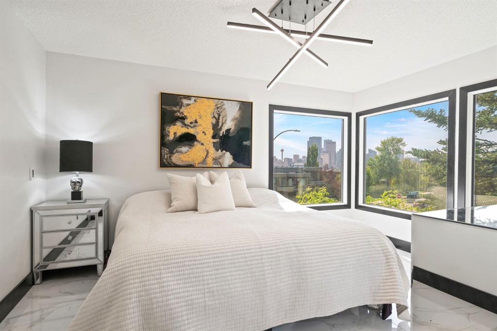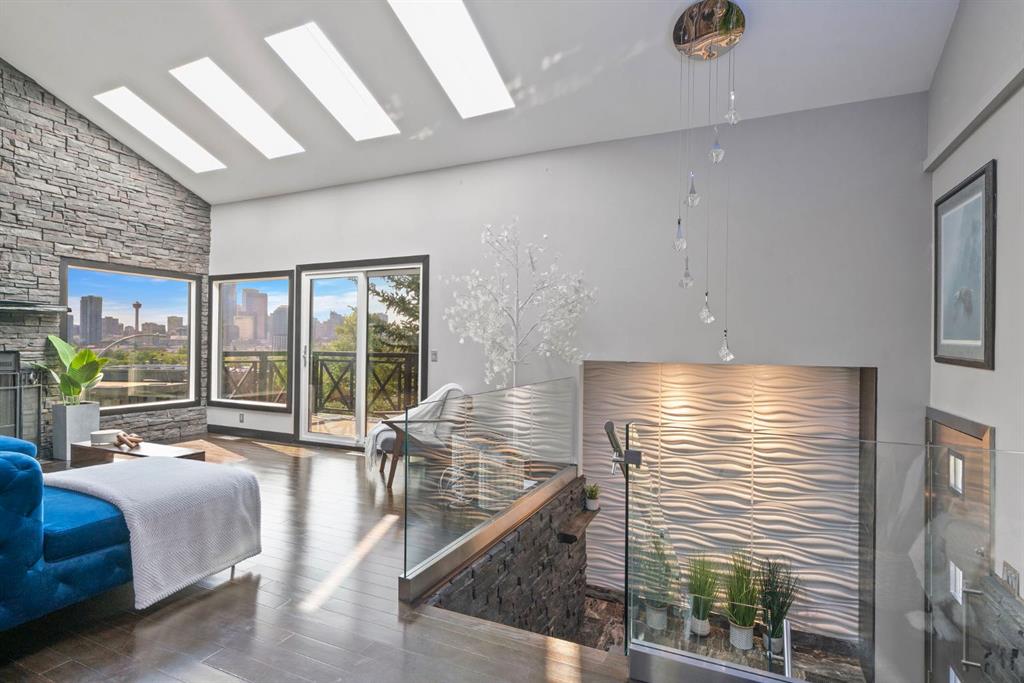 Unmatched Downtown VIEWS in PRIME Bridgeland location. Perched above city w/sweeping, unobstructed views of Calgary’s skyline - this ONE OF A KIND home is designed for those who love to LIVE & ENTERTAIN in style! Rarely does a property capture BOTH the vibrancy of downtown PLUS the quiet comfort of a private retreat. Over $220,000 invested by current owner. Unique split-level layout reimagined - to allow main living spaces & walls of windows to FRAME breathtaking skyline views! Imagine hosting friends in the open living room, stepping out onto the balcony as the city lights twinkle, enjoying Stampede fireworks or cozying up by the fireplace - as the skyline glows in the background?! EPIC sunsets!!! Dining area perfect for everyday meals or special occasions. Kitchen offers custom cabinetry, Viking gas range, coffered ceilings, granite & statement eating bar - transition directly outside to enjoy meals/relaxing on your gorgeous private wraparound deck! So peaceful at the rear of this home. Did I mention - the Hot tub stays?! Incredible spot to enjoy this PRIVATE oasis - literally in the heart of the city! This home offers a LIFESTYLE. Heated tile flooring in kitchen, primary bedroom/ensuite, main bathroom & laundry room - adds EXTRA comfort throughout. Three bedrooms located on lower levels. Private primary bedroom with 2 piece ensuite offers the same INCREDIBLE CITY VIEWS. Do you WORK from home? Perhaps, make this space your OFFICE! Imagine taking calls, being on ZOOM, booking meetings & reading emails - while looking at the skyline. Second bedroom on this level + 5 piece SPA Inspired bathroom. Head down a level to another bedroom (big windows) + ANOTHER Steam shower, toilet & sink located in dedicated laundry / mechanical / storage area - offers options for multi person living! Recent upgrades include triple-pane tinted windows, newer roof shingles with ice/water shield + new hot water tank installed in 2020—ensuring peace of mind. The oversized, HEATED garage (currently outfitted as a full gym) offers even more options - maybe create separate Airbnb in the back - Zoned RC-2. More office space needed? Showcase/work on vintage/exotic cars? Workshop? Art studio? Or just park car(s) here! Expansive driveway w/space for MULTIPLE vehicles - make this home as practical as it is impressive. Like to garden or plant - this one is for you! Perfect property for those that want a WOW factor home - without living in a high rise w/condo fees & rules! Mins to downtown, river pathways, Prince's Island Park, restaurants, amenities, entertainment, shopping, pathways/parks + 15 min drive to airport! Incredible fit for investors seeking luxury short-term rental opportunity, empty nesters ready to downsize from the suburbs to a unique, low-maintenance home or even families looking to live in one of Calgary’s most sought-after inner-city neighborhoods. This Bridgeland gem is a RARE find. Urban lifestyle, iconic views & endless ways to entertain—this is city living at its very best!
