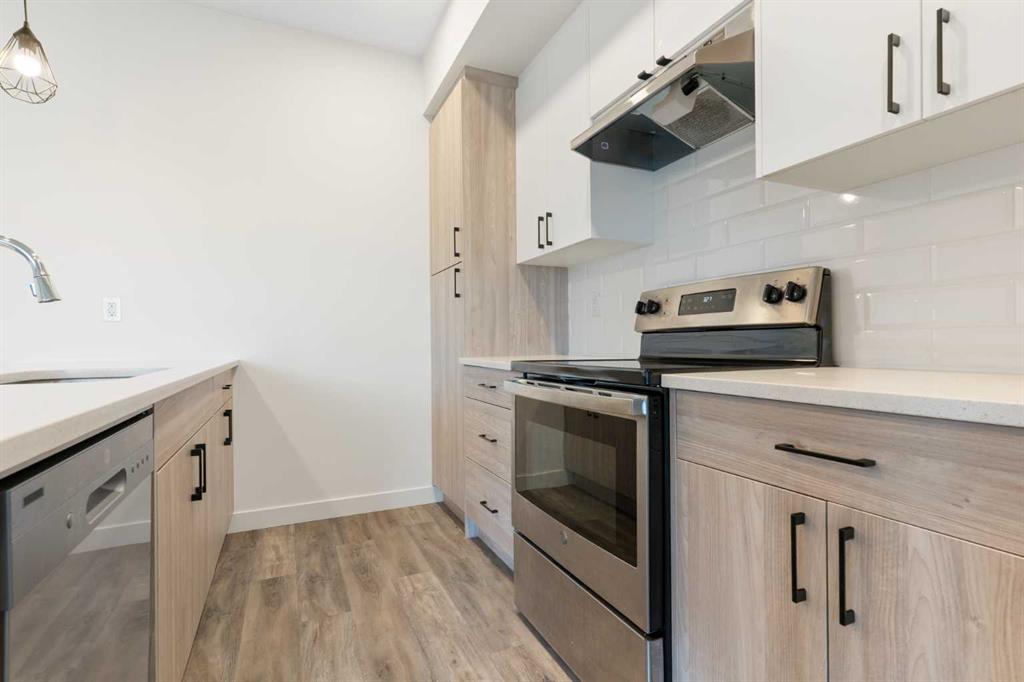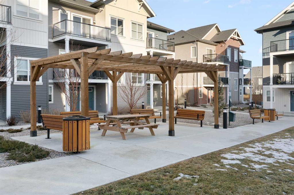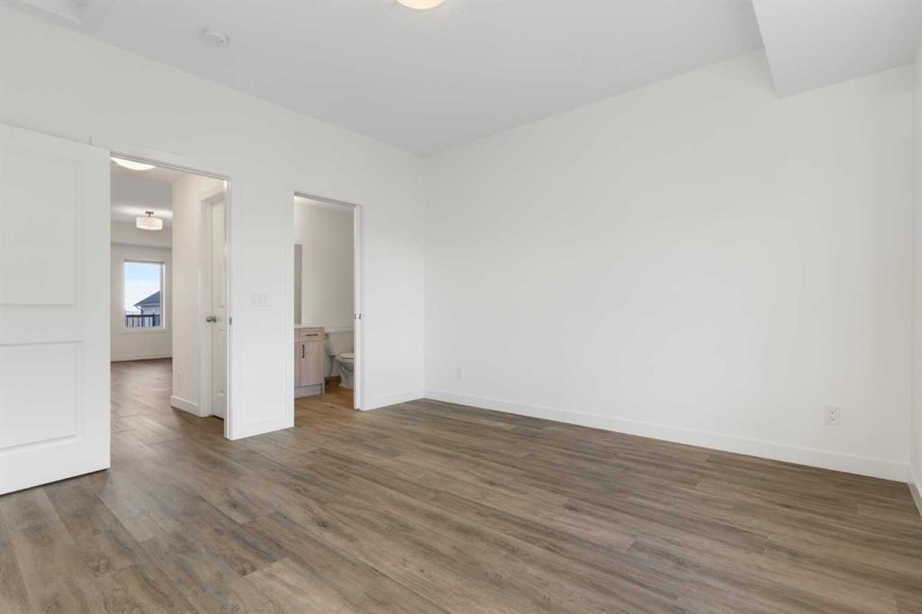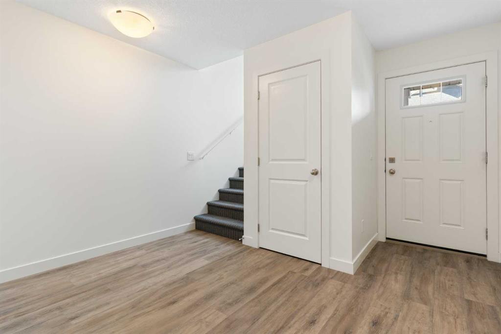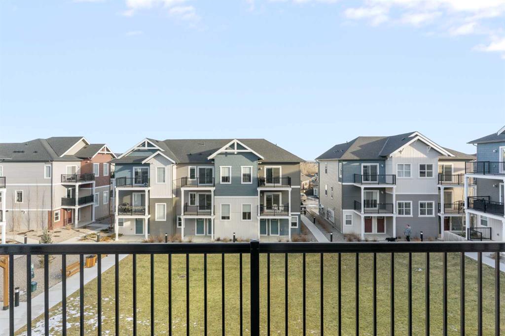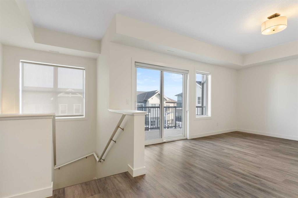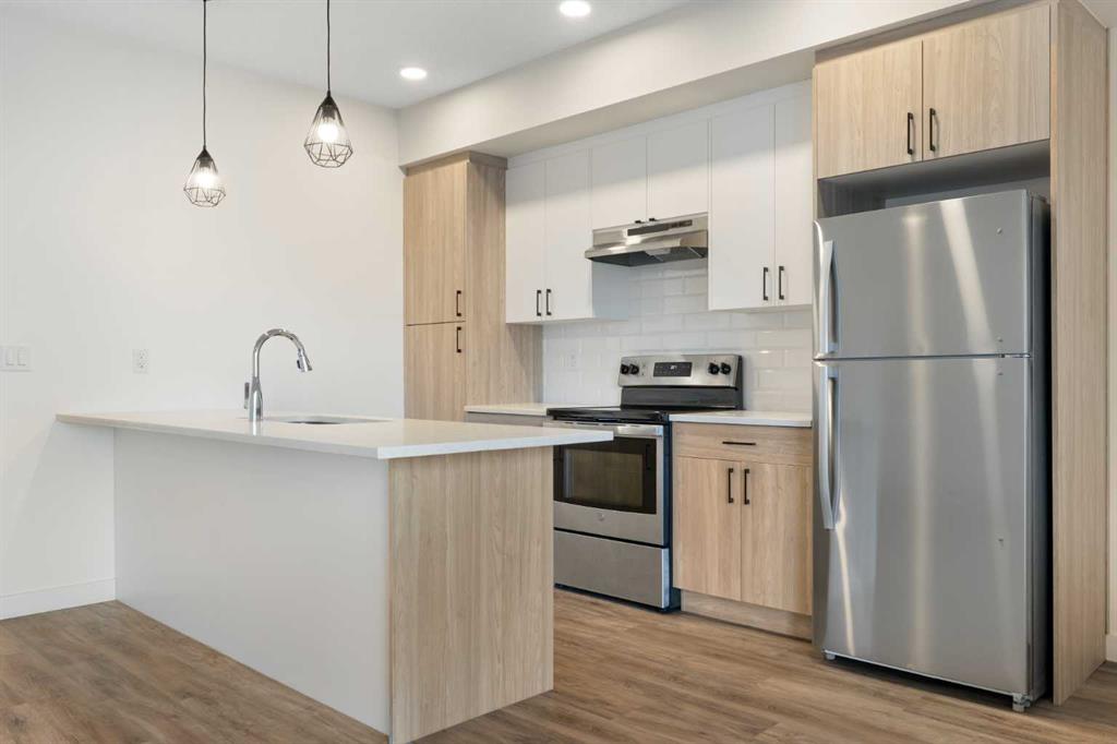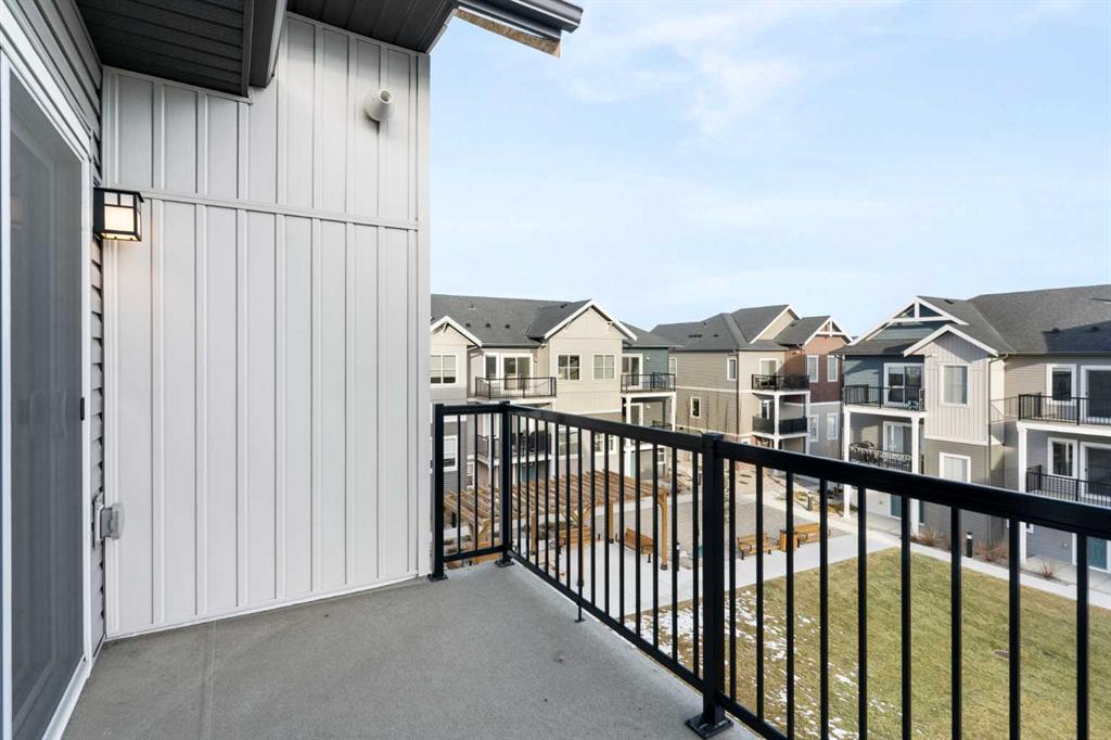Check out this stunning top-floor stacked townhome that offers the perfect blend of style and function. Ready for immediate occupancy; this 1 bedroom 1 bath unit features over 1200 sq ft of thoughtfully designed living space, with most of the layout conveniently situated on a single level. Step inside and up to the main floor and you will discover an open-concept living area with a full kitchen that's a home chef's dream. The kitchen boasts elegant quartz countertops, soft-close drawers, and stylish two-tone cabinets highlighted by pendant lighting. An adjacent, flexible space is perfect for a spacious dining area or a home office. This home has an oversized bedroom and a full 4pc bathroom that doubles as an ensuite with its second access. A spacious laundry room adds to the convenience. This unique floorplan is designed to feel like a modern apartment but with the added benefits of a main floor storage/flex area and direct access to an oversized, extended single car GARAGE. This home is perfectly situated to offer the best of both convenience and community. It's located right next to a future school site, with transit options directly at your doorstep for effortless commuting. Enjoy a short two-minute walk to Bow Valley High School, and a quick five-minute trip to the Spray Lakes Sports Centre for all your recreational needs. For bigger city amenities, you're only 20 minutes from South Calgary, and the mountains are within easy reach, with Canmore just a 40-minute drive away.