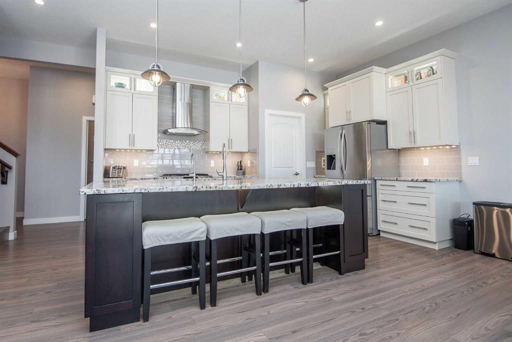 The perfect family home in the desirable Timberstone community! This immaculate 2-story walk-out features 4 bedrooms and 4 bathrooms, perfectly designed for modern living. The open-concept main level boasts 10-foot ceilings and a spacious layout, ideal for entertaining. The beautiful kitchen featured under/over and in-cabinet lighting, a large granite island, upgraded stainless steel appliances, including a gas stove, soft close cabinets, RO water tap, water supply line for espresso maker, and convenient walk-through pantry with adjustable shelving. Step out from the bright dining area onto the covered deck that offers stunning views of the park. The deck has aluminum railing, privacy screens, gas line for bbq or patio heaters, and stairs leading down to the fully fenced and landscaped yard and shed. Upstairs, the luxurious master suite awaits, showcasing a spa-like ensuite with air tub, 4ft shower, double sinks with granite countertops, water closet, and a large organized walk-in closet. You'll also find two spacious bedrooms, an upper floor laundry, and a generous bonus room with infloor heating providing extra space for multiple uses and cozy family gatherings. The bright walk-out basement features large windows and direct access to a concrete patio in the backyard, creating another great entertaining space. It includes a sizeable family room, an additional bedroom, and a full bathroom with a custom walk-in shower. Upgraded plumbing and electrical work throughout the home includes a built-in reverse osmosis system, water softener, and energy-efficient boiler for in-floor heating in the basement, garage, and bonus room. The heated double-attached garage (24’x24’) is equipped with hot and cold water, floor drains, and high ceilings for extra storage. With allergy-friendly laminate and tile flooring throughout (no carpet), this home is not just beautiful but practical too. Conveniently located within walking distance to schools and close to Timberstone Village and Clearview Market, this is the perfect place for your family to grow. Make 68 Thompson Crescent your forever home!