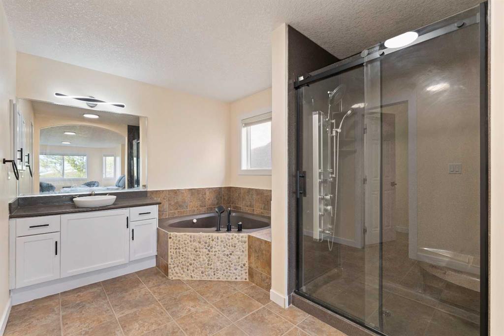 Welcome to this stunning home with top to down Rich UPDATES, nestled in the heart of NW community of Sherwood-a sought-after community known for its luxurious estate homes and family-friendly atmosphere. This home backing on GREENSPACE boasts of an amazing 4074 square feet of living space with a total of 8 bedrooms and 3.5 bathrooms perfect for a large or growing family! And has the Basement developed with City Permits with a SEPARATE ENTRANCE which can potentially be converted into a Suite subject to approvals and permitting by the City. The basement feature 3 bedrooms, bathroom and a wet bar/kitchenette offering possible separate living quarters for family members or potentially use it for Airbnb. The home features a modern & functional floor plan complimented by abundance of natural light throughout adding to the beauty of the design. You will love the UPDATES including, Rich Hardwood floors & Luxury Vinyl flooring, high gloss porcelain tiles, Updated Kitchen, Updated baths and vanities with new Quartz counter tops, new paint, New LED Lighting and Chandeliers, updated baths, NEW ROOF and more.. Right from the door, you will be greeted by a grand entry way with open to below and beautiful chandelier adorning the space. Further down the wide corridor is a main floor bedroom or flex room/office. You will love the huge Living Room with large windows offering any family plenty of room to relax and entertain. To your right is FORMAL DINING room which can also be converted to office space. The modern Spacious KITCHEN of boasts of NEW Beautiful Quartz counter tops with a large eating bar, New Sink and faucets, Modern high gloss cabinetry and beautiful New Backsplash. Through the patio doors to the large deck perfect for summer Entertaining and the HUGE Backyard, well designed and landscaped with a back gate leading into the greenspace and relaxing park. Up the wide glass railing staircase to the second floor where you find a Large BONUS ROOM; 4 bedrooms with the Massive Primary bedroom with its own 5 PIECE ENSUITE featuring jet shower system, corner soaker tub with jacuzzi tubs and a walk-in closet. All the other bedrooms are good size and two have walk in closets. The Large basement completed with permits features a SEPARATE ENTRANCE, 3 Bedrooms, Kitchen/wet bar with counter tops, living area and a luxurious bathroom. To finish up is an Oversized Double Attached Garage for the comfort of warm vehicles. This quiet community offers great access to main roadways and is surrounded by serene walking & biking trails, parks and shopping. Only within a couple minutes walk to Elementary and Middle School. A Great Place to call Home!! Check out our 3D VIRTUAL TOUR to ease your decision making process- Be sure to navigate on the floor plan on the tour to view all the 3 floors