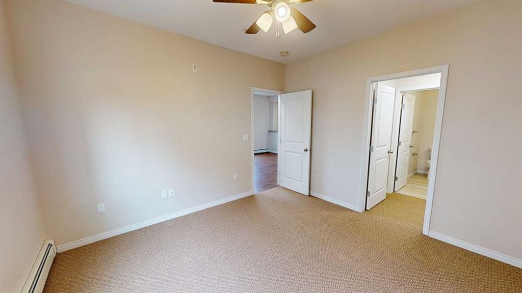 2 bed 2 bath unit in Toremide Apartments! Large living room with access to the attached patio. Primary bedroom has a walkthrough closet and 3 piece ensuite bathroom. Second bathroom is a 4 piece. Both bedrooms have ceiling fans. Stainless appliances including dishwasher. In suite laundry and lots of storage. Well soundproofed building, close to downtown and many amenities. Regular security patrols Powered parking at $75/mo, dependent on availability. Heat and water included, tenant pays electricity. Cat friendly with $50/mo pet fee. Application required prior to viewing. Pictures and 3D of similar unit.