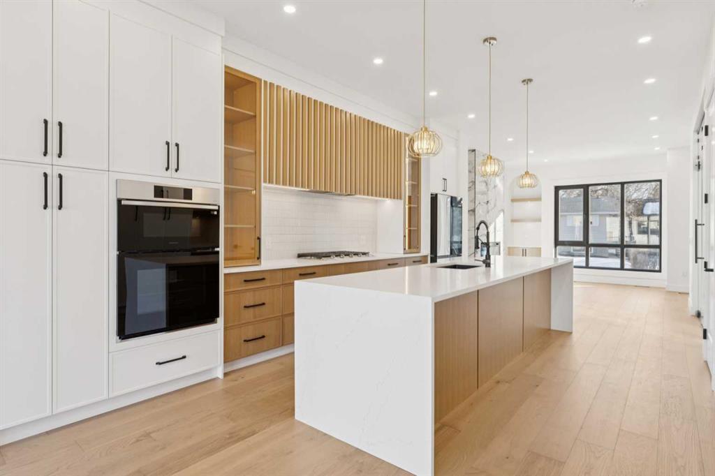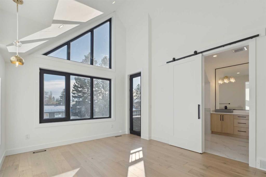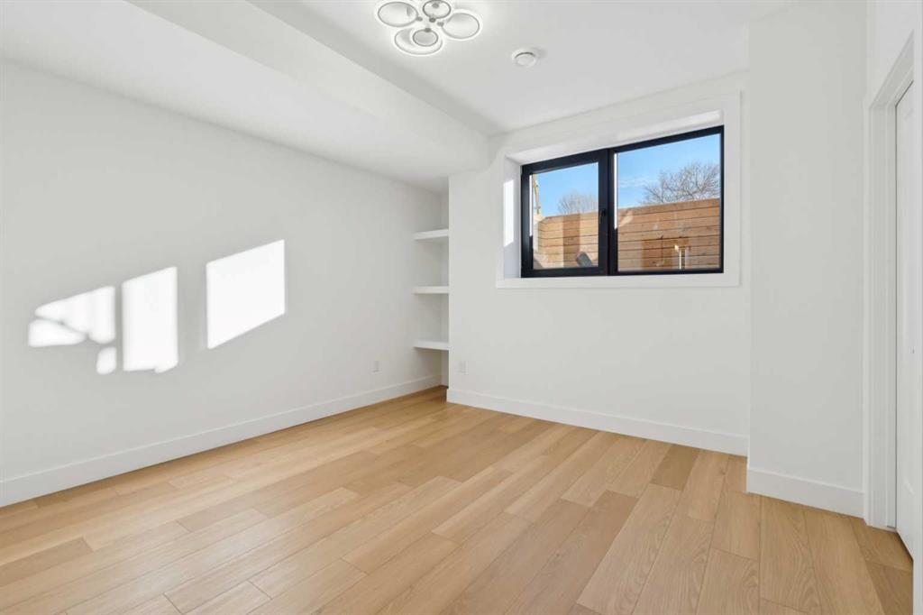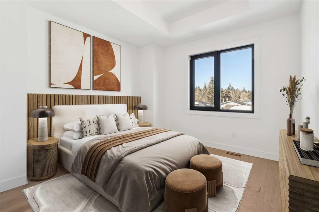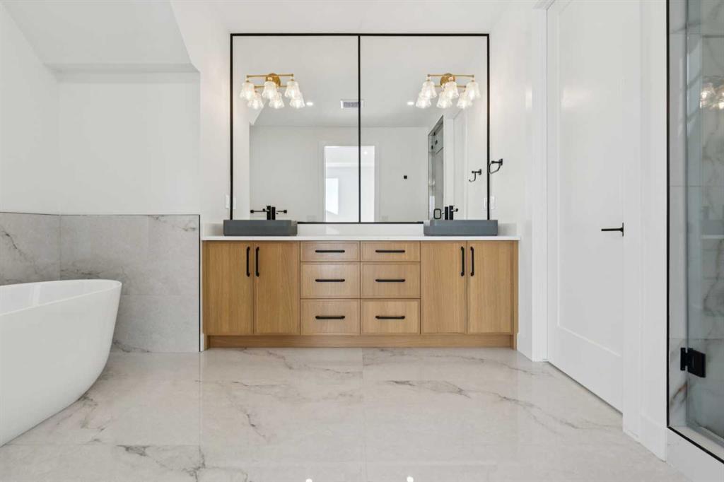Stunning Semi-Detached Infill with Legal Suite. BRAND NEW, custom-built semi-detached infill in the desirable community of Bonavista downs offers the perfect blend of luxury living and practicality. With over 3180 sqft. of elegant living space including an extended 3-bedroom legal basement suite, this home provides the flexibility of multi-generational living or a fantastic mortgage helper. The main level is designed for both style and function, featuring 10-ft ceilings, a bright open-concept layout, and oversized windows that fill the space with natural light. The kitchen is well appointed, with ceiling-height cabinetry, a massive island with waterfall quartz counters, and premium stainless steel appliances. The living room is bright and welcoming, with modern finishes and built-in cabinetry that offers plenty of functional storage. Dining room with double sliding doors overlooking the spacious backyard. Upstairs, you’ll find a spacious primary retreat with soaring 16ft vaulted ceilings, walk-in closet with built-ins, and a spa-inspired ensuite featuring heated floors, freestanding soaker tub, and a fully tiled glass shower with steam. Two additional bedrooms with 10ft tray ceiling, a 4-piece main bath, and an upper laundry room add everyday convenience. The professionally developed legal suite has its own private side entrance and offers over 1121 sqft. of developed living space. Highlights include 3 large bedrooms, 2 full bathrooms, in-suite laundry, a generous living/dining area, and a full kitchen with quartz counters, ceiling-height cabinets, and stainless-steel appliances. Comfort is maximized with in-floor heating (roughed in) and 4” rigid insulation beneath the slab for year-round warmth. Set on a generous 128-ft deep lot, this home offers plenty of outdoor space with a finished concrete patio, and a paved back alley. Located in one of Calgary’s most established and desirable neighbourhoods—renowned for its safety, quiet streets, excellent schools, and close proximity to shopping, restaurants, parks, and transit. This is a rare opportunity to own a thoughtfully designed infill in one of Calgary’s most coveted areas—complete with a full legal suite that adds value and flexibility. Book your private showing today and experience everything this incredible home has to offer.