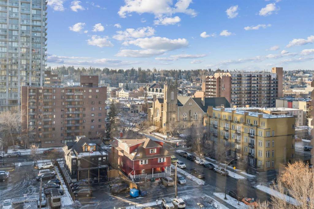 *MAKE SURE TO CHECK OUT THE 3D VIRTUAL TOUR FOR A FULL WALKTHROUGH* South-facing 2-bedroom condo on the 11th floor of Dorchester Square in the Beltline. Concrete high-rise offering 876 sq. ft. with a bright, open living and dining area, galley-style kitchen, and a large in-suite storage room that works well as pantry space or for extra gear. The south-facing balcony brings in strong natural light and looks out over the neighbourhood rather than directly into another tower. Both bedrooms are well-proportioned with proper closets and share a full 4-piece bathroom. The unit features updated vinyl flooring in the living room, dining area, kitchen, and foyer, along with refreshed paint, updated light fixtures, and a newer dishwasher. Parking is a titled underground stall, providing year-round convenience. Dorchester Square is a full-amenity building with a fitness room and racquet court on the main floor, along with a sauna, games and party rooms, bike storage, common laundry facilities with an adjoining outdoor terrace, and a landscaped courtyard with gazebo. A practical, low-maintenance option for inner-city living. Located in the heart of the Beltline, one of Calgary’s most walkable inner-city communities, you are steps from groceries, coffee shops, restaurants, fitness studios, and transit. A short walk connects you to 17th Avenue, Barb Scott Park, Lougheed House, and downtown offices.