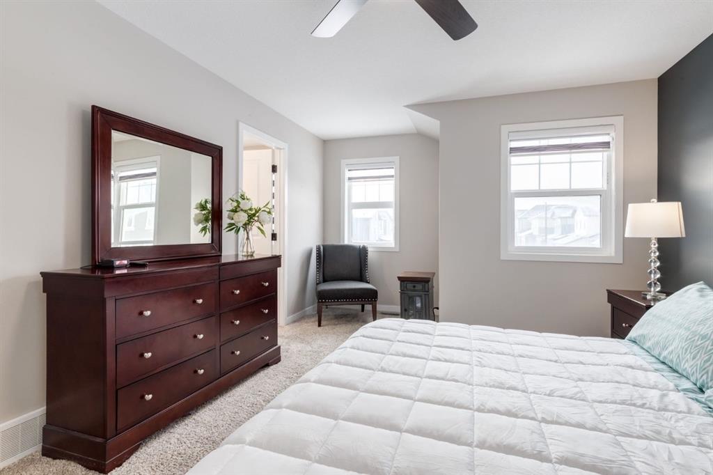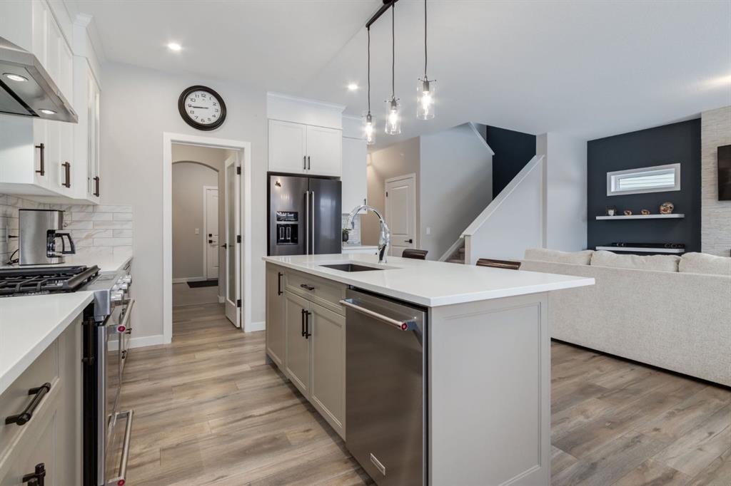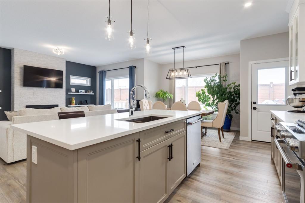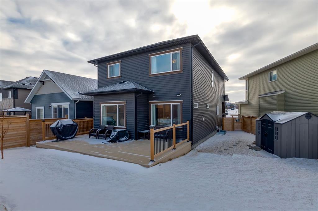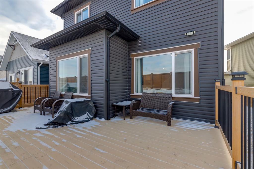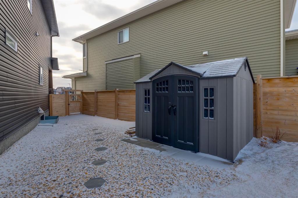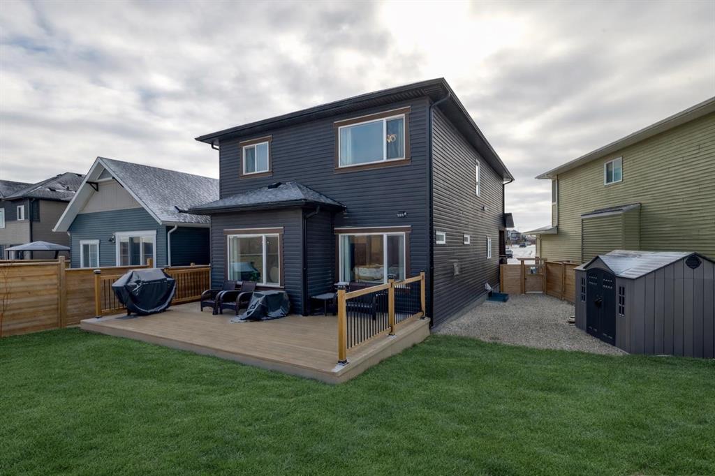 OPEN HOUSE SUNDAY 2-4! Welcome to Chinook Gate, where luxury, comfort, and thoughtful design come together in this exceptional, move-in ready two storey home. Situated on a rare, oversized pie shaped lot in one of Airdrie’s most desirable newer communities. Immaculately maintained and in pristine, like new condition, this home includes professionally completed landscaping and a spacious interior floor plan, allowing you to simply move in and enjoy. Step inside to a bright, open concept plan filled with natural light and designed for modern family living. The main floor features a private home office with elegant double French doors, perfect for remote work or quiet study. At the heart of the home is the stunning chef’s kitchen, showcasing full-height cabinetry with glass inserts and accent lighting, sleek quartz countertops, upgraded plumbing fixtures, and premium stainless steel appliances. You'll love the spacious walk-through pantry that connects seamlessly to the mudroom, offering exceptional storage and everyday convenience. The adjoining great room is warm and inviting, highlighted by a full-height tile fireplace, floating shelves, and additional upper windows that flood the main floor living space with light. A large picture window frames views of the beautifully landscaped backyard, creating a perfect connection between indoor and outdoor living. Step outside from the kitchen onto the expansive back deck, ideal for entertaining, family barbecues, or relaxing evenings. The backyard is truly a standout feature, fully landscaped with a rock retaining wall, stained wood fencing for privacy, mature trees, a huge side yard (easily add a side entrance!) and a large garden shed, all set within a rare pie-shaped lot that offers space and privacy. Upstairs, you’ll find three spacious bedrooms, a generous and versatile bonus room, and a conveniently located laundry room. The primary suite is a private retreat and features a quiet sitting area by the window. This room boasts a spa inspired ensuite with quartz countertops, double vanity, soaker tub, tile and glass shower, elegant flooring, a large walk-in closet. The undeveloped basement offers endless possibilities, complete with two large windows and roughed-in plumbing, ready for your personal vision. Additional highlights in this home also include central air conditioning, a home security system, and an unbeatable location with quick access to 24th Street and Yankee Valley Boulevard. The home is also within walking distance to Chinook Winds Park, scenic pathways, schools, and a wide range of amenities. This is a stunning move-in ready home located on a premium lot, which is a rare opportunity in Chinook Gate. Don’t miss your chance to make it yours.