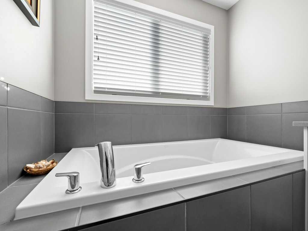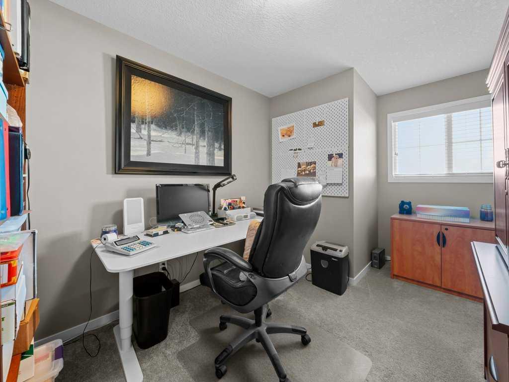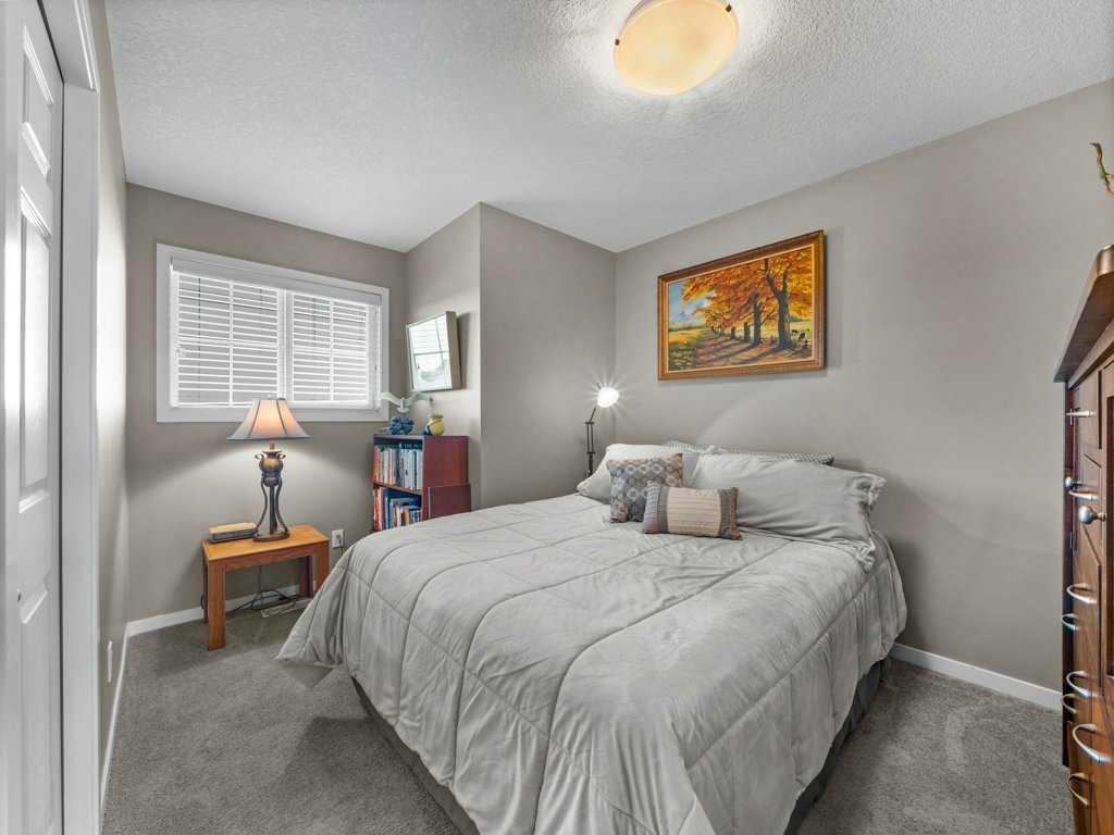 **OPEN HOUSE SATURDAY, JAN 31st 1:00-4:00 PM** Come and see this charming, fully finished 2-storey with a covered front porch, perfectly situated across from Amery Park in the quiet, family-friendly town of Crossfield. Enjoy front-row access to the playground, outdoor rink (winter hockey / summer basketball), fire pit, community gardens and nearby storm-water ponds with scenic walking and cycling paths that lead into town. Inside, the open-concept main floor has a clean, contemporary palette and is bright and inviting, featuring high ceilings, durable laminate flooring, and a cozy gas fireplace anchoring the living room. The white island kitchen offers quartz countertops and stainless appliances—ideal for everyday living and entertaining alike. A convenient laundry/mudroom and 2-piece powder room complete the main level. Upstairs, retreat to the spacious primary bedroom, where large south-facing windows flood the room with natural light. The spa-inspired ensuite impresses with a dual-sink vanity, deep soaker tub, walk-in shower and private water closet. Two additional nicely-sized bedrooms, a 4-piece bath, and a large linen closet round out the upper floor. The fully finished basement adds exceptional versatility with a large recreation/games/media room, an additional bedroom, abundant storage and a bathroom—perfect for guests, teens, or a home office setup. Step outside into a sunny, fully-fenced private backyard designed for easy entertaining, featuring a deck and thoughtful landscaping. The garage is drywalled and insulated, wired for 220V (plug is behind the deep freeze), and is ready for electric or radiant heat—plus it’s deep enough to accommodate a truck. There’s also room to park a vehicle or small RV beside the garage. The high-efficiency furnace and 50-gallon hot water tank were both professionally serviced in January 2026, furnace, and carpets ducts professionally cleaned property pre-inspected. This well maintained, move-in ready home offers comfort, functionality, and an unbeatable park-side location—perfect for families, outdoor enthusiasts, or anyone seeking small-town living with modern conveniences. Check out the **virtual tour** and come see experience it with your favourite realtor.