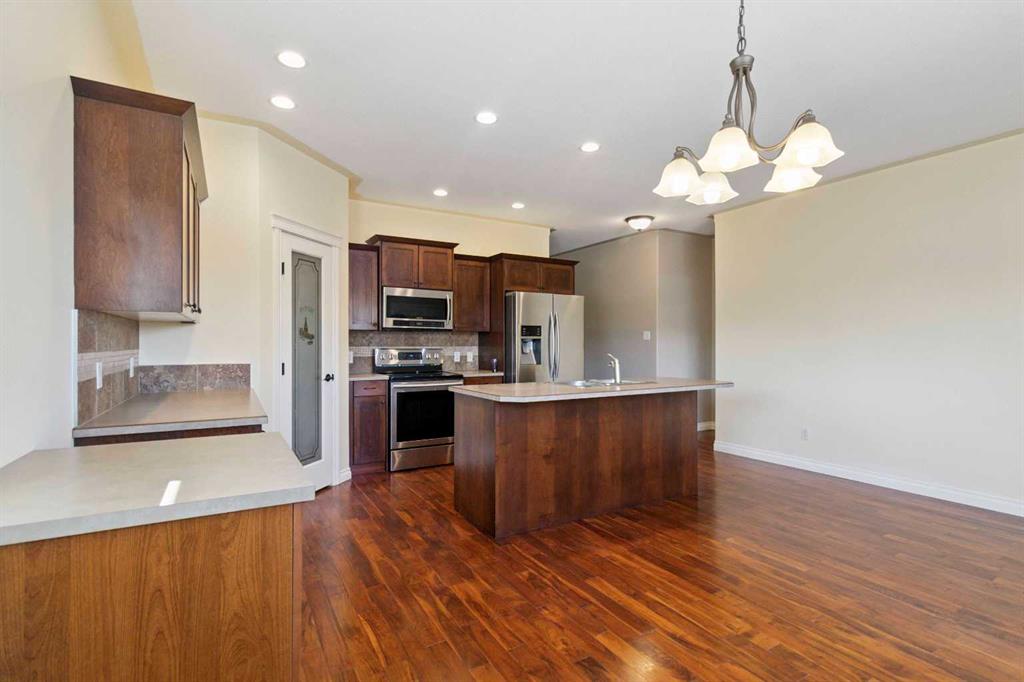 BUNGALOW WITH A WHOPPING 3100+ SQ FT OF LIVING SPACE, 6 BEDROOMS, 4 FULL BATHROOMS, IN-FLOOR HEAT, AND UPDATES THAT INCLUDE SHINGLES, FURNACE, BOILER SYSTEM, PLUS, DETACHED DOUBLE HEATED GARAGE ALL FACING THE GREENBELT AND BIRCHWOOD TRAILS. This is a rare find that shines with pride of ownership inside and out. Step inside this well-appointed home where you are greeted by gleaming hardwood floors throughout the main living areas, which include a front great room with gas fireplace that leads you to your bright kitchen with large island and eat-up breakfast bar, corner pantry, stainless appliances, and tiled backsplash. The kitchen overlooks the oversized dining area surrounded by a bank of windows. Plus, you have a garden door that leads to your rear deck. The main level offers 9ft ceilings throughout, plus 3 generously sized bedrooms. The primary bedroom offers a 5 pc ensuite with double sinks, heated tiled floors, and a large walk-in closet. This level is complete with a separate laundry room with cabinets and an additional 4 pc bathroom with heated floors. The lower level offers a separate entrance plus space the ability to have a mortgager helper it has a kitchen area or could be a wet bar, and there is additional laundry hook up downstairs. This massive living space offers the continued 9ft ceilings, in-floor heat. This level offers a family room and games room, 3 additional bedrooms, and 2 full bathrooms, even the addition of a sauna. On the exterior of the home, you have beautiful curb appeal, a double detached heated garage with in-floor heat. Plus, you have an additional parking stall beside the garage, which could also be used for RV parking. This home is perfectly located in Eagle Ridge, across from the greenbelt and Birchwood trails, in walking distance to two elementary schools, Eagle Ridge Commons Plaza, and quick access to site and city bus stops. This home is move-in ready and ready for immediate occupancy. Professional cleaning of the home and carpets has been completed. Call today for your personal tour.