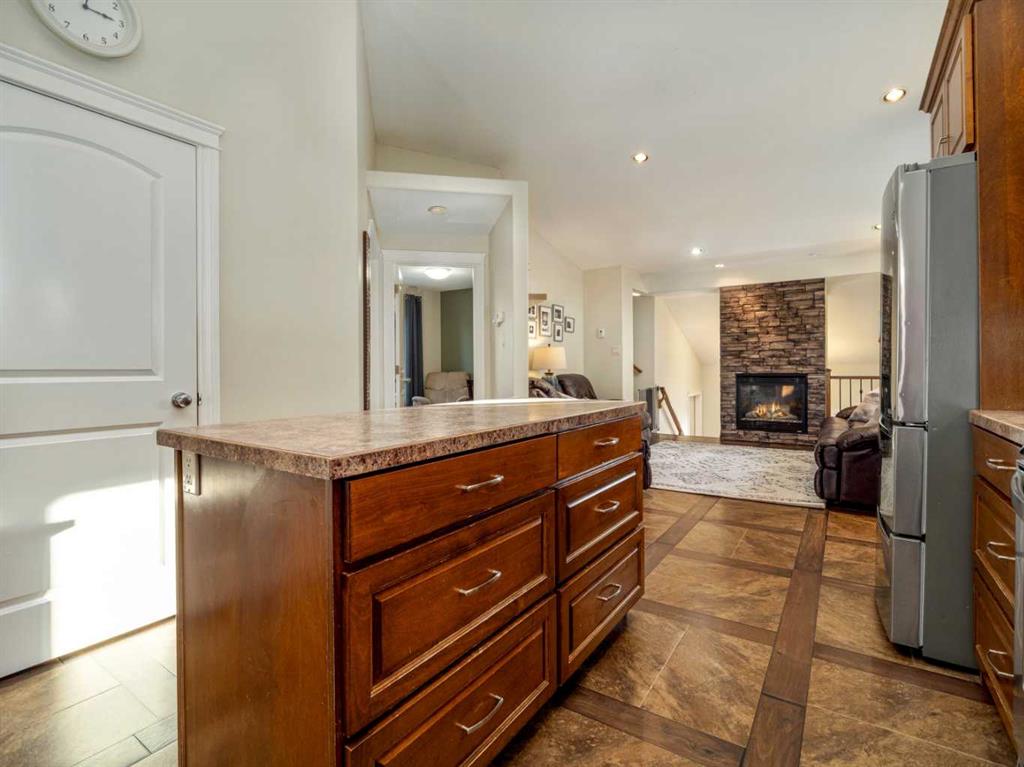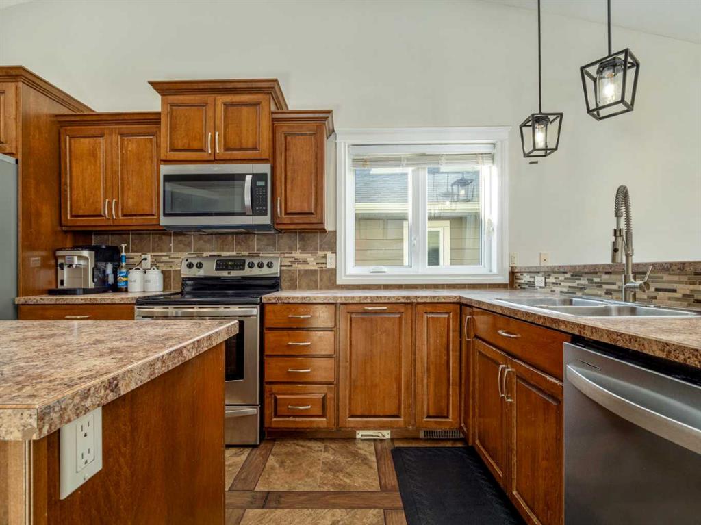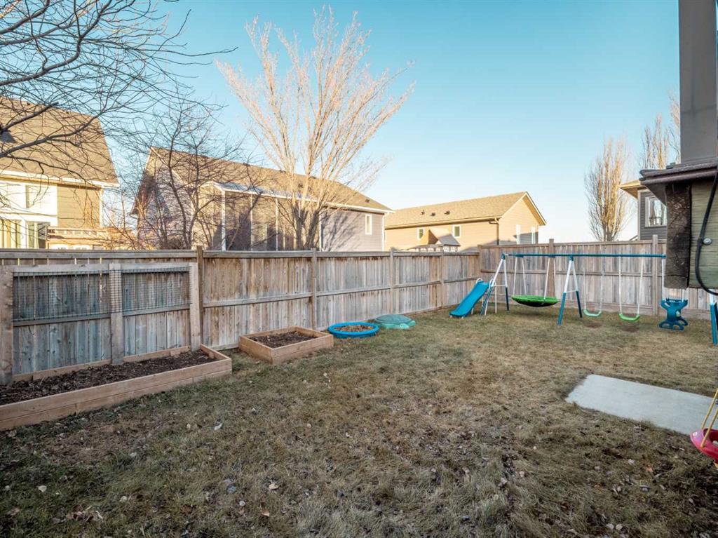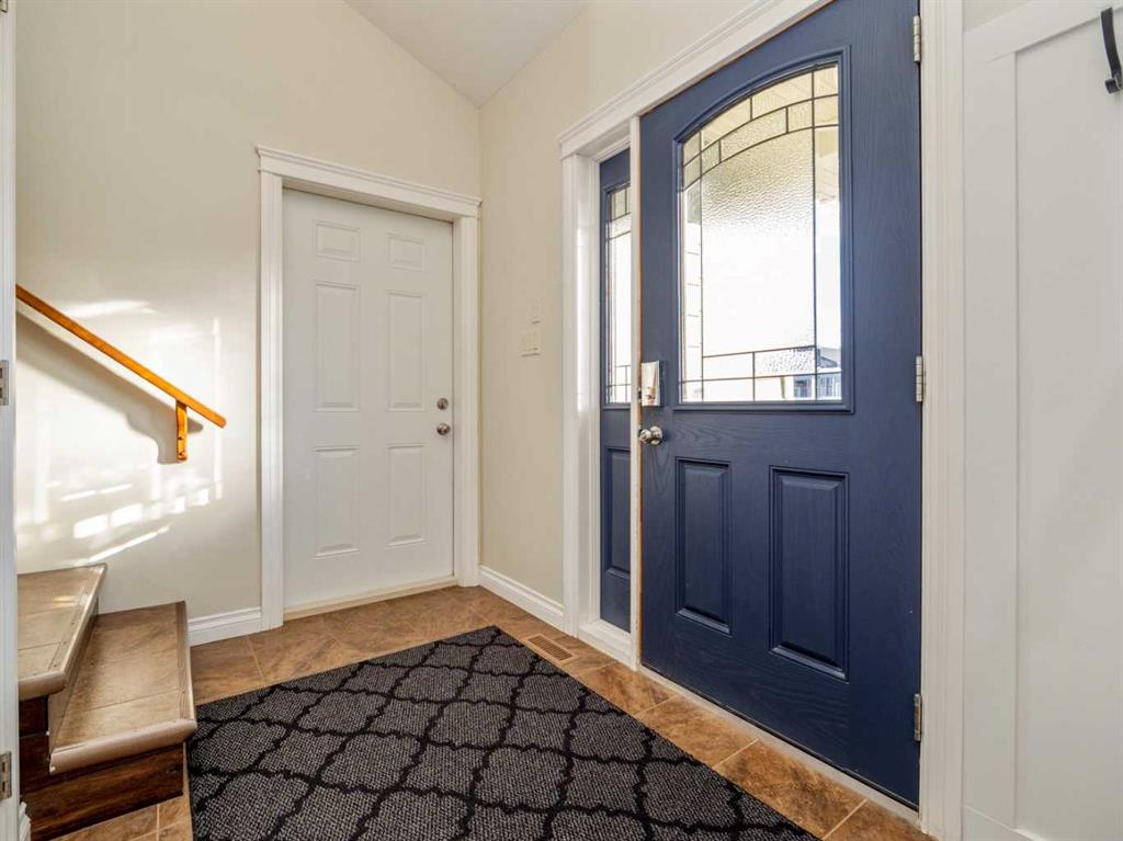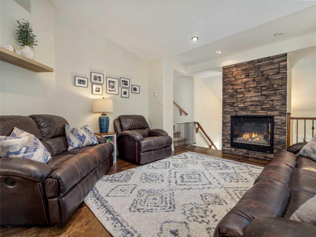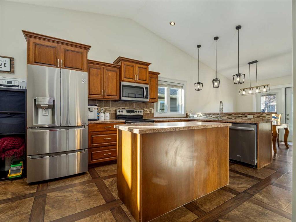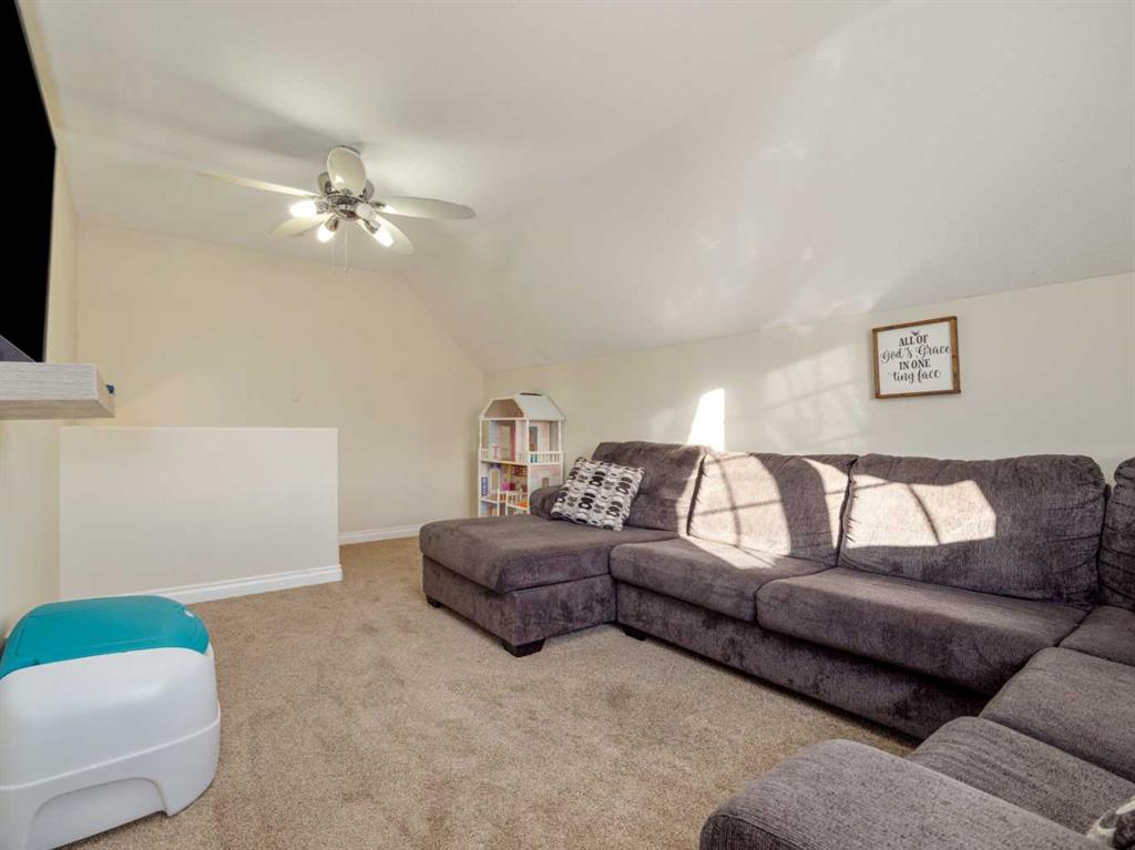Fantastic modified bi-level family home in Nobleford with 4 bedrooms, 3 bathrooms, and 3 big living areas!...Welcoming entry open to above! Main floor has vaulted ceilings. Living room has gas fireplace with beautiful stone surround. Kitchen features stainless steel appliances, kitchen island, pantry, and raised breakfast bar in dining area. Dining room features garden doors to composite deck out back. Main floor also has 2 bedrooms including primary with 3 piece ensuite featuring a walk-in shower. There is also another full 4 piece bathroom on this level with tub/shower combo. Upper level houses a large bonus room that is perfect for a toy room, office, gym, or sitting room. Basement is fully developed with large family room(a portion of which is currently being used as a hair salon), 2 more bedrooms, another bathroom with stand-up shower, and furnace room with laundry. Yard is fenced and landscaped and even has a play set! Double HEATED attached garage for your vehicles! Current owners mention they have painted in 2024, bought a new microwave and dishwasher in 2024, a new washer in 2025, and the roof shingles are only 3 years old! They love the park, playground, spray park, skate park, ice rink, curling rink that Nobleford has to offer! There is even a chinese restaurant and a pizza place! If you enjoy small town living with some of the lowest property taxes in the province, this home just might be for you!