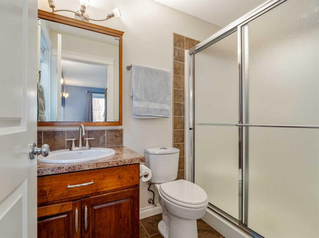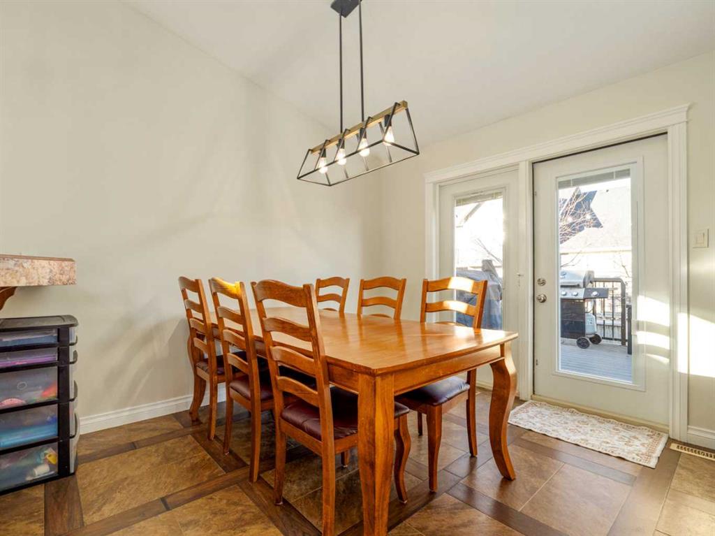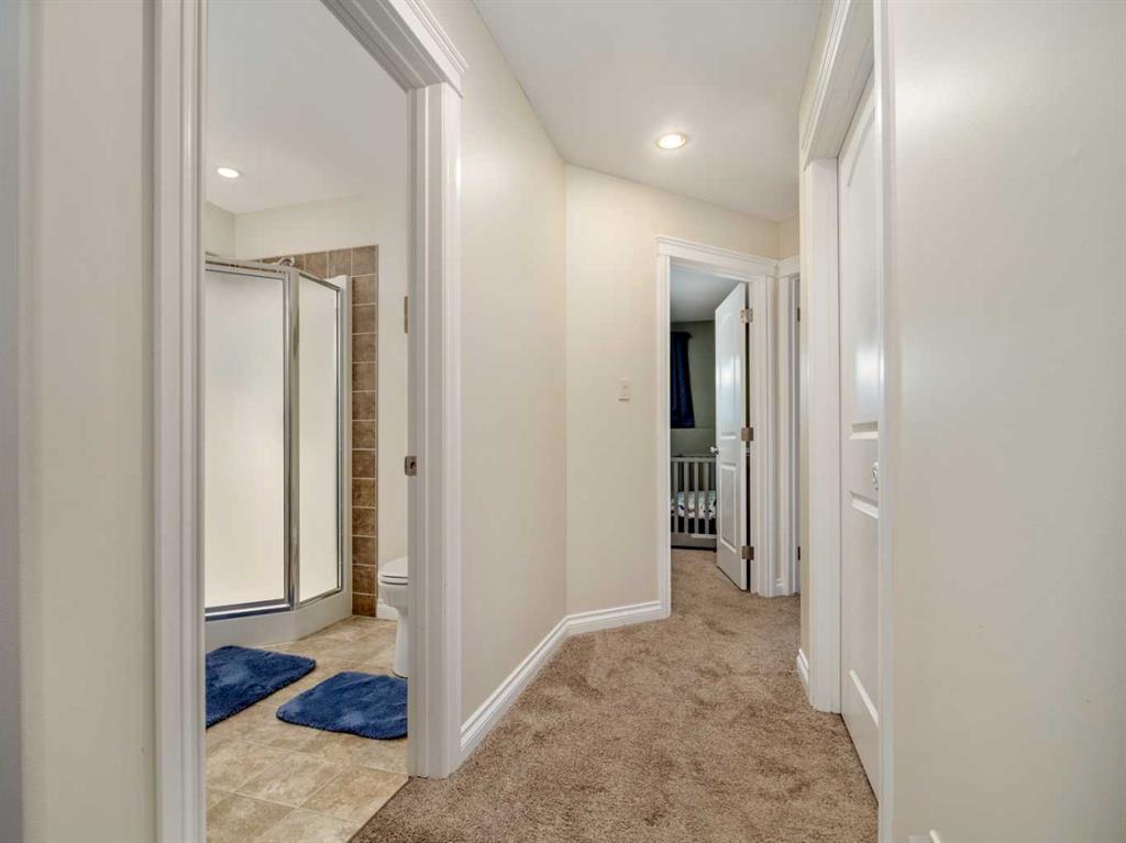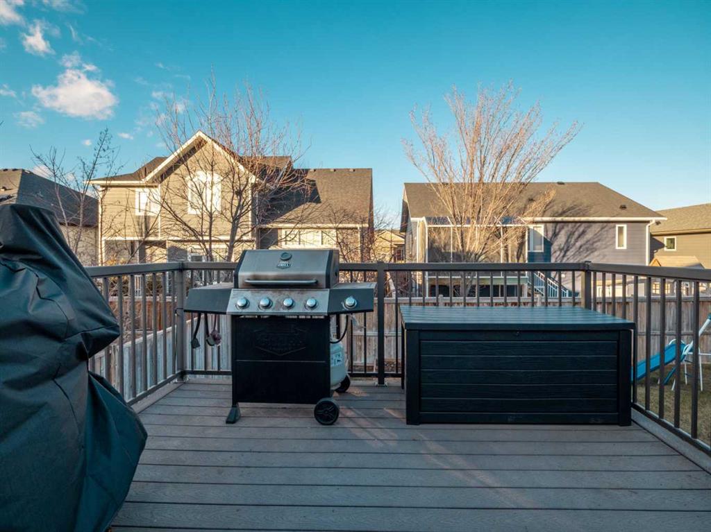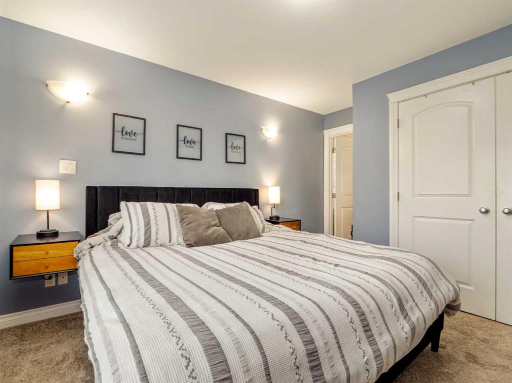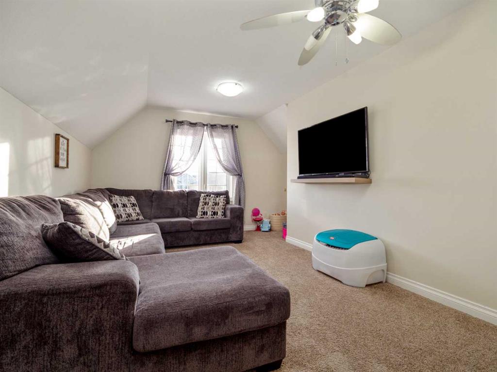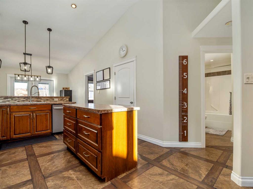 Fantastic modified bi-level family home in Nobleford with 4 bedrooms, 3 bathrooms, and 3 big living areas!...Welcoming entry open to above! Main floor has vaulted ceilings. Living room has gas fireplace with beautiful stone surround. Kitchen features stainless steel appliances, kitchen island, pantry, and raised breakfast bar in dining area. Dining room features garden doors to composite deck out back. Main floor also has 2 bedrooms including primary with 3 piece ensuite featuring a walk-in shower. There is also another full 4 piece bathroom on this level with tub/shower combo. Upper level houses a large bonus room that is perfect for a toy room, office, gym, or sitting room. Basement is fully developed with large family room(a portion of which is currently being used as a hair salon), 2 more bedrooms, another bathroom with stand-up shower, and furnace room with laundry. Yard is fenced and landscaped and even has a play set! Double HEATED attached garage for your vehicles! Current owners mention they have painted in 2024, bought a new microwave and dishwasher in 2024, a new washer in 2025, and the roof shingles are only 3 years old! They love the park, playground, spray park, skate park, ice rink, curling rink that Nobleford has to offer! There is even a chinese restaurant and a pizza place! If you enjoy small town living with some of the lowest property taxes in the province, this home just might be for you!