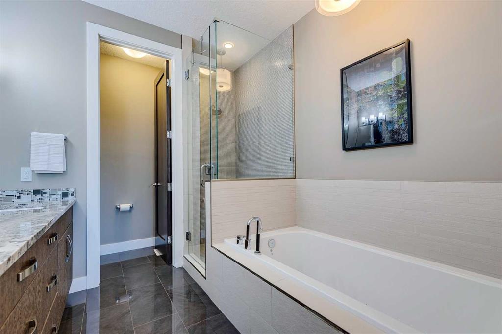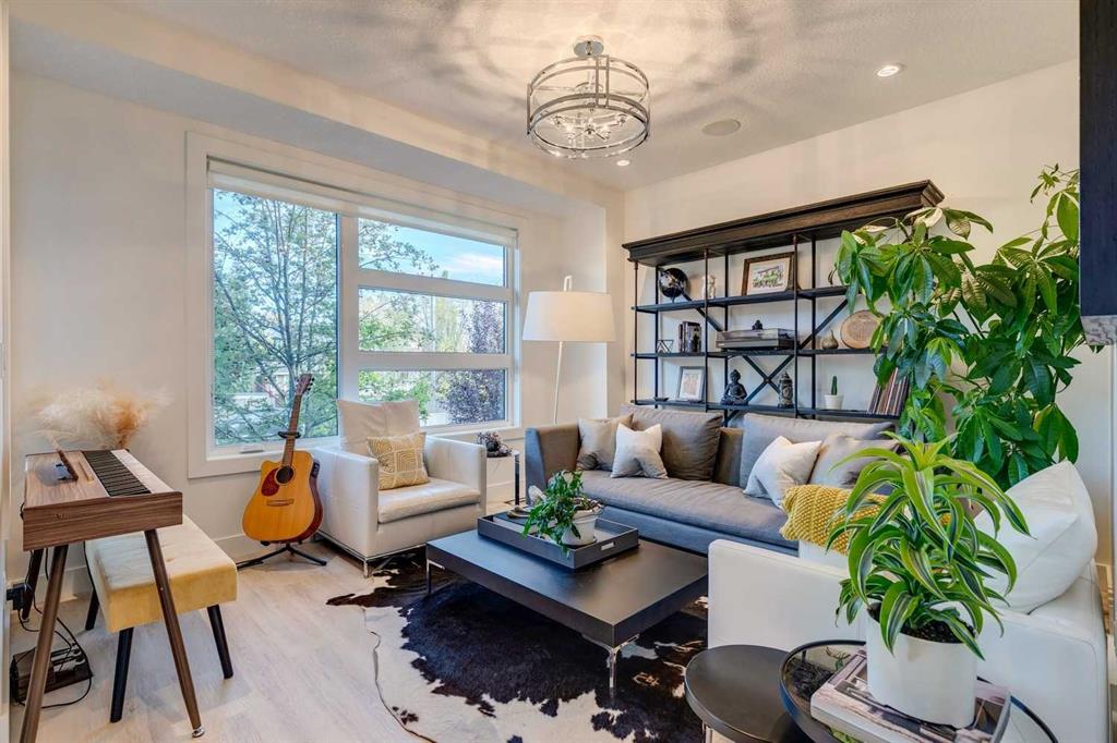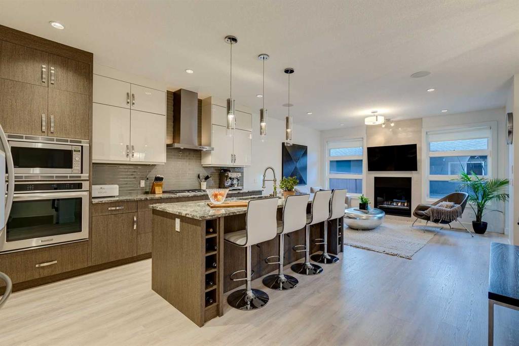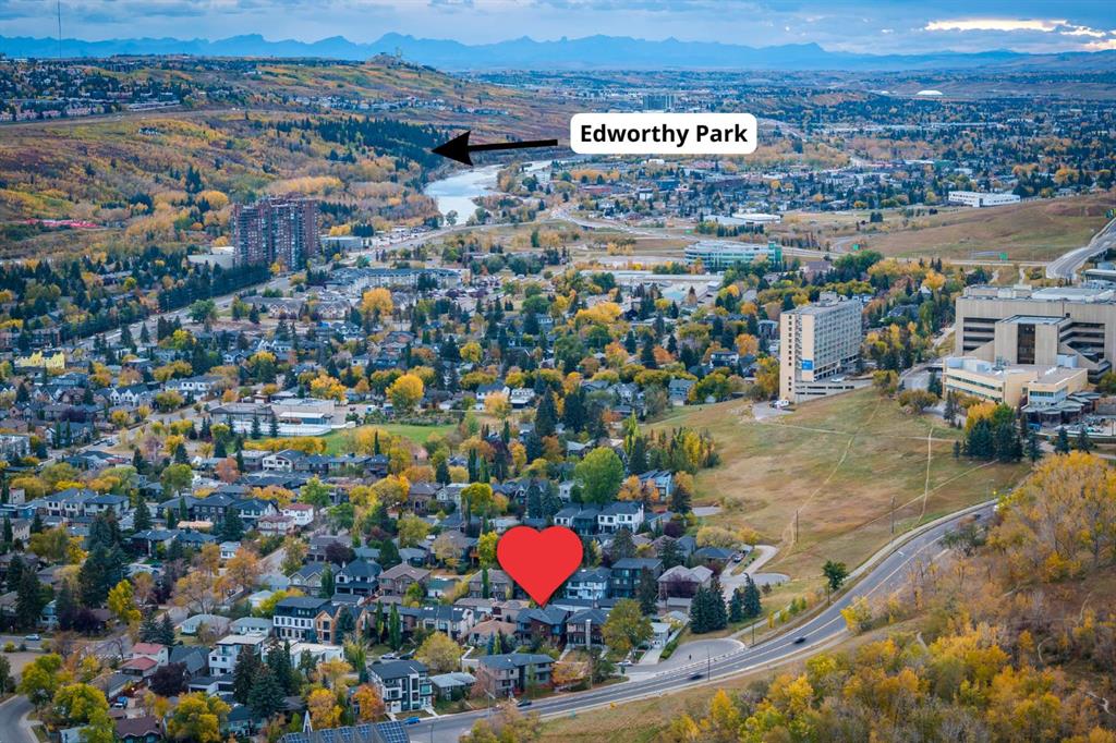 Located in the heart of the highly sought-after inner-city community of Parkdale, this beautiful two-storey home offers over 2,900 sqft of total living space and an exceptional blend of modern design, thoughtful upgrades, and an unbeatable location just steps down the hill from Foothills Hospital, ideal for anyone working at the hospital and for those seeking a walkable, connected inner-city lifestyle. Freshly painted throughout, the main floor features impressive 10’ ceilings, brand-new flooring, a bright flex room at the front of the house (office, secondary living space, music room, formal dining room, etc.), a convenient half bathroom with granite counters, and a spacious living room anchored by a cozy gas fireplace and in-ceiling speakers. The chef-inspired kitchen is both stunning and functional, boasting granite countertops, ceiling-height cabinetry, a huge walk-in pantry, gas stove, garburator, Bosch dishwasher (5 years old), in-wall oven, and an upgraded kitchen faucet (3 years old), flowing seamlessly into the dining area for effortless entertaining. Upstairs offers 9’ ceilings, 3 generous bedrooms, 2 full bathrooms, and an upper laundry room with granite counters and upgraded washer and dryer (2 years old). The primary bedroom impresses with vaulted ceilings, a walk-in closet, and views of the off-leash dog park and city centre, complemented by a luxurious ensuite featuring a jetted soaker tub, large tiled shower, dual sinks, granite counters, tile flooring, and built-in speakers. The fully developed basement continues the high-quality finish with 9’ ceilings, a spacious recreation room with wet bar including granite counters, built-in wine rack and mini fridge, a bedroom with walk-in closet, and a full bathroom with granite counters, tub/shower combination, and a new toilet installed in 2025. Additional highlights include in-ceiling speakers throughout the home, central air conditioning, cedar siding, a new furnace installed in August 2025, and a double detached garage off the back lane. The fully fenced backyard is perfectly designed for low-maintenance enjoyment, featuring aggregate concrete (also featured in the front of the property), a side dog run, and a gas BBQ hookup, while the surrounding Parkdale community offers exceptional access to parks, recreation facilities, an outdoor skating rink in winter, excellent schools, the Bow River and its extensive pathway system, downtown Calgary, Kensington, and quick access west to the mountains, making this an outstanding opportunity to own a move-in-ready home in one of Calgary’s most desirable neighbourhoods. For those with four-legged friends, you will enjoy the off-leash dog park just a few houses away!