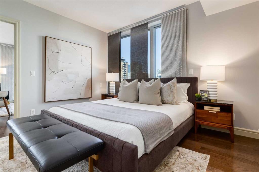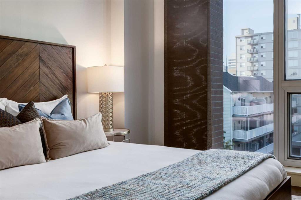 Bright, quiet, and impeccably positioned on the 5th floor, this nearly 900 sq ft corner suite offers a refined urban lifestyle in one of Calgary’s most sought-after inner-city locations. Featuring two bedrooms and two full bathrooms, the home strikes a rare balance between downtown energy and everyday tranquility, sitting just steps from the excitement of 17th Avenue while staying thoughtfully set back from the bustle of city life. Living here means embracing a truly walkable lifestyle. Start your mornings with coffee from a nearby café, pick up groceries or fresh produce just around the corner, or head to your favourite yoga studio or boutique gym, all without ever needing your car. Commuting is effortless, whether you work downtown, attend meetings across the core, or rely on nearby transit routes for easy access throughout the city. In the evenings, stroll to award-winning restaurants, lively patios, cocktail lounges, and local boutiques, then return home to a peaceful retreat elevated above the street. Inside, the open-concept layout is flooded with natural light thanks to floor-to-ceiling windows and a desirable corner orientation. Hardwood floors, central air conditioning and heating, in-suite laundry, and a thoughtful split-bedroom design create a space that feels both stylish and highly functional. The primary bedroom offers excellent privacy with a generous closet and a well-appointed ensuite, while the second bedroom and full bathroom are ideally positioned for guests, roommates, or a dedicated home office. Step onto the private balcony off the living room and enjoy your own outdoor space, complete with a gas BBQ hookup…perfect for relaxed evenings, summer grilling, or entertaining friends before heading out on 17th Ave. The home also includes titled underground parking and a separate storage locker, adding everyday convenience and peace of mind. The Montana is a standout building in Calgary’s urban landscape, known for its timeless architectural design and quality concrete construction that provides superior soundproofing and long-term value. Residents enjoy a low-maintenance, luxury lifestyle with a 7-day concierge, a newly updated fitness centre, and condominium fees that include heat, water, insurance, and more. Beautifully maintained and move-in ready, this residence is ideal for professionals, downsizing, or urban enthusiasts seeking sophisticated downtown living without compromise. This is a home that truly complements the vibrant, connected lifestyle that downtown Calgary is known for.