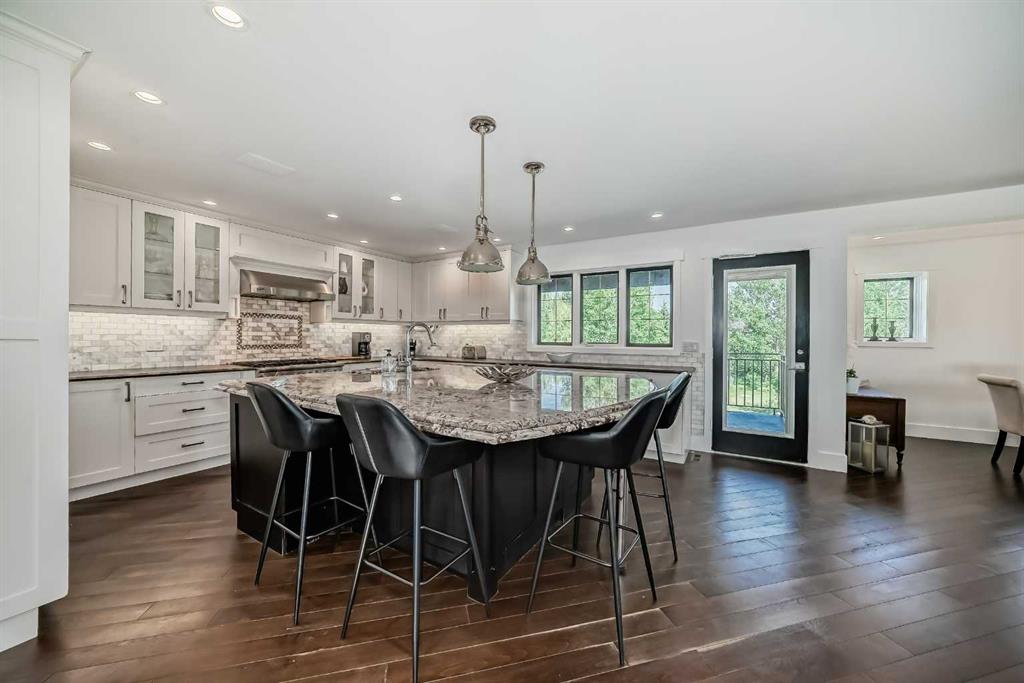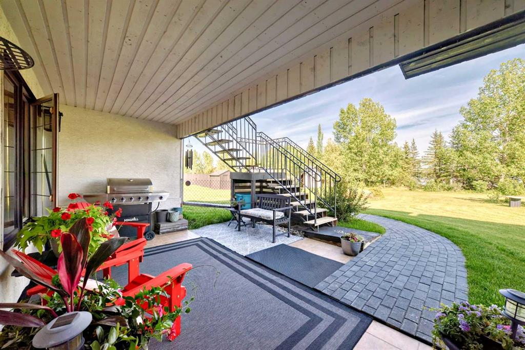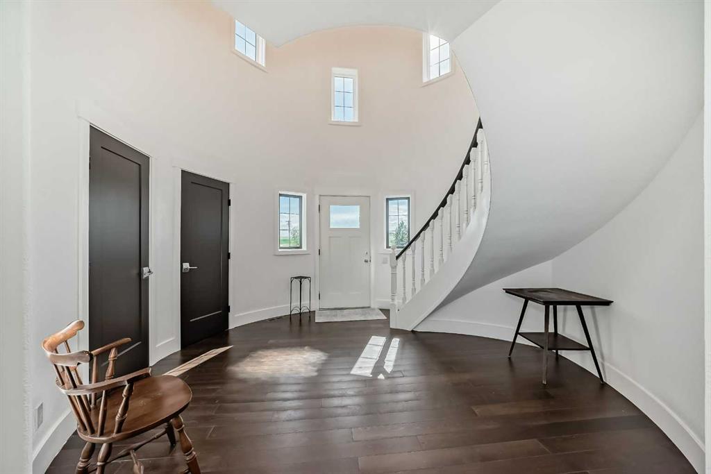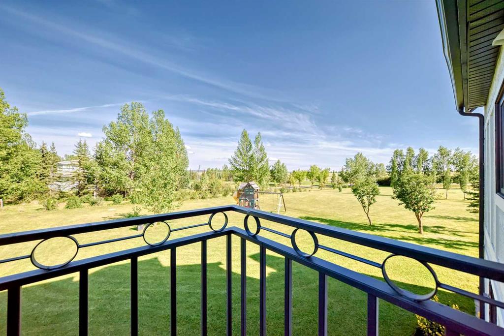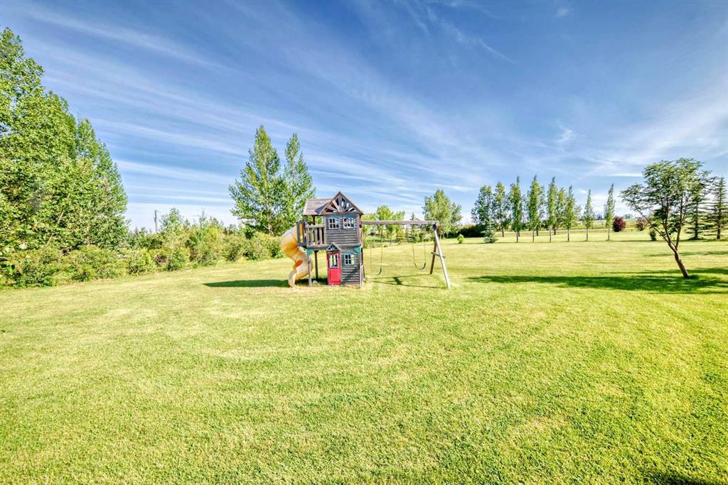 Experience the best of both worlds with this breathtaking 4-acre estate, where idyllic country living meets exceptional comfort and style. This impeccably maintained 2-storey walkout residence with 4782 sq ft of total living space blends timeless European charm with luxurious finishes, featuring rich oil-stained hardwood, elegant brick wood-burning fireplaces, and a grand tower foyer with a curved staircase. The main level offers a spacious living room, formal dining area, and an open gourmet kitchen with modern shaker cabinetry, granite countertops, and an eating bar—ideal for entertaining. A large family room gives you tons of extra space for the family. Upstairs, you’ll find three generous bedrooms, including a stunning primary suite with a spa-like ensuite. The fully developed walkout level—currently set up as a full illegal in law suite—includes an additional bedroom, den, large family room, kitchen, and separate access. The home showcases tile, hardwood, and carpet flooring, and is complemented by a detached 2-car garage, paved circular driveway with RV parking potential, expansive fenced garden, firepit, storage area with a unique wood-burning sauna and games room, plus a garden shed, mature trees, and landscaped grounds. Zoned for horses and close to both private and public schools. This property offers the tranquil living just minutes from Calgary and located close to the future Bingham crossing shopping centre featuring Costco! You will love the quick access to Highway 1 for heading out of town and other destinations. It will be a pleasure to move when this is your destination!