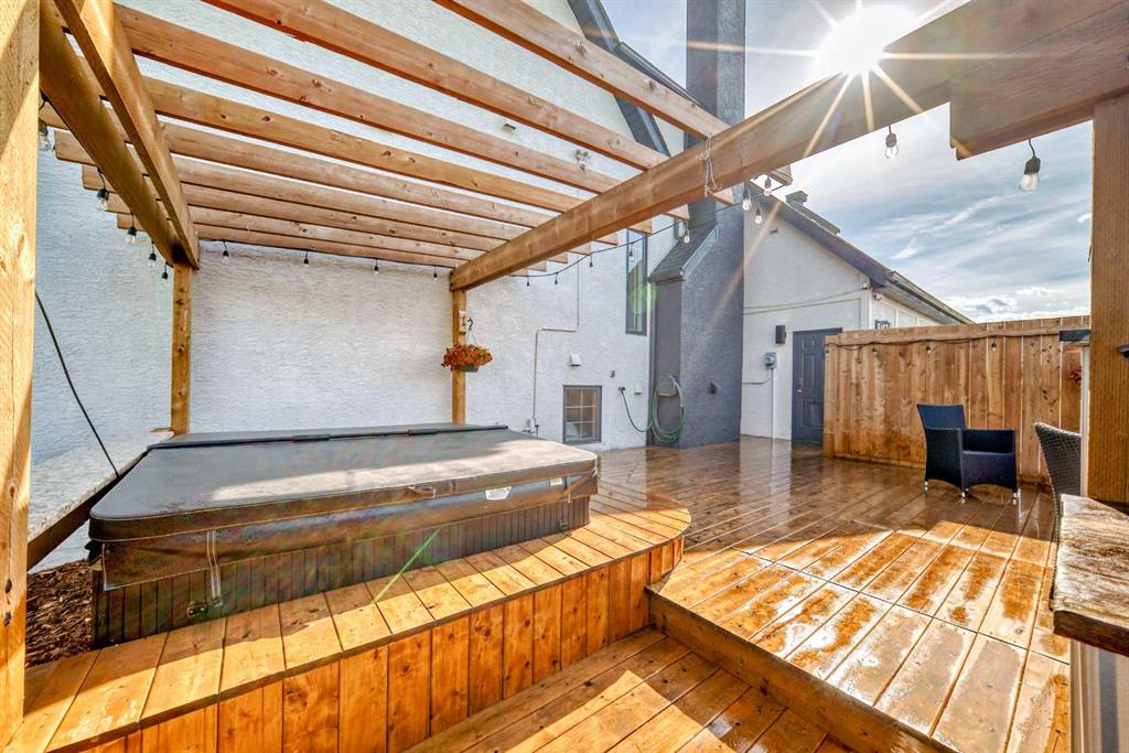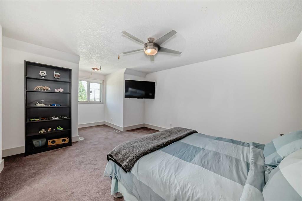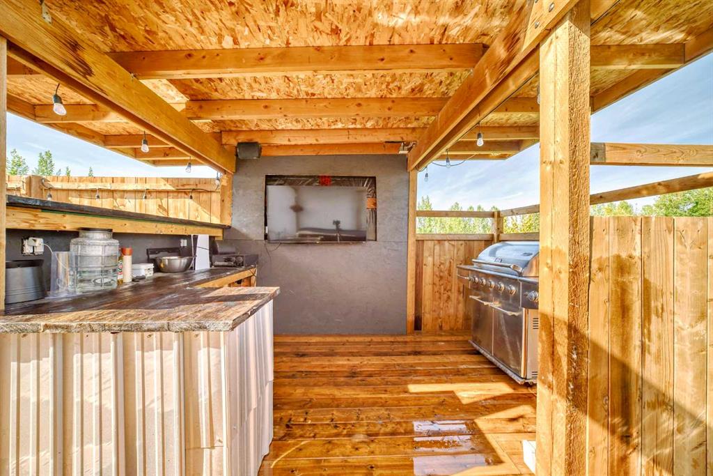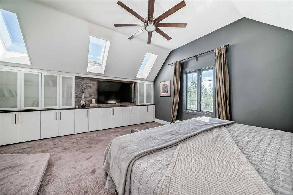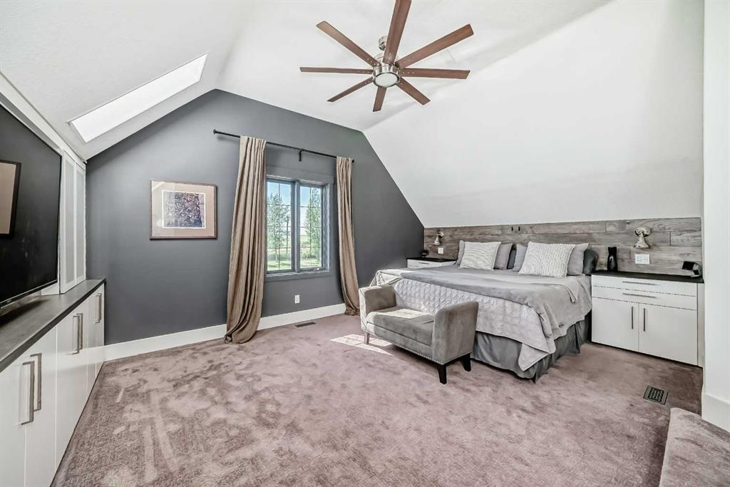 Experience the best of both worlds with this breathtaking 4-acre estate, where idyllic country living meets exceptional comfort and style. This impeccably maintained 2-storey walkout residence with 4782 sq ft of total living space blends timeless European charm with luxurious finishes, featuring rich oil-stained hardwood, elegant brick wood-burning fireplaces, and a grand tower foyer with a curved staircase. The main level offers a spacious living room, formal dining area, and an open gourmet kitchen with modern shaker cabinetry, granite countertops, and an eating bar—ideal for entertaining. A large family room gives you tons of extra space for the family. Upstairs, you’ll find three generous bedrooms, including a stunning primary suite with a spa-like ensuite. The fully developed walkout level—currently set up as a full illegal in law suite—includes an additional bedroom, den, large family room, kitchen, and separate access. The home showcases tile, hardwood, and carpet flooring, and is complemented by a detached 2-car garage, paved circular driveway with RV parking potential, expansive fenced garden, firepit, storage area with a unique wood-burning sauna and games room, plus a garden shed, mature trees, and landscaped grounds. Zoned for horses and close to both private and public schools. This property offers the tranquil living just minutes from Calgary and located close to the future Bingham crossing shopping centre featuring Costco! You will love the quick access to Highway 1 for heading out of town and other destinations. It will be a pleasure to move when this is your destination!