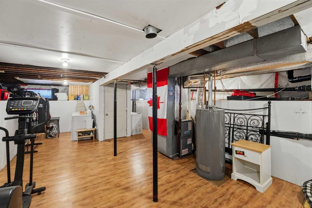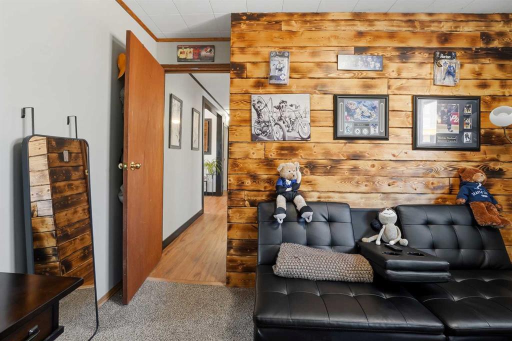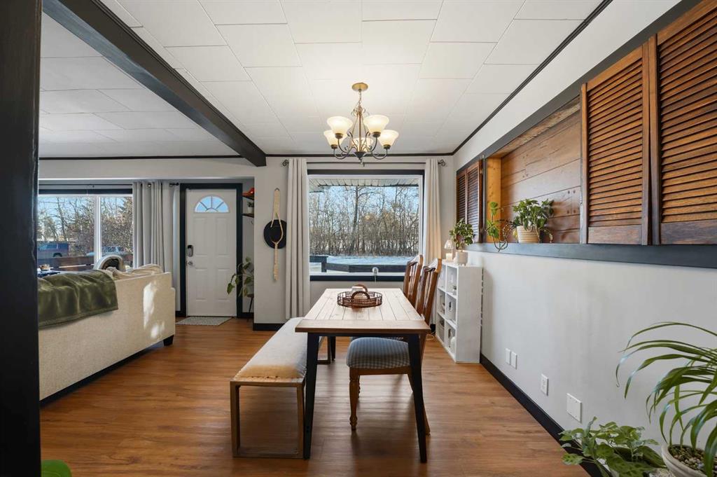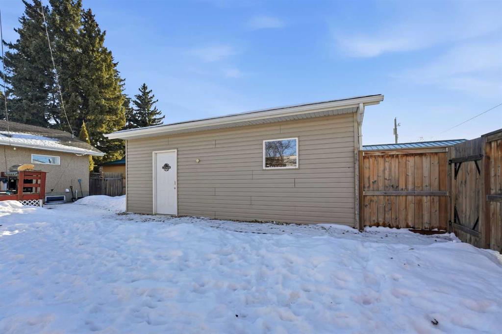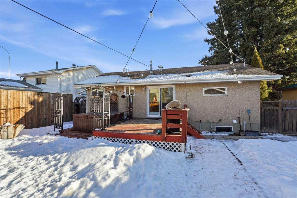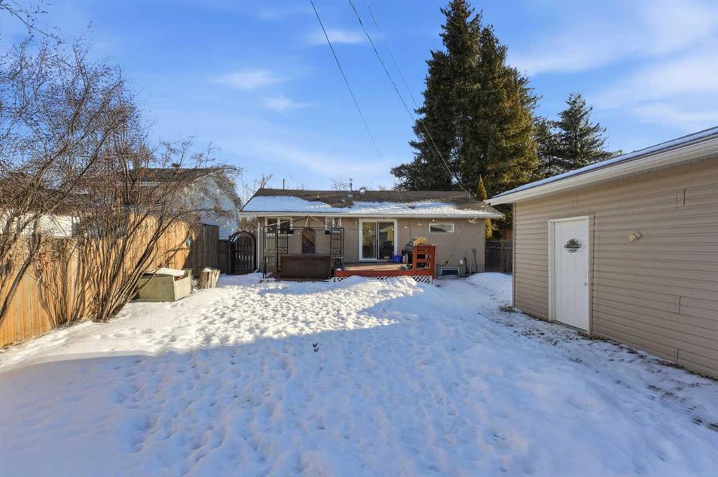 WELCOME TO 5120 WESTWOOD DRIVE! A CHARMING BLACKFALDS BUNGALOW ON A DOUBLE LOT, WITH A HEATED GARAGE & HOT TUB INCLUDED! Whether you’re stepping into homeownership for the first time, simplifying your lifestyle, or adding a solid property to your investment portfolio, this one checks all the boxes. The bright front entry opens into a sunny open-concept living and dining space, where large southeast-facing windows flood the home with natural light. Stylish vinyl plank flooring runs throughout, making everyday living (and cleaning!) a breeze. The galley kitchen offers plenty of cabinet and counter space, a modern tile backsplash, a window over the sink, and sliding patio doors that lead straight to the backyard, perfect for summer BBQs or evening hot-tub soaks. Upstairs, you’ll find two bedrooms and a full 4-piece bathroom, including a spacious primary bedroom with dual closets. A convenient side entrance off the kitchen leads to the fully developed basement, offering great space for a cozy family room, home office, or teenage hangout, plus laundry and utility area. Outside is where this home really shines. Enjoy your morning coffee on the front deck with built-in seating, or unwind in the private, fully fenced backyard complete with a hot tub and outdoor speakers — your own little oasis. Parking is a dream here with a 16’ x 24’ heated garage (220V power), plus RV parking and back-alley access. All of this sits on a fully landscaped lot in a convenient location close to the arena, library, parks, and schools — making it as practical as it is appealing. Recent updates include: • High-efficiency hot water tank (2022) • Furnace (2020) • Vinyl windows in living & dining room (2022) • Primary bedroom window & patio door (2019) A move-in-ready home with lifestyle perks, strong value, and investment potential — this one is easy to love.