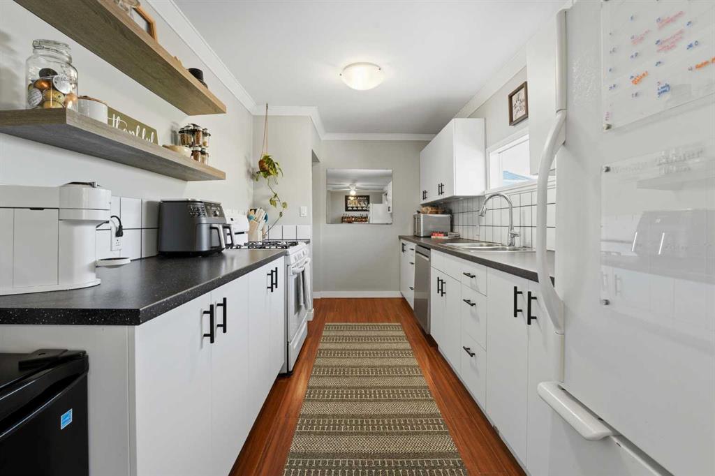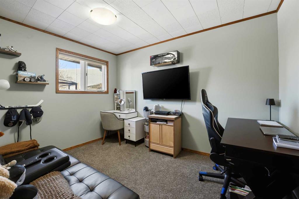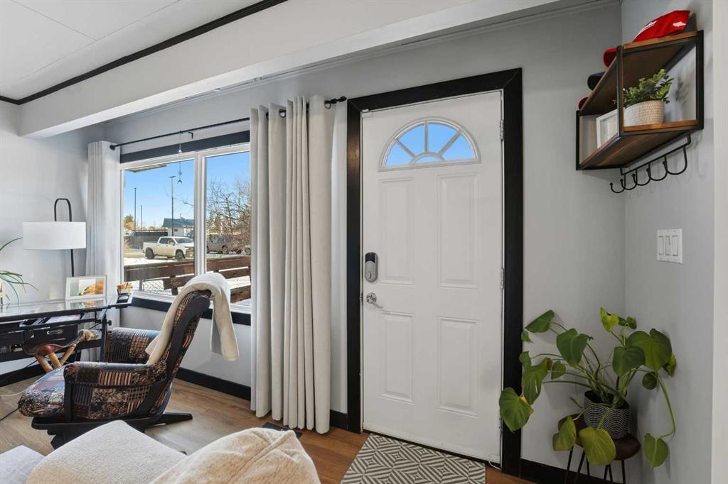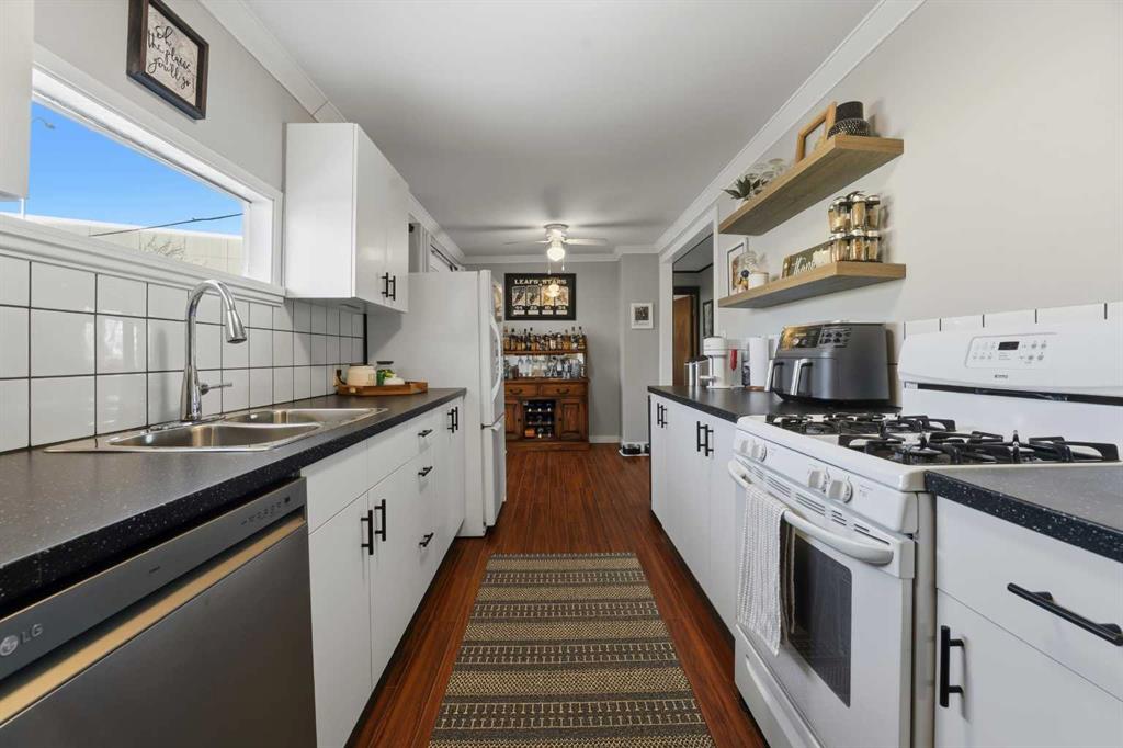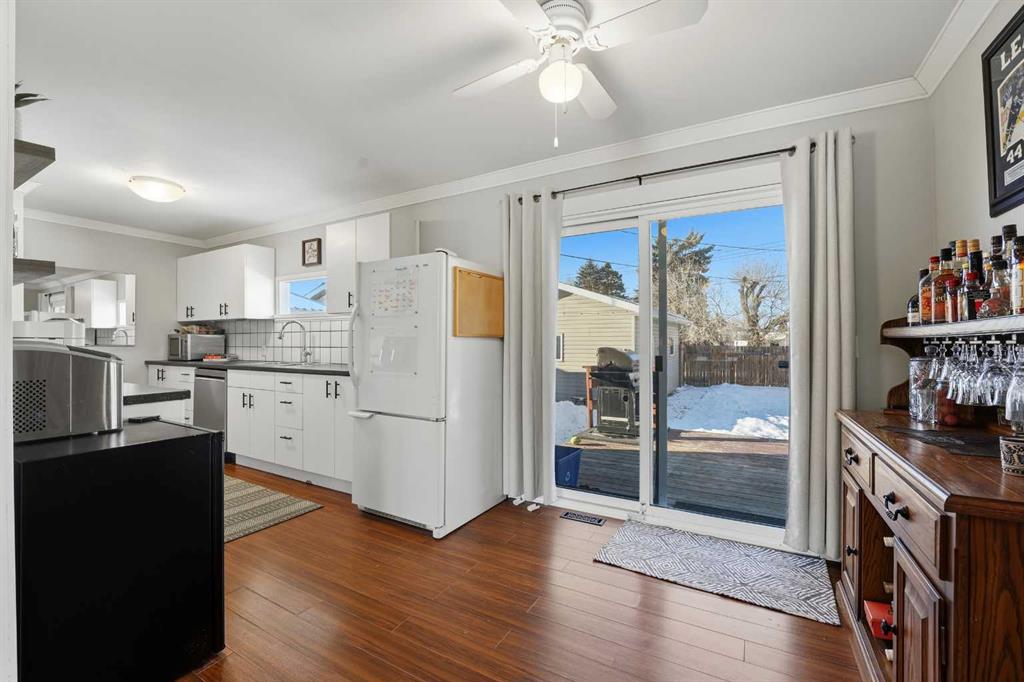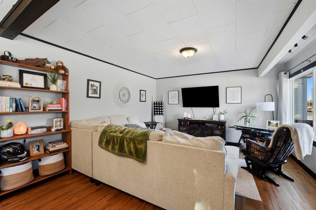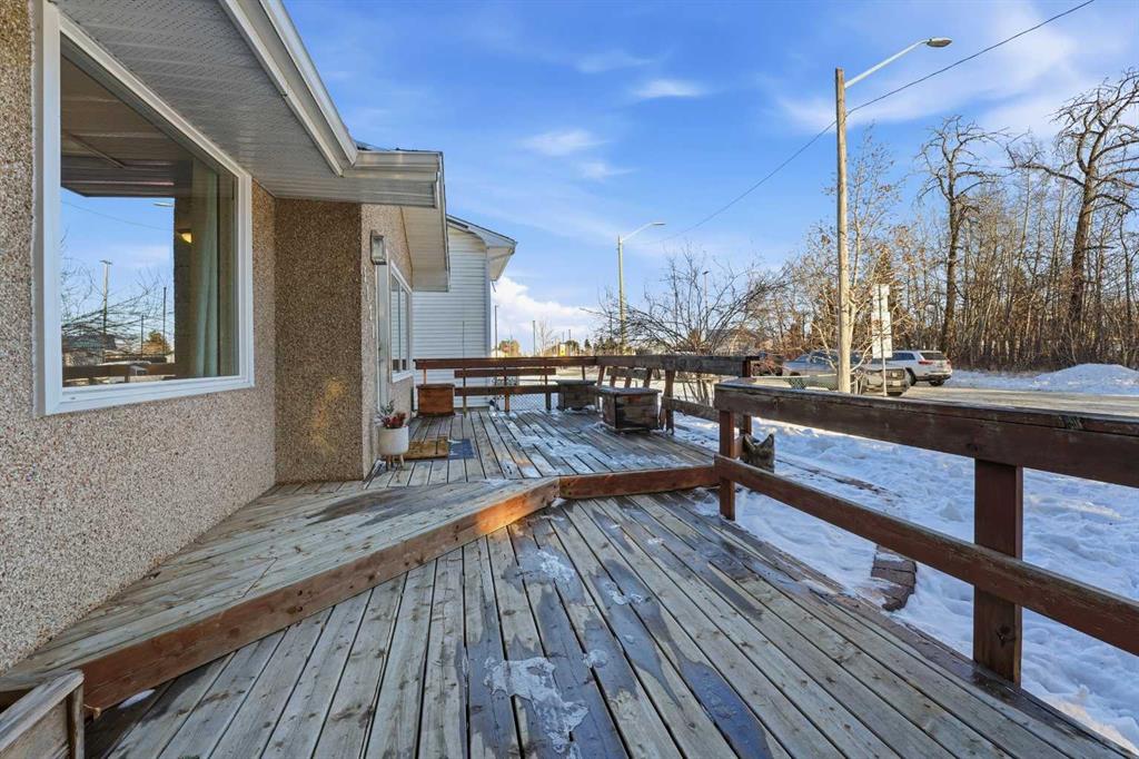 WELCOME TO 5120 WESTWOOD DRIVE! A CHARMING BLACKFALDS BUNGALOW ON A DOUBLE LOT, WITH A HEATED GARAGE & HOT TUB INCLUDED! Whether you’re stepping into homeownership for the first time, simplifying your lifestyle, or adding a solid property to your investment portfolio, this one checks all the boxes. The bright front entry opens into a sunny open-concept living and dining space, where large southeast-facing windows flood the home with natural light. Stylish vinyl plank flooring runs throughout, making everyday living (and cleaning!) a breeze. The galley kitchen offers plenty of cabinet and counter space, a modern tile backsplash, a window over the sink, and sliding patio doors that lead straight to the backyard, perfect for summer BBQs or evening hot-tub soaks. Upstairs, you’ll find two bedrooms and a full 4-piece bathroom, including a spacious primary bedroom with dual closets. A convenient side entrance off the kitchen leads to the fully developed basement, offering great space for a cozy family room, home office, or teenage hangout, plus laundry and utility area. Outside is where this home really shines. Enjoy your morning coffee on the front deck with built-in seating, or unwind in the private, fully fenced backyard complete with a hot tub and outdoor speakers — your own little oasis. Parking is a dream here with a 16’ x 24’ heated garage (220V power), plus RV parking and back-alley access. All of this sits on a fully landscaped lot in a convenient location close to the arena, library, parks, and schools — making it as practical as it is appealing. Recent updates include: • High-efficiency hot water tank (2022) • Furnace (2020) • Vinyl windows in living & dining room (2022) • Primary bedroom window & patio door (2019) A move-in-ready home with lifestyle perks, strong value, and investment potential — this one is easy to love.