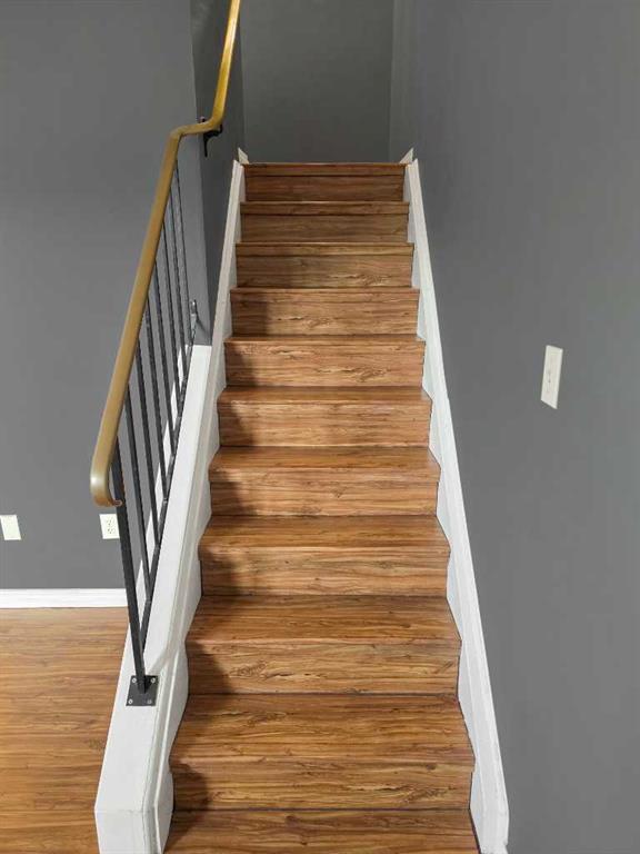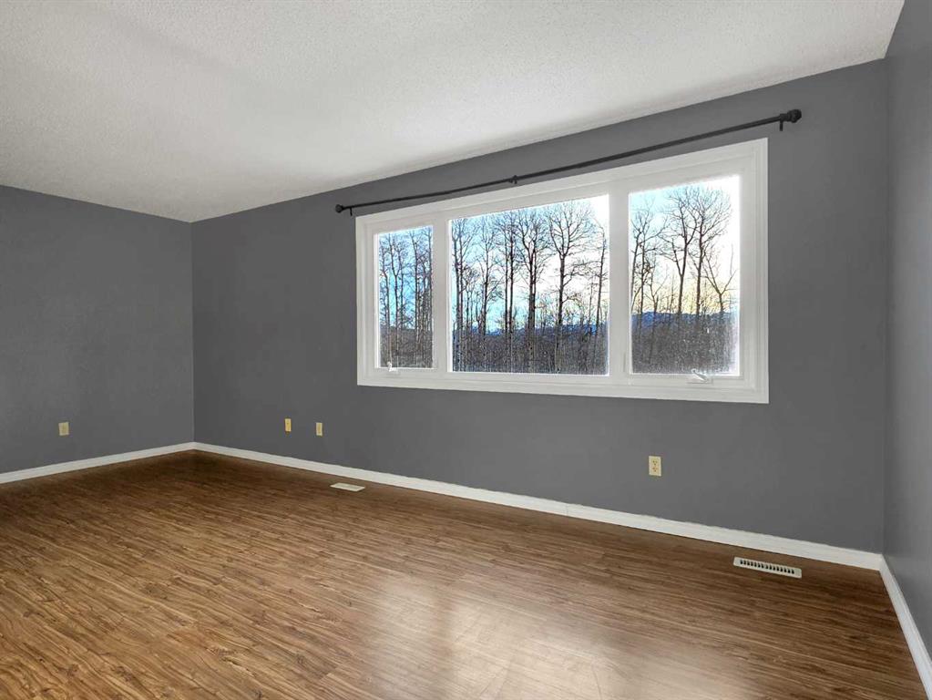 Welcome to Unit 46 on 97 Ave in Grande Cache — a townhouse condo offering comfortable mountain living. This home features three bedrooms upstairs, including a spacious primary, along with a full bathroom on the upper level and a convenient half bath on the main floor. The main level includes a functional kitchen with good cabinet and counter space, plus a living room with a bushside mountain view. The partially finished basement adds extra living space with a soundproofed area ideal for a entertainment area, music room, or home office, along with storage space, laundry, and walkout access to a small fenced yard. Affordable, low-maintenance, and a solid option for buyers looking to enter the Grande Cache market.