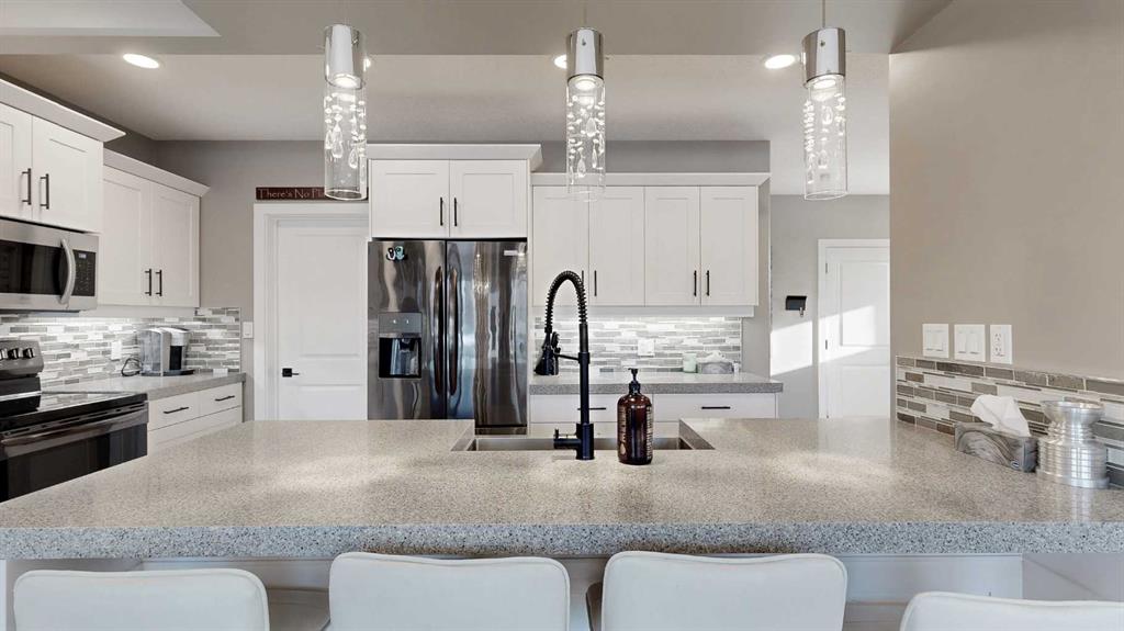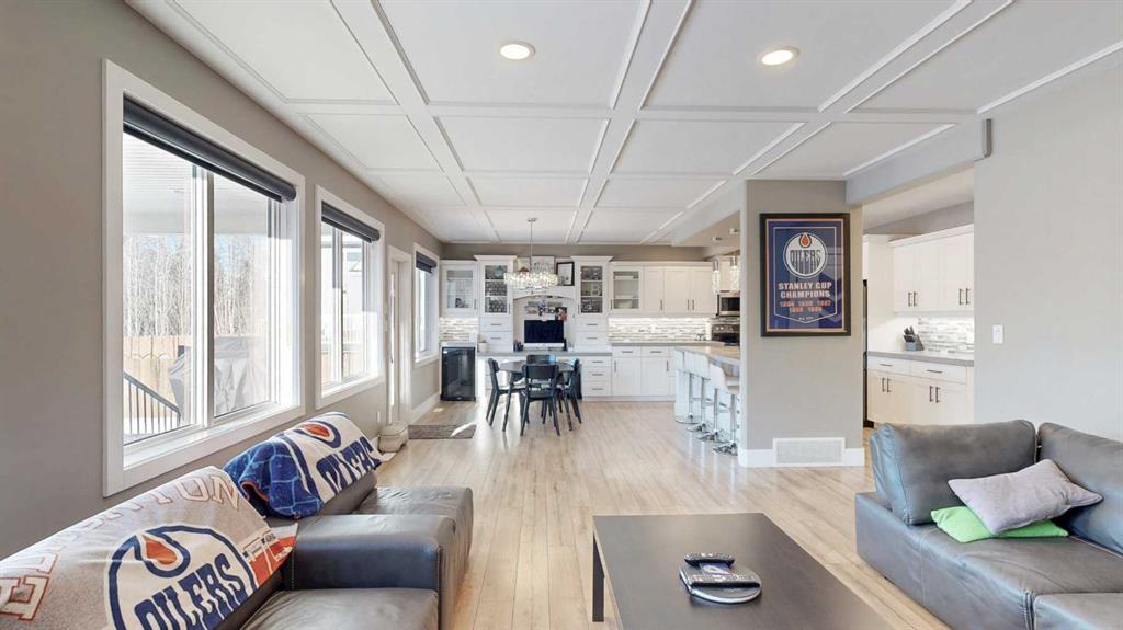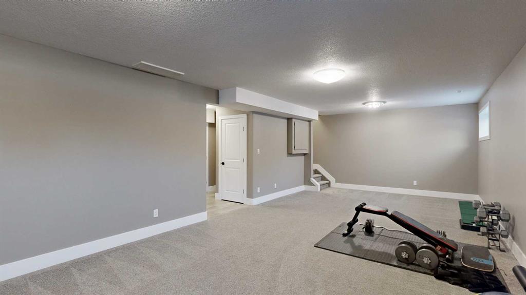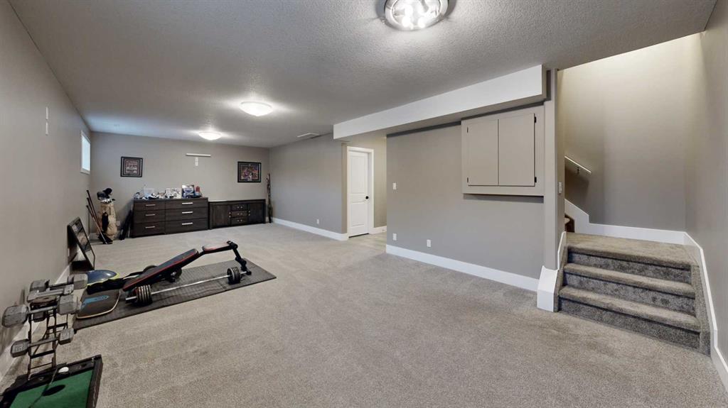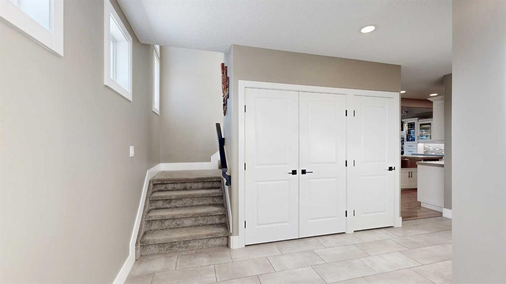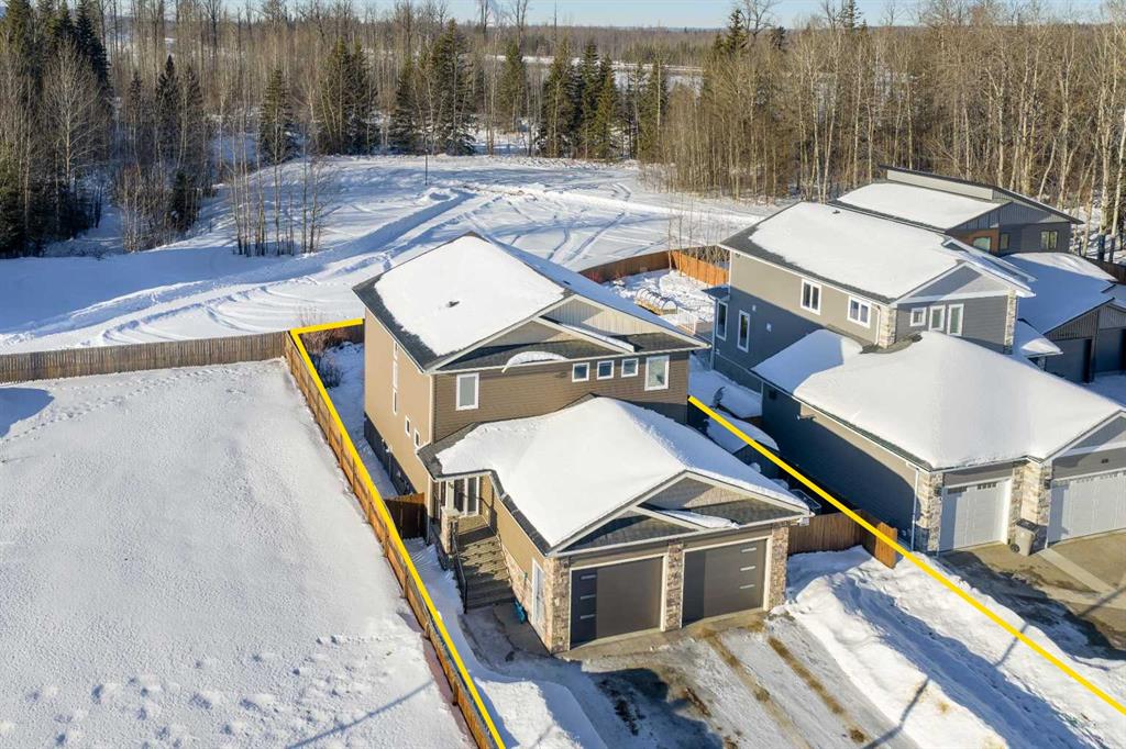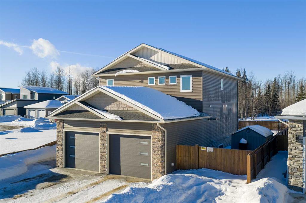 Park Lot! You’ll love this incredible location backing directly onto Rotary Park. This well-designed 2-storey home offers a fantastic open floor plan and over 3,000 sq. ft. of developed living space across all three levels. The spacious kitchen is beautifully finished with custom cabinetry, quartz countertops, under-cabinet lighting, and a pantry, making it perfect for both everyday living and entertaining. Just off the kitchen, step onto the 16’ x 12’ covered, maintenance-free deck featuring exposed aggregate and aluminum railings, ideal for year-round barbecuing and outdoor enjoyment. A convenient 2-piece bathroom completes the main level. Upstairs, you’ll find three bedrooms, two full bathrooms, and upper-level laundry, a layout designed with everyday convenience in mind. The primary ensuite features a 6-foot tub, separate shower, dual sinks, and a must-see walk-in closet with custom built-in cabinetry. The 26’ x 26’ heated garage offers excellent space, and the exterior is fully upgraded with an exposed aggregate driveway, front step, sidewalk, and town-approved RV parking beside the home. The yard is fully fenced. The finished basement adds even more living space with a fourth bedroom, an additional bathroom, and room to easily add a fifth bedroom if desired. This home truly has it all.
