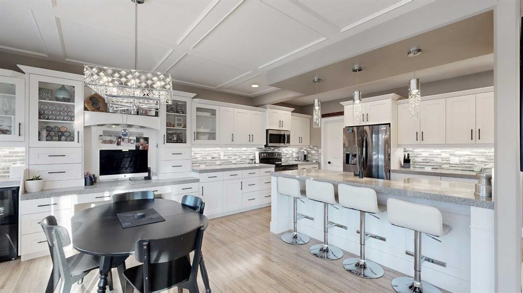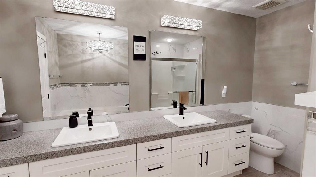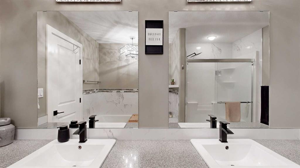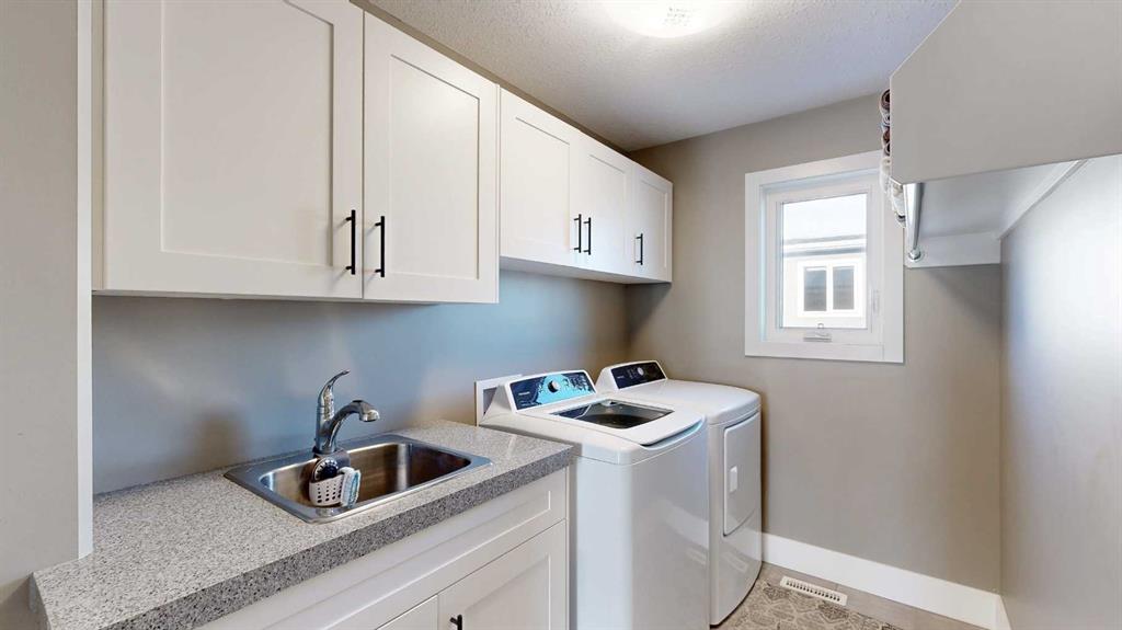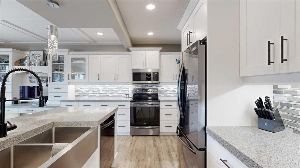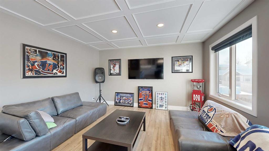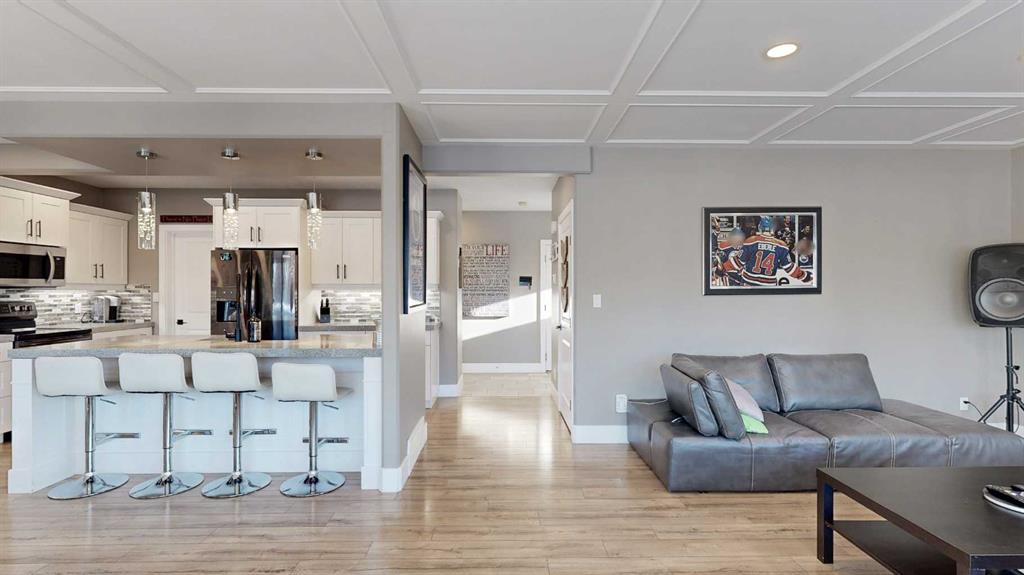 Park Lot! You’ll love this incredible location backing directly onto Rotary Park. This well-designed 2-storey home offers a fantastic open floor plan and over 3,000 sq. ft. of developed living space across all three levels. The spacious kitchen is beautifully finished with custom cabinetry, quartz countertops, under-cabinet lighting, and a pantry, making it perfect for both everyday living and entertaining. Just off the kitchen, step onto the 16’ x 12’ covered, maintenance-free deck featuring exposed aggregate and aluminum railings, ideal for year-round barbecuing and outdoor enjoyment. A convenient 2-piece bathroom completes the main level. Upstairs, you’ll find three bedrooms, two full bathrooms, and upper-level laundry, a layout designed with everyday convenience in mind. The primary ensuite features a 6-foot tub, separate shower, dual sinks, and a must-see walk-in closet with custom built-in cabinetry. The 26’ x 26’ heated garage offers excellent space, and the exterior is fully upgraded with an exposed aggregate driveway, front step, sidewalk, and town-approved RV parking beside the home. The yard is fully fenced. The finished basement adds even more living space with a fourth bedroom, an additional bathroom, and room to easily add a fifth bedroom if desired. This home truly has it all.