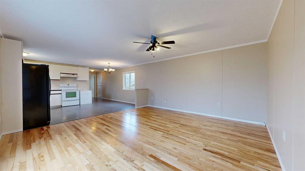 This 1996 modular offers 3 bedrooms, 2 full bathrooms, and an ideal layout with the primary suite on one end, featuring a large closet and 4-piece ensuite, and two bedrooms plus a full bath on the other, divided by a bright, open-concept kitchen, dining, and living room at the heart of the home. Recent updates provide comfort and peace of mind, including a new metal roof (2022), new sewer line, all new insulated skirting for added warmth, and a high-efficiency eco-friendly furnace installed in March 2025, plus fresh paint throughout. Inside, the home stands out with its black ash and exotic ash hardwood floors, adding warmth and character. An entrance addition and a covered deck extend your space, while the fully fenced yard is perfect for pets (with park approval) or outdoor enjoyment. Close to Clairmont school, the splash and bike parks, Clairmont arena, convenience stores, and other amenities. With thoughtful updates already complete, this home is move-in ready and waiting for its next owner. Lot rent of $560/month includes water, sewer, garbage, snow removal, and common area maintenance.